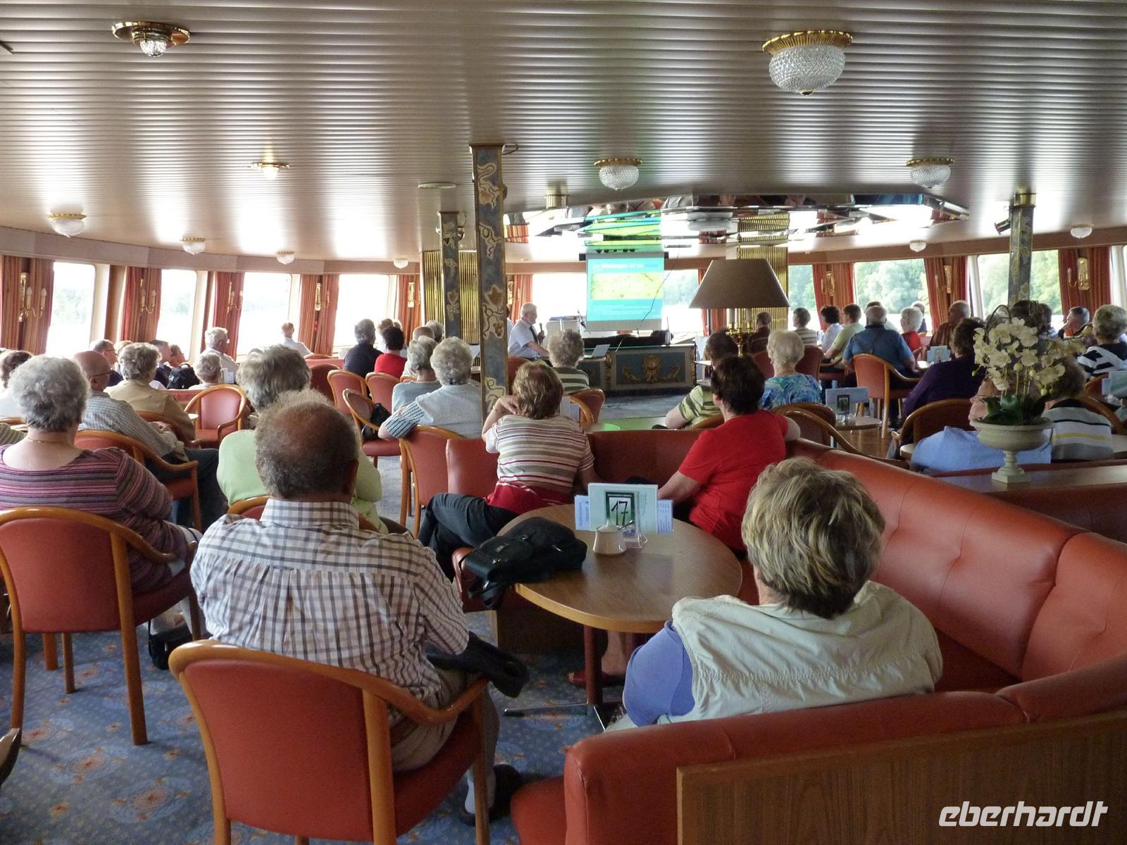 Vor dem Kaffee hielt Herr Müller, der Hoteldirektor der Rossini, einen Vortrag zum Schiff (Stapellauf 1984).
