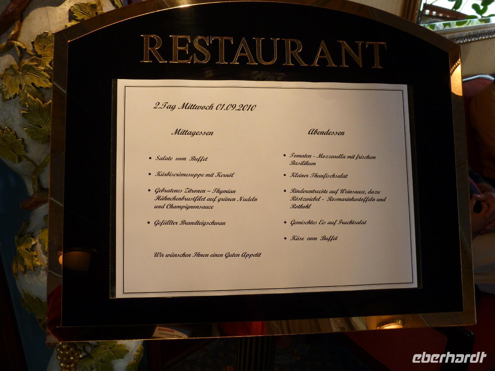 18.45 Uhr verabschiedete sich der Kapitän von den Eberhardt-Gästen und anschließend servierte das Küchenteam ein schmackhaftes Dinner.
