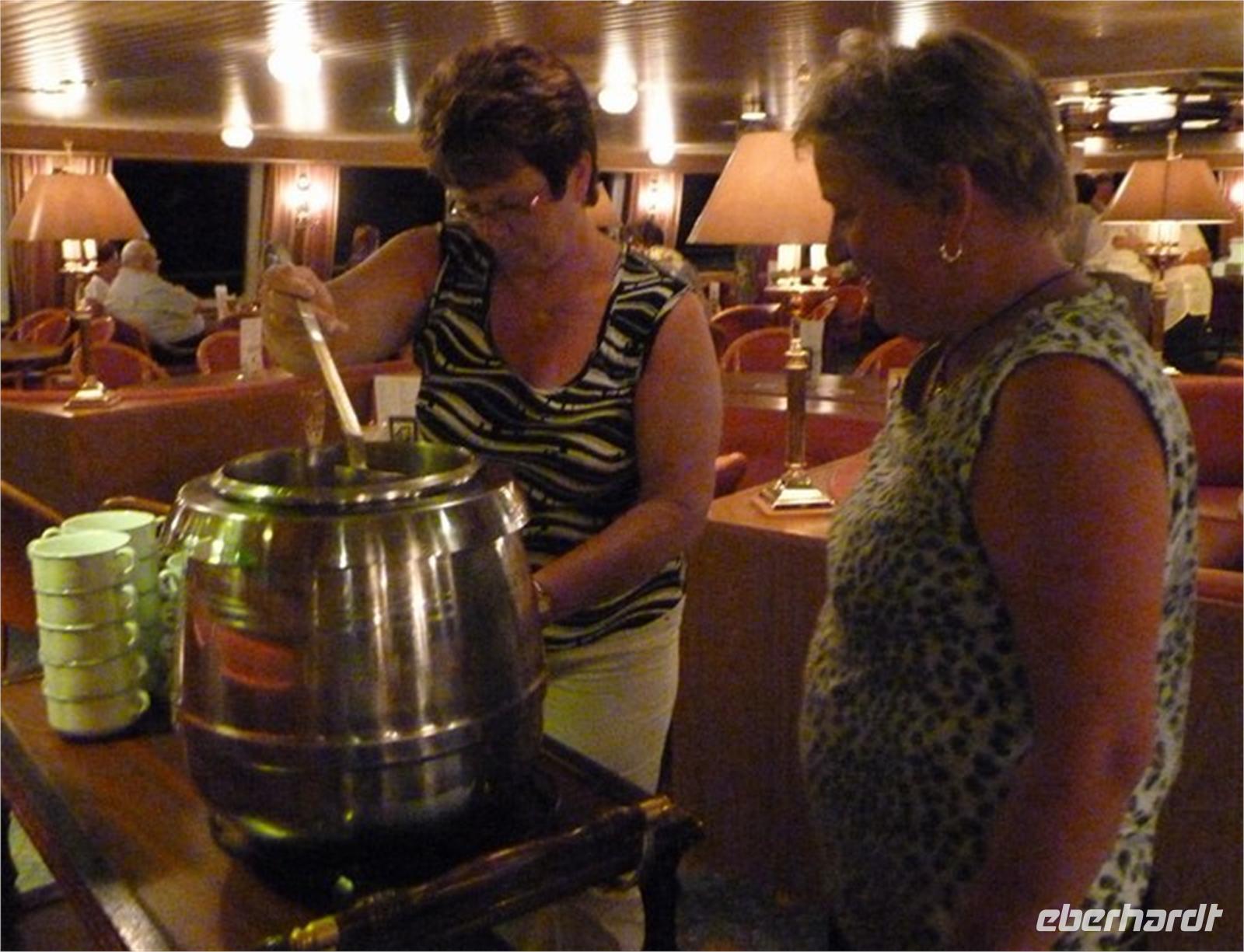 18.45 Uhr verabschiedete sich der Kapitän von den Eberhardt-Gästen und anschließend servierte das Küchenteam ein schmackhaftes Dinner.