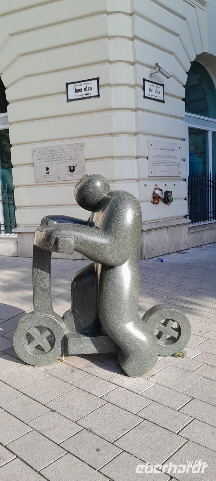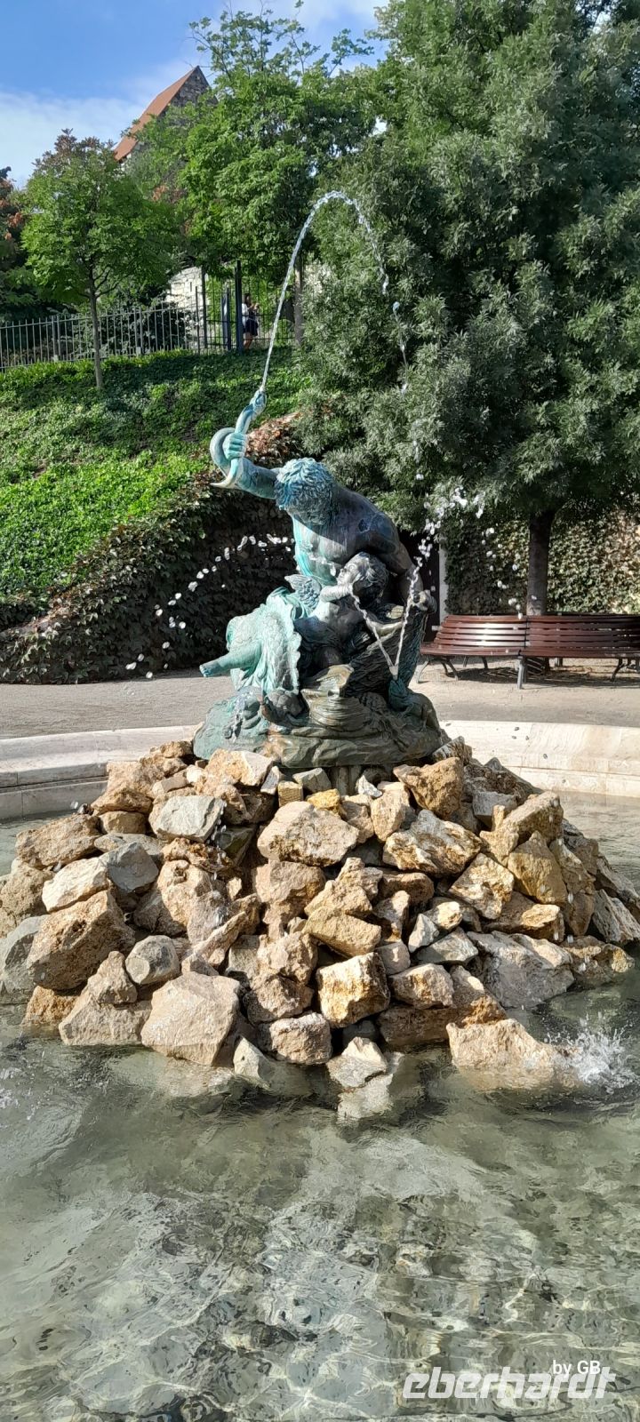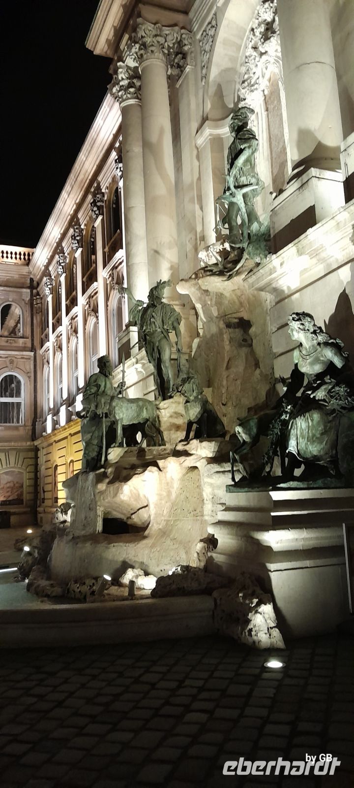 Drei Busse und drei Guides warteten auf die Passagiere der Viktoria. Unser Guide Peter, begann auf der Fahrt hoch zur Burg die Geschichte der Stadt auf unterhaltsame und witzige Art zu erklären. Auf der Burg gab es nach der Führung noch genug Zeit für WC und Fotos, und dann ging es mit dem Bus wieder hinunter in die Altstadt. Zu Fuß ging es an der Pestsäule und er deutschen Botschaft vorbei zum Alten Rathaus, Jesuiten- und Franziskaner-Kirche, aber auch zum Cafe Mayer mit dem „Schönen Naci“ an der Ecke und weiter zum berühmten „Cumil“ mit dem total fehl am Platze stehenden Hinweisschild in Englisch „Man at work“. Nach der offizielle Führung erklärte uns Peter noch den (einfachen) Weg zurück zum Schiff und entließ uns noch in die viel zu knappe Freizeit zur eigenen Erkundung; denn um 19.00 h sollten wieder alle an Bord sein. Danach legte unser Schiff sofort ab, und während wir unser leckeres Abendessen einnahmen, fuhr es uns bereits wieder die Donau hinunter Richtung Ungarn.