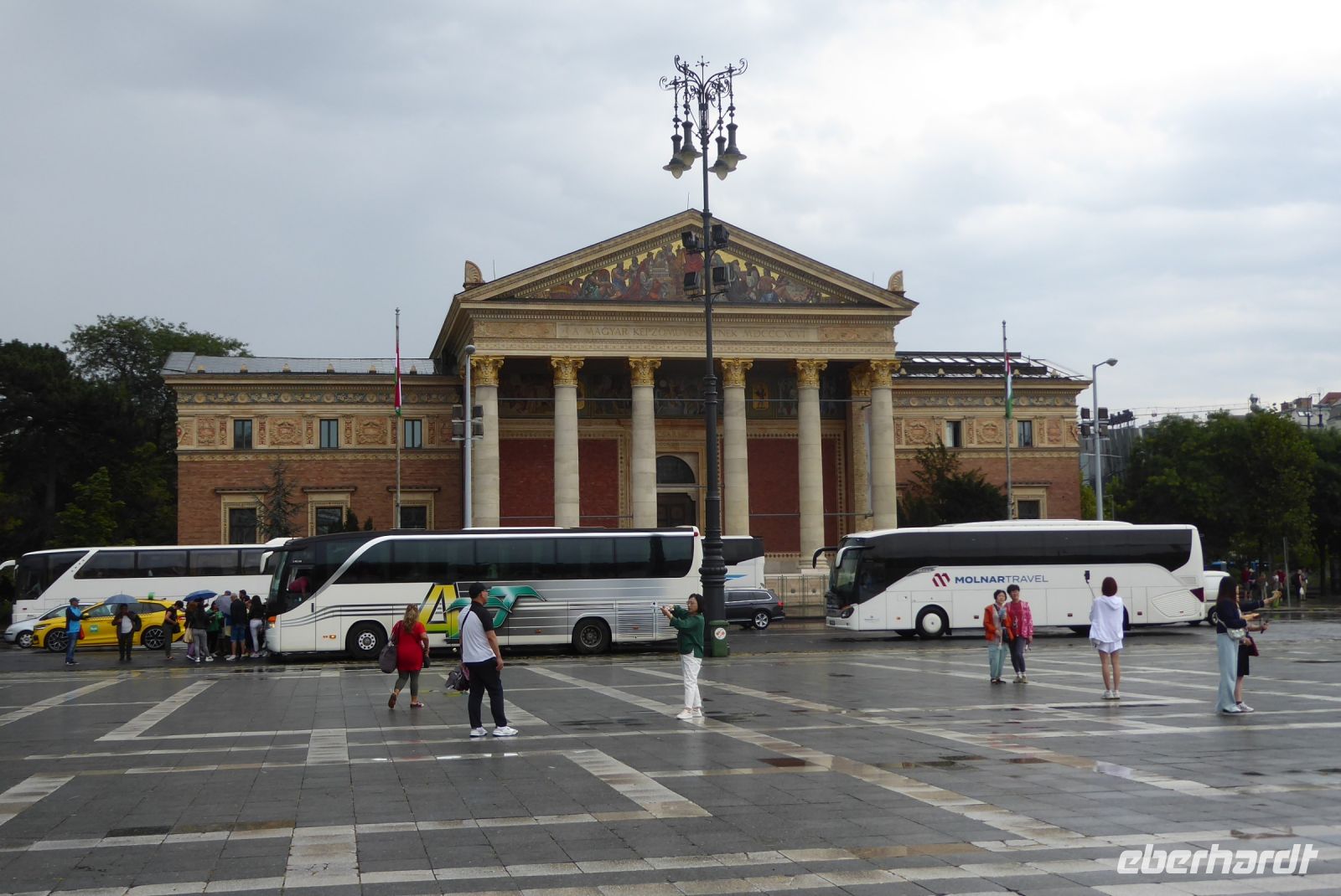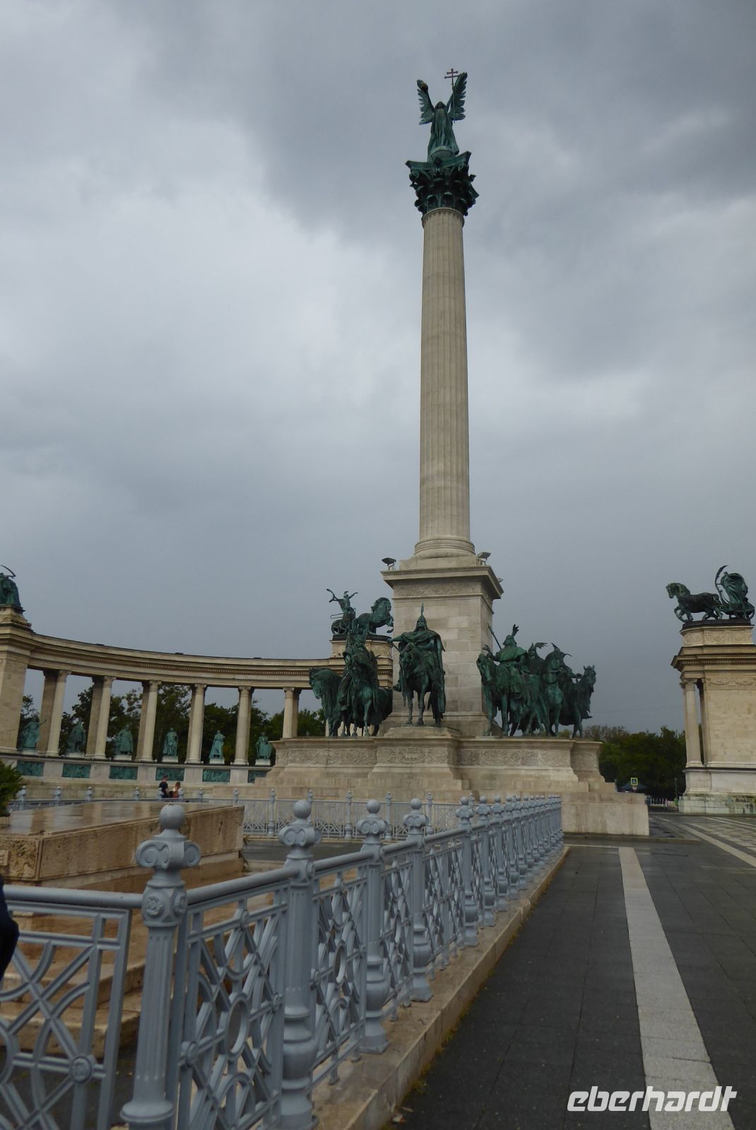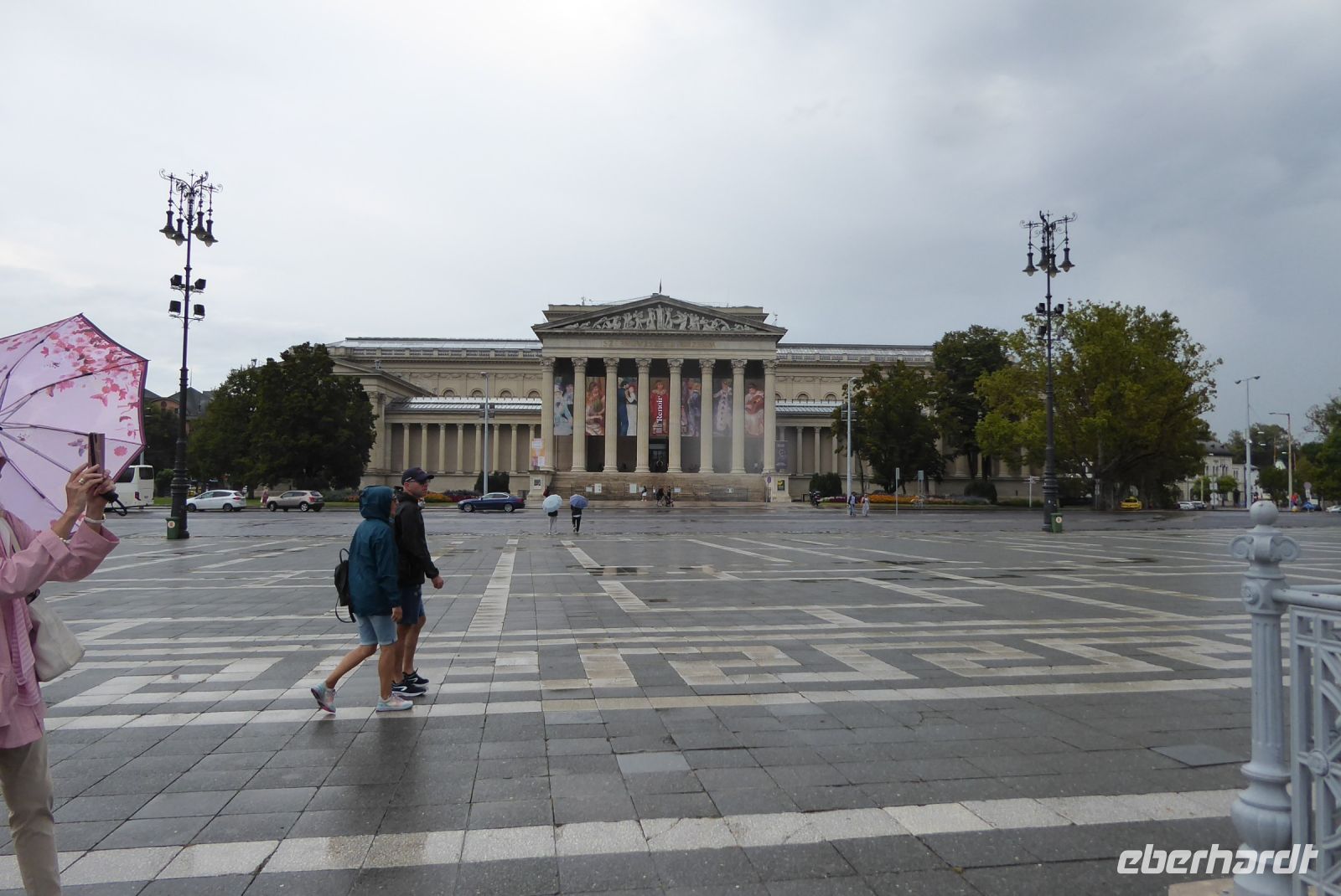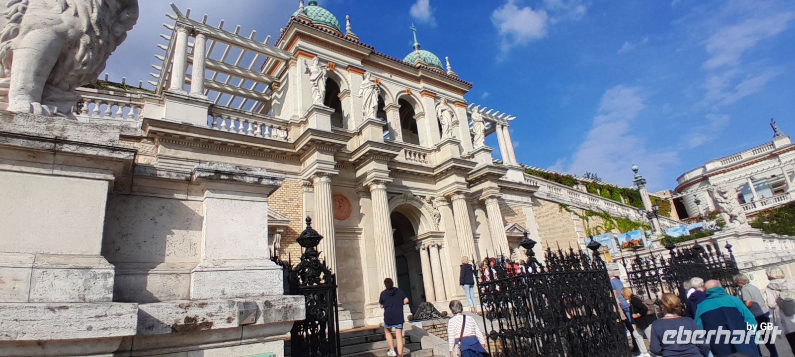 So starteten wir auf der Buda-Seite mit dem Guards Palace, auf dessen Stufen und Terrassen gerade eine Austellung von Bildern vom Balaton-Tourismus im Laufe der Jahre gezeigt wurde. Dann ging die Fahrt entlang der Donau, bis wir über die Margarethenbrücke auf die Pest-Seite fuhren. Auf der Fahrt unzählige Sehenswürdigkeiten, die uns unsere Stadtführerin im Vorbeifahren erklärte. Dann gab es eine längere Führung im Stadtwäldchen bis zum Heldenplatz-leider im Regen. Zurück ging es dann zur Donau und zum Parlamentsgelände, das uns Karla auf einem Spaziergang sehr ausführlich erklärte. So verging die Zeit wie im Fluge in dieser tollen Stadt, und um 13.00 h war die Führung vorbei. Leider war ein Besuch der Fischerbastei nicht möglich, da immer noch gebaut wird.