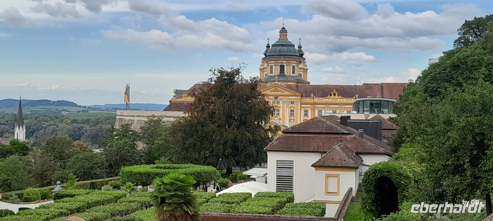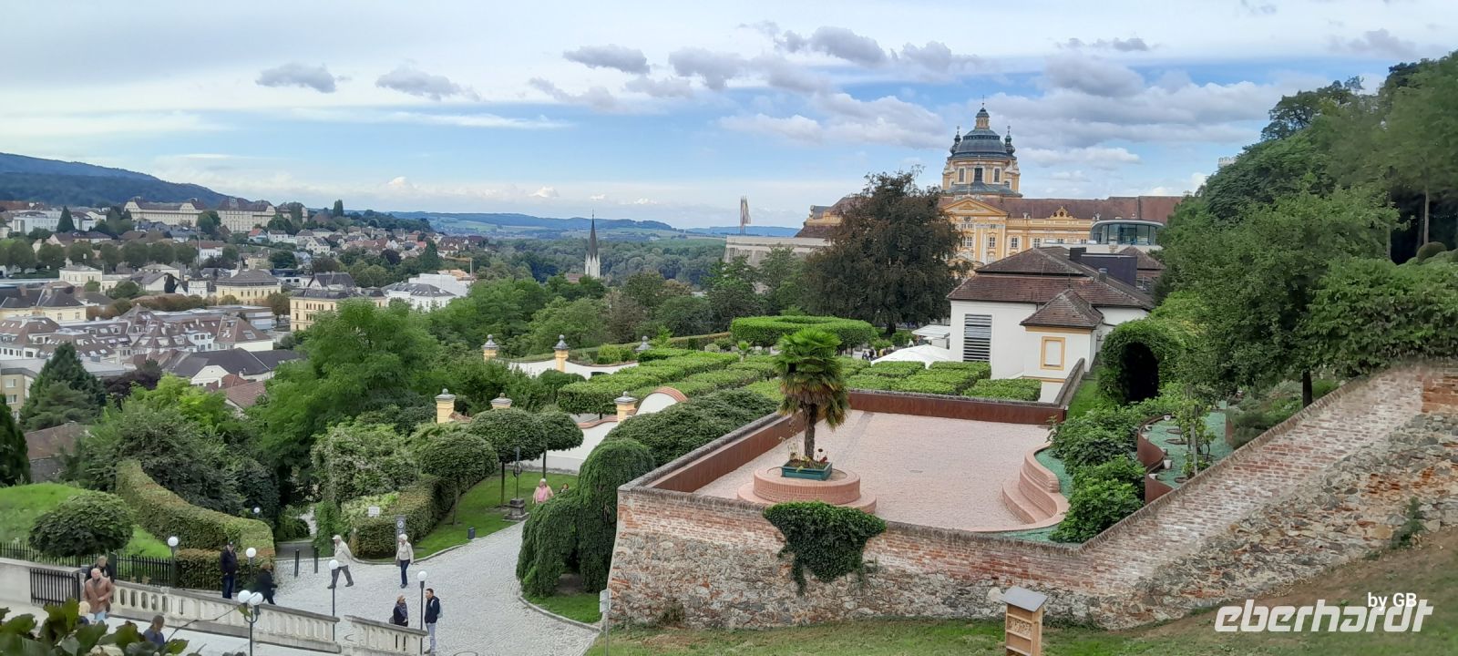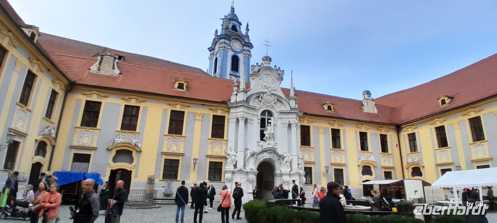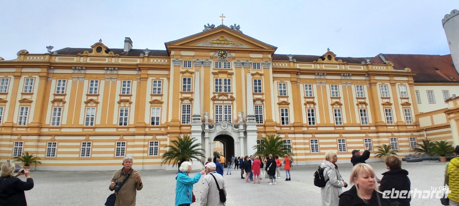 Die Wachau, die wir heute durchfahren, gilt als schönster Abschnitt des Donautals. Am Morgen legt die MS Viktoria in Dürnstein an. Der himmelblaue Kirchturm der Stiftskirche ist schon von weitem sichtbar. Wir gehen ein Stück auf der Promenade bzw. dem Donauradweg entlang. Von hier aus haben wir einen wunderschönen Blick auf die Ruine der Kuenringer Burg aus dem 12. Jahrhunder, in der einst Richard Löwenherz gefangen gehalten wurde. Durch schmale, steile Gassen erreichen Sie das Zentrum des Städtchens. Wir sehen den Pranger und das Badhaus und das Kloster mit der barocken Stiftskirche. Heute ist Sonntag und überall wir das Erntedankfest´gefeiert, hier in Dürnstein mit Prozession in Trachten und Blasmusik. Unser lokale Führer zeigt uns noch das Rathaus und entlässt uns dann zu einer kurzen Erkundund des Städtchens auf eigene Faust mit anschließendem Fußweg zum Busparkplatz. Von hier aus bringt uns ein Bus nach Melk. Bekannt ist Melk für das wunderschöne, 2011 restaurierte Kloster aus dem 18. Jahrhundert. Das Stift gehört zu den herausragenden barocken Bauten Europas und thront oberhalb der Donau. Wir erkunden den frei zugänglichen Teil des Gartens und die Höfe dieser riesigen Anlage und können auch einen Blick in die grandiose baracke Stiftskirche werfen. Auch hier gibt es noch etwas Zeit zum Shoppen und Fotografieren. Dann wartet auch schon unser Bus, um uns zurück an Bord zu bringen.