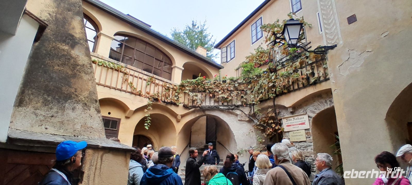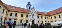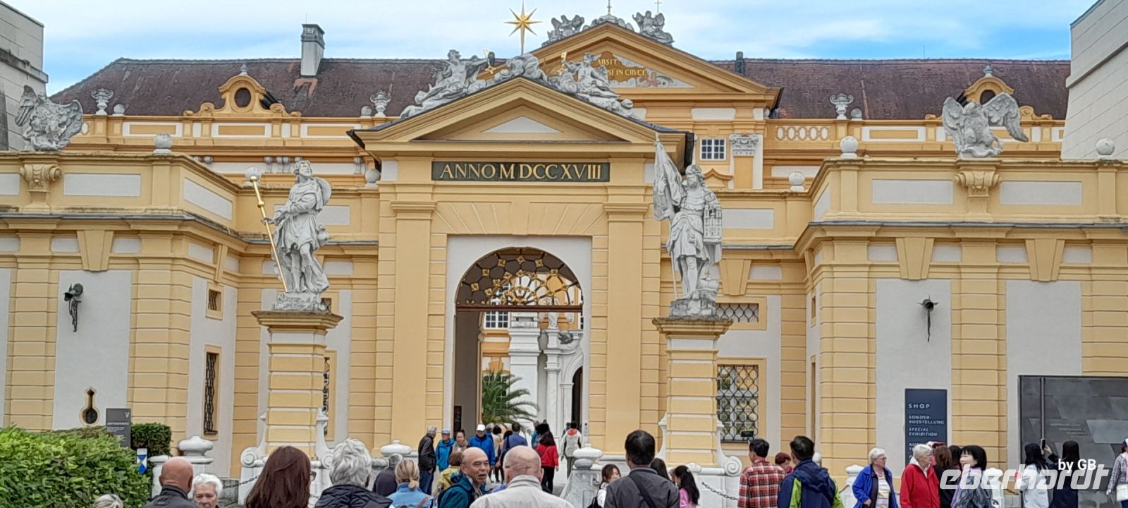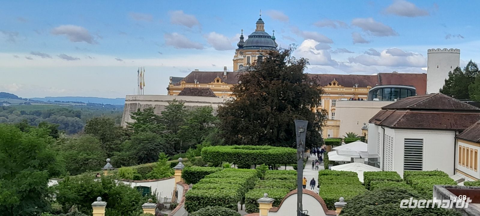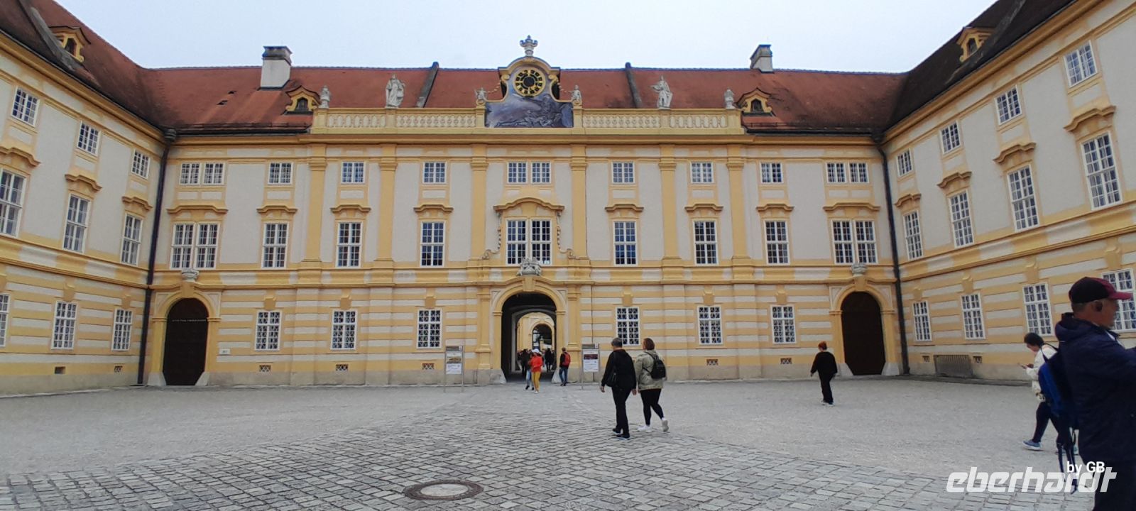 Die Wachau, die wir heute durchfahren, gilt als schönster Abschnitt des Donautals. Am Morgen legt die MS Viktoria in Dürnstein an. Der himmelblaue Kirchturm der Stiftskirche ist schon von weitem sichtbar. Wir gehen ein Stück auf der Promenade bzw. dem Donauradweg entlang. Von hier aus haben wir einen wunderschönen Blick auf die Ruine der Kuenringer Burg aus dem 12. Jahrhunder, in der einst Richard Löwenherz gefangen gehalten wurde. Durch schmale, steile Gassen erreichen Sie das Zentrum des Städtchens. Wir sehen den Pranger und das Badhaus und das Kloster mit der barocken Stiftskirche. Heute ist Sonntag und überall wir das Erntedankfest´gefeiert, hier in Dürnstein mit Prozession in Trachten und Blasmusik. Unser lokale Führer zeigt uns noch das Rathaus und entlässt uns dann zu einer kurzen Erkundund des Städtchens auf eigene Faust mit anschließendem Fußweg zum Busparkplatz. Von hier aus bringt uns ein Bus nach Melk. Bekannt ist Melk für das wunderschöne, 2011 restaurierte Kloster aus dem 18. Jahrhundert. Das Stift gehört zu den herausragenden barocken Bauten Europas und thront oberhalb der Donau. Wir erkunden den frei zugänglichen Teil des Gartens und die Höfe dieser riesigen Anlage und können auch einen Blick in die grandiose baracke Stiftskirche werfen. Auch hier gibt es noch etwas Zeit zum Shoppen und Fotografieren. Dann wartet auch schon unser Bus, um uns zurück an Bord zu bringen.