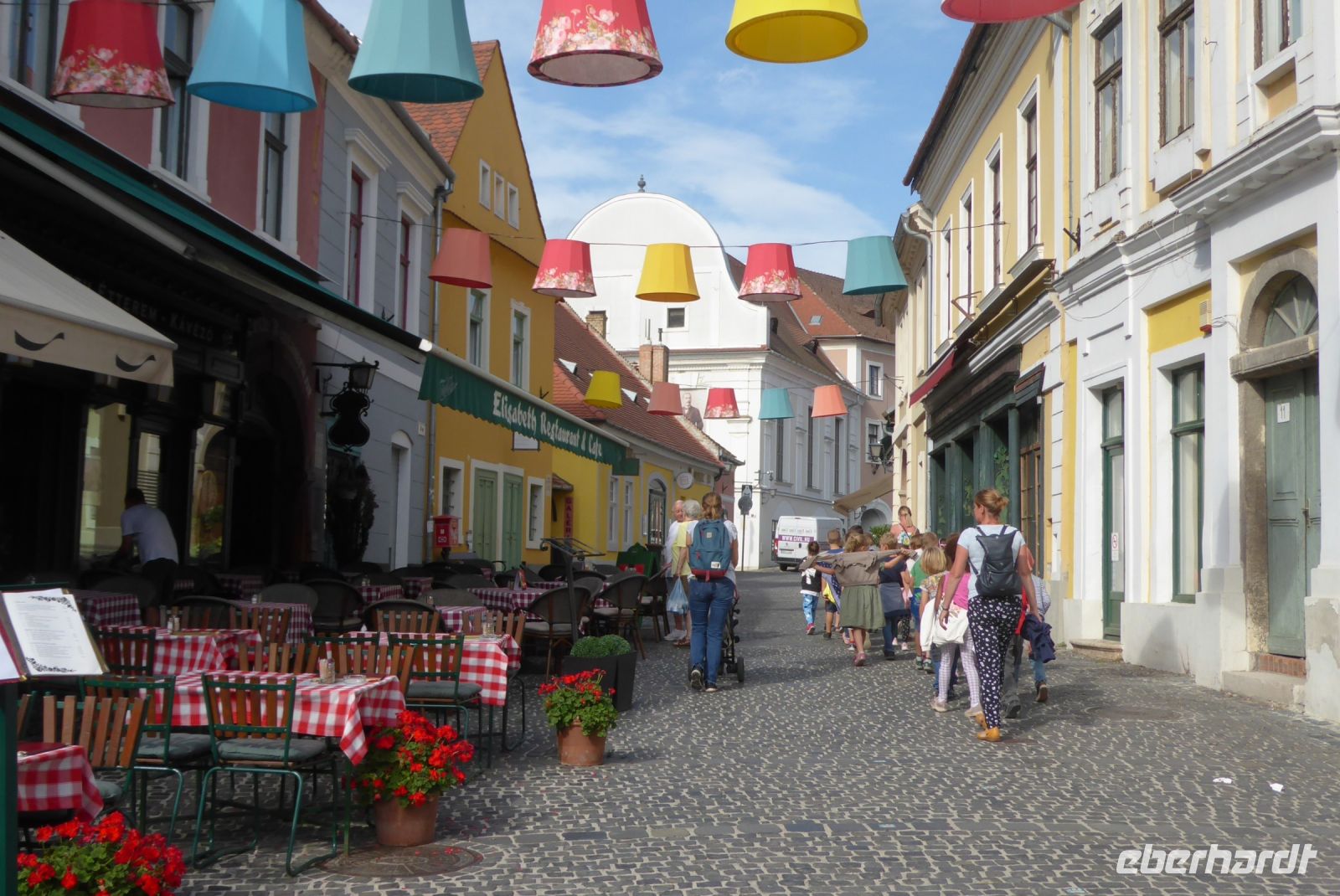 Unser nächstes Ziel ist das kleine Künstlerstädtchen Szentendre, welches durch sein barockes Stadtbild begeistert. Ein Spaziergang führt Sie bis zum Hauptplatz durch die Fußgängerzone. Rechts und links finden Sie Geschäfte mit typischen, ungarischen Souvenirs. Karla, die uns auch heute noch führt, macht mit uns einen Spaziergang durch den Orr . Nach einer Freizeit zum Genießen, Shoppen und Fotografieren bringt uns der Bus zurück zum Schiff nach Esztergom. Hier verabschiedet sich unsere lokale Führerin, und unser Schiff fährt weiter stromaufwärts Richtung Wien.