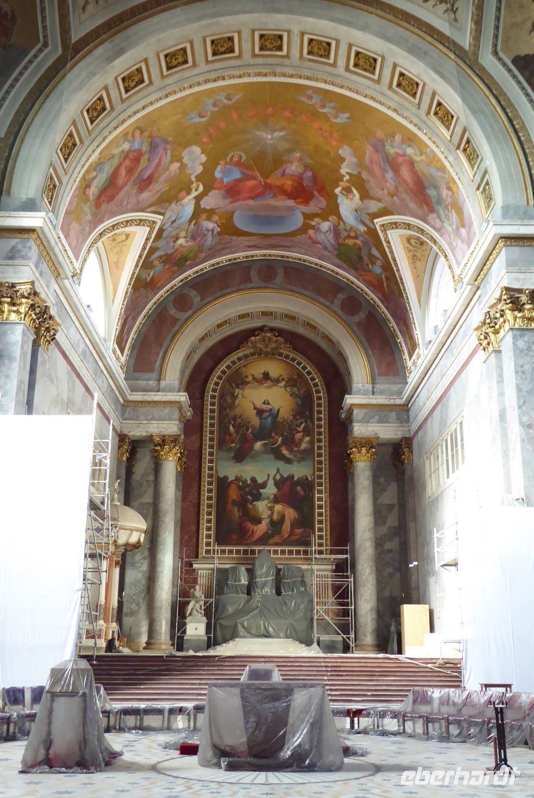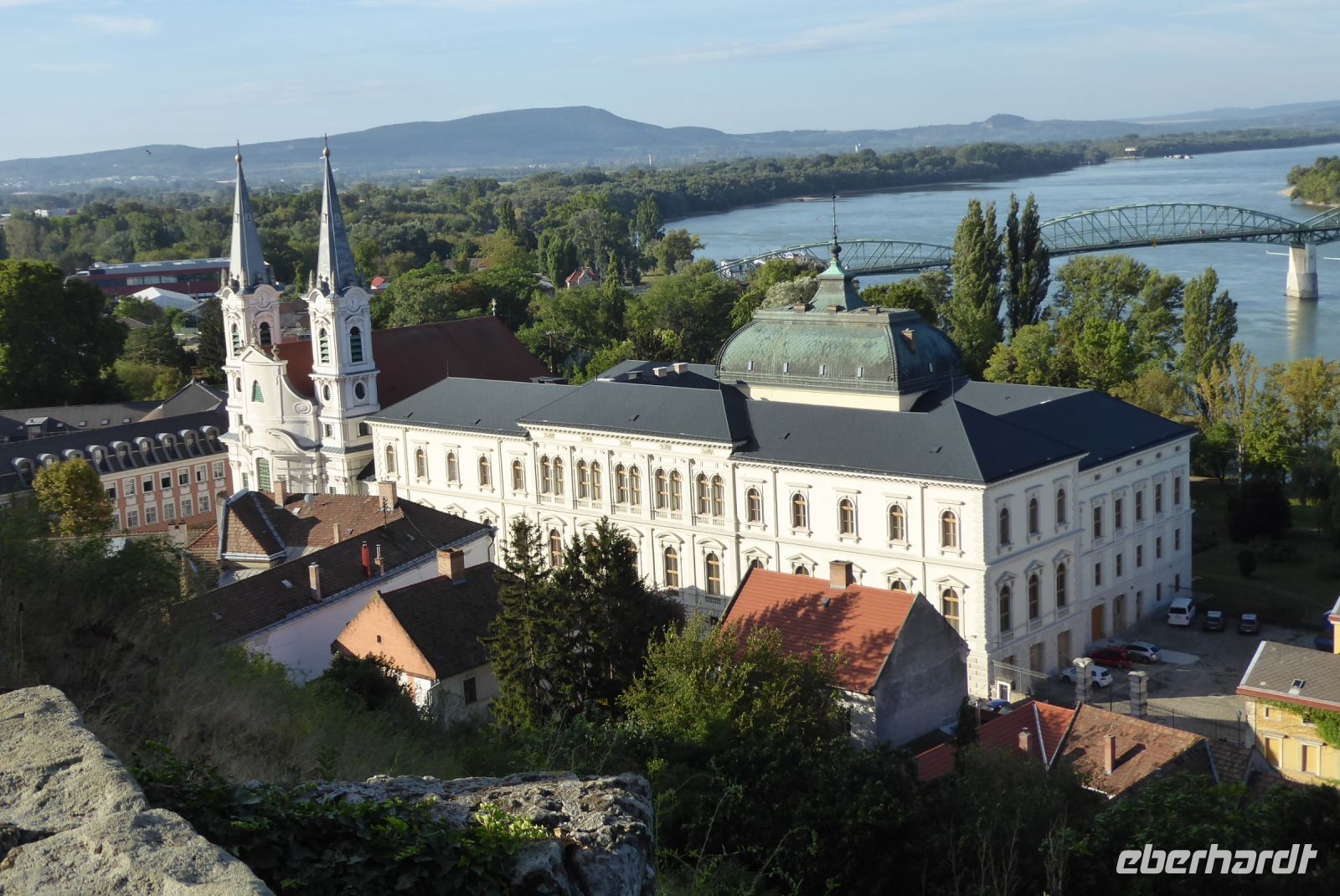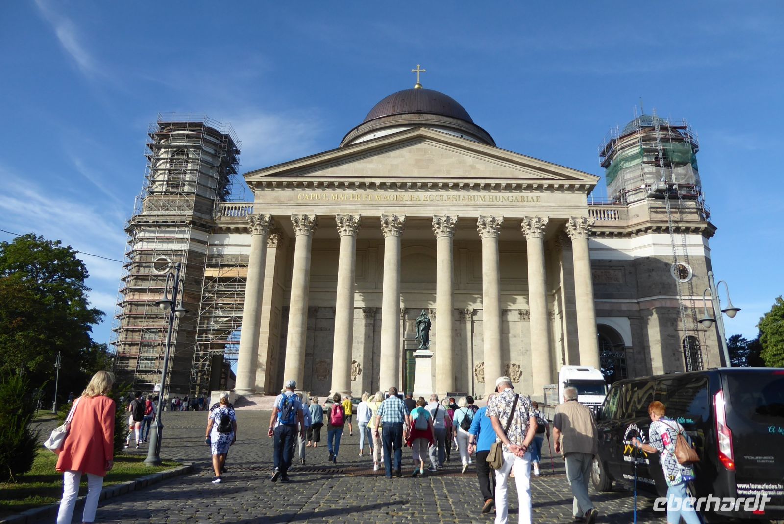 Am frühen Morgen durchfährt die Viktoria nochmals das Donauknie, diesmal stromaufwärts, und legt in Esztergom schon vor dem Frühstück an. Heute erwartet uns die riesige klassizistische Basilika, Ungarns größter Kirche. Sie ist nach dem Vorbild des Petersdoms in Rom gebaut. Ihre Kuppel ist 71 m hoch und vonn Säulen umgeben. Die Kirche fasziniert in ihrer wahren Größe und der Ausstattung mit Statuen, Fresken und kostbaren Altarbildern. Von der Aussichtsterrasse aus haben wir einen schönen Blick auf die Donau, die Stadt Esztergom und auf der anderen Donauseite das slowakische Sturovo.