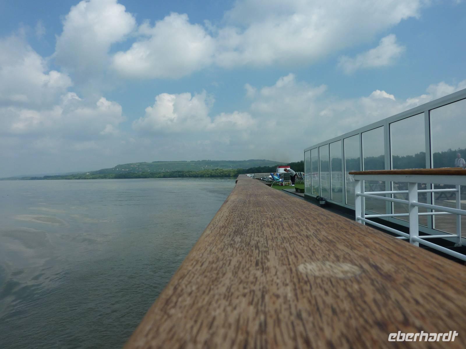 Am fünften Tag erreichten wir früh am Morgen Esztergom. Wir starteten ganz gemütlich unsere ca. 3 stündige Tour (ca. 18 km) durch Esztergom und über den wunderschönen Marktplatz. Das Örtchen war an diesem Sonntagmorgen wie ausgestorben und wir hatten die kleinen, verträumten Gässchen für uns alleine. Danach ging es weiter entlang der Donauauen ins Grüne. Hier hörte man keinen Lärm, nur einen Hahn der uns erfreut mit einem herzhaften „Kiekeriekiiiieeee" begrüßte. Zum Schluss ging es noch etwas steil bergauf zum Dom von Esztergom. Der Dom war während der Tour die ganze Zeit zu sehen und thront über dem kleinen Örtchen. Wir haben uns zunächst den Dom von außen näher angeschaut, bevor wir uns die Reste der ehemaligen Burganlage und die alten Glocken die zum Teil im 2 Weltkrieg stark beschädigt wurden näher betrachtet haben. Danach ging es noch in die Krypta wo es gefühlte 10 Grad kälter war als im freien . In dem Dom durften wir uns, da es Pfingstsonntag war,einen kurzen Eindruck von der Heiligen Messe verschaffen an der sogar ein Bischoff aus Ungarn anwesend war. Das war ein gelungener Abschluss einer sehr schönen, entspannten Tour. Den restlichen Tag verbrachten wir bei aufklarendem Himmel auf dem Schiff und natürlich auf unserem Sonnendeck. Da holte sich doch der Ein oder Andere einen kleinen Sonnenbrand . Das erste mal für diese Reise. Wir haben uns riesig über die Sonne gefreut, die auch schon richtig Kraft hatte.
