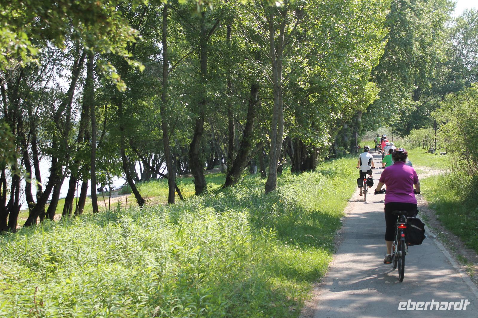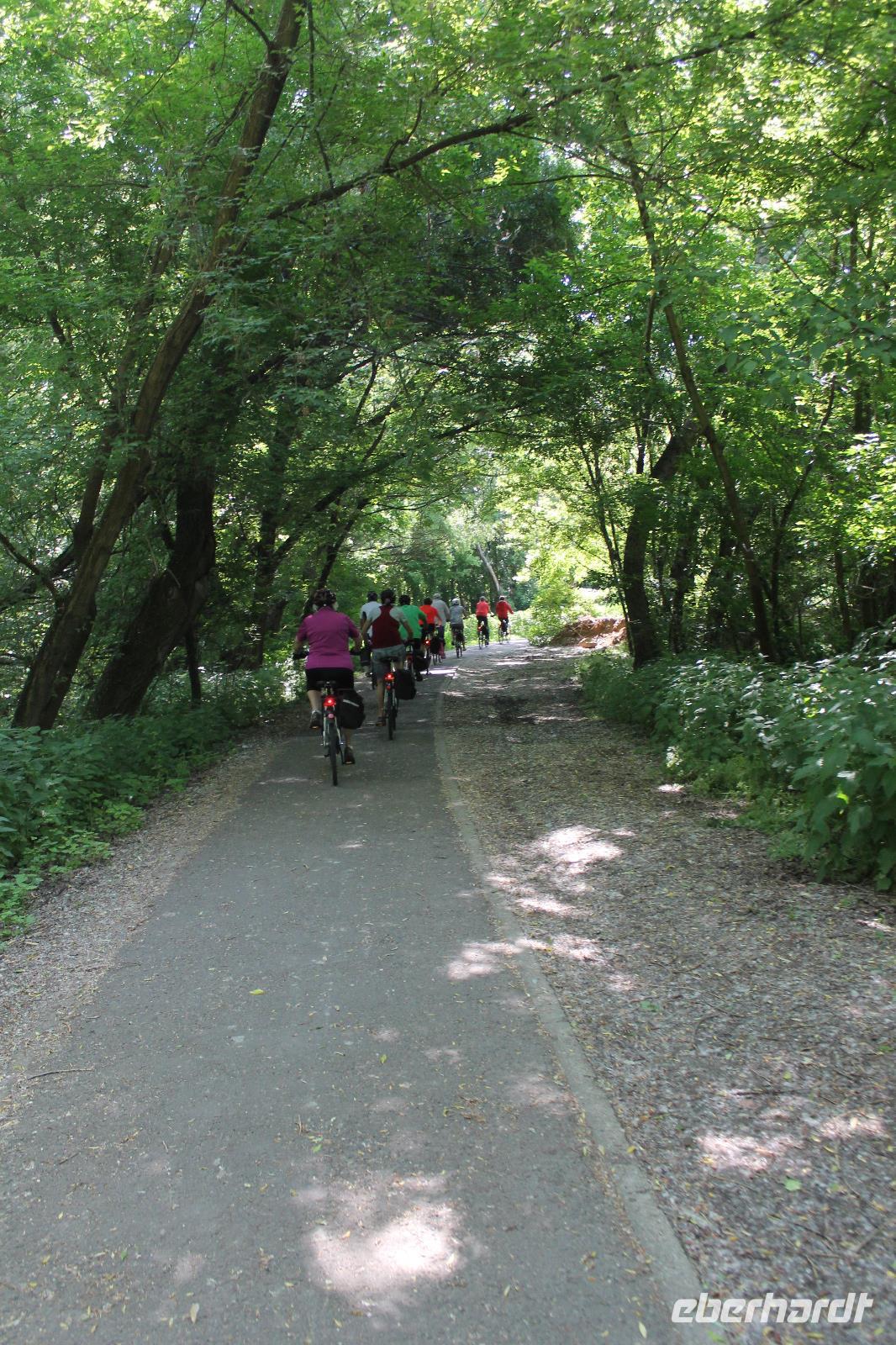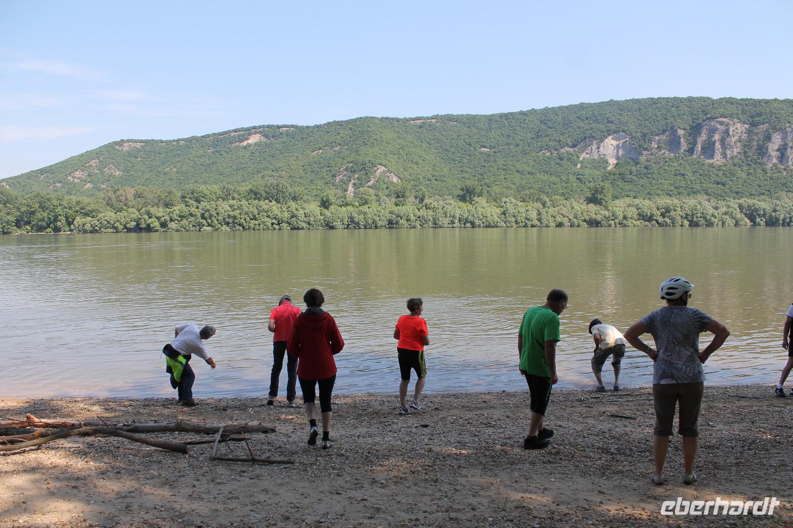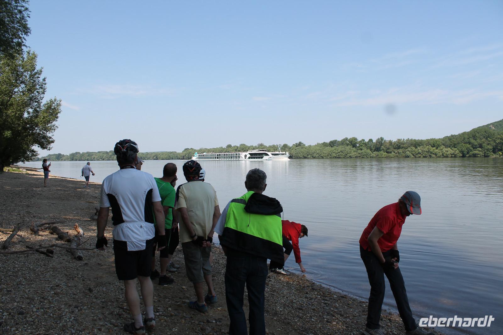 Heute absolvierten wir die wohl entspannteste Strecke unserer Reise. Es ging los mit einer kleinen Auffahrt auf den Berg, hoch zur Basilika, die wir mit unserem Guide auch von innen besichtigten. Hinter der Basilika wartete ein herrlicher Blick auf das Donauknie auf uns. Eigentlich war das auch schon der größte Teil des kulturellen Programmes gewesen, denn nun ging es durch die ruhige, grüne Natur entlang der Donau. Es war wunderbar - die Stille, nur das Surren der Fahrräder und das Zwitschern der Vögel. Um wieder ein Highlight zu schaffen, machten wir eine kurze Pause an einem kleinem Strand des Flusses, wo Heidi und ich mit den Füßen ins Wasser gingen ? Der Stopp tat allen gut, es war das komplette Gegenteil zum gestrigen Tag. Wir fuhren weiter durch die Idylle der Donaulandschaft und kamen letztendlich wieder in Esztergom an. Dort machten wir noch einmal Halt an einer Eisdiele und einer kleinen Kirche, bevor es zurück zum Schiff ging.