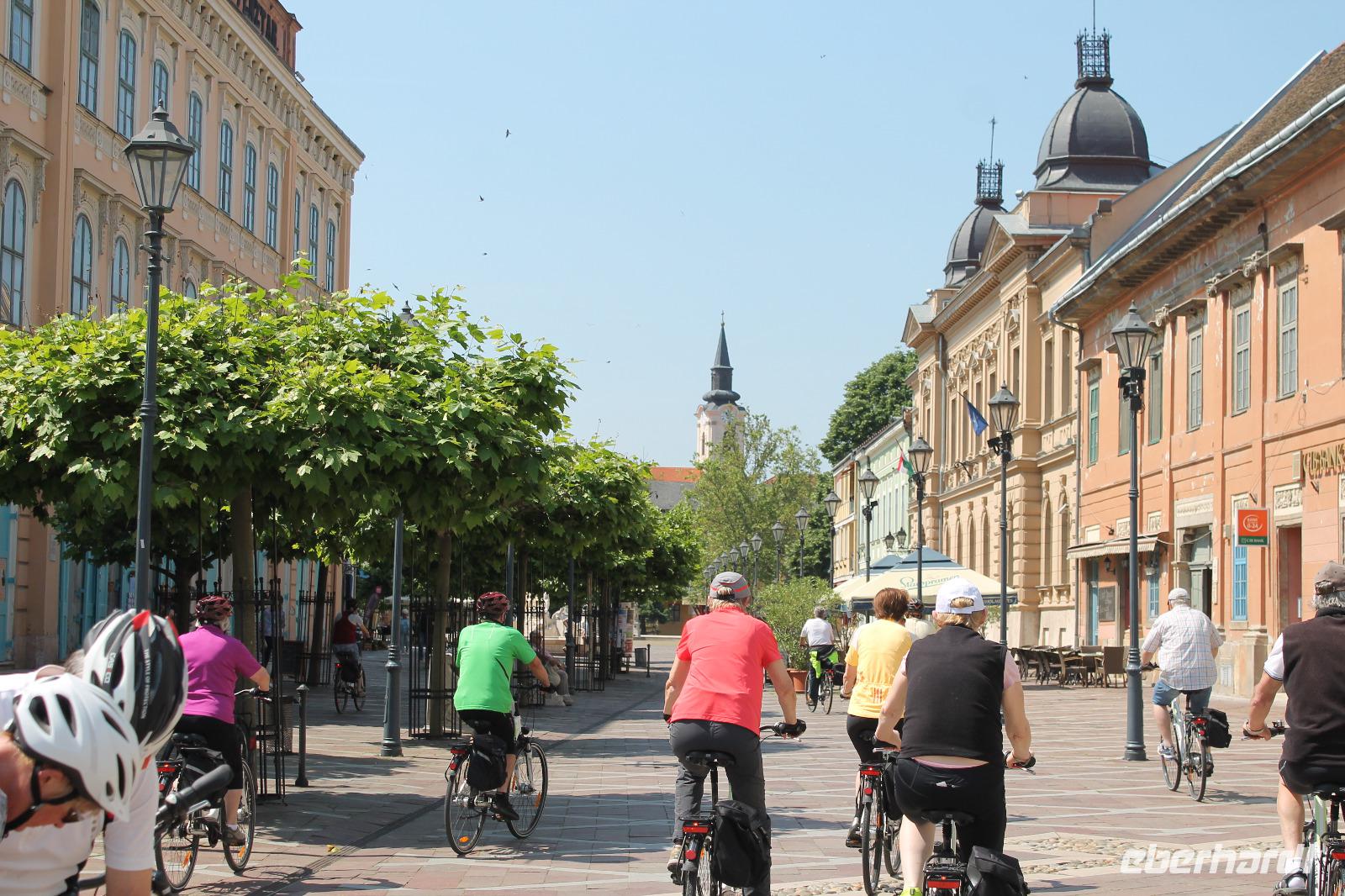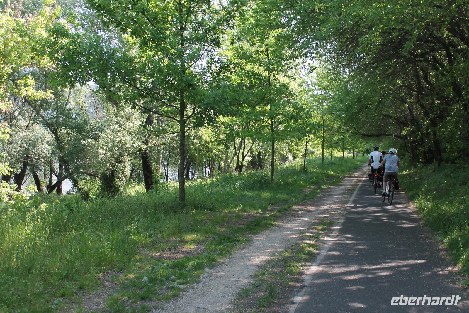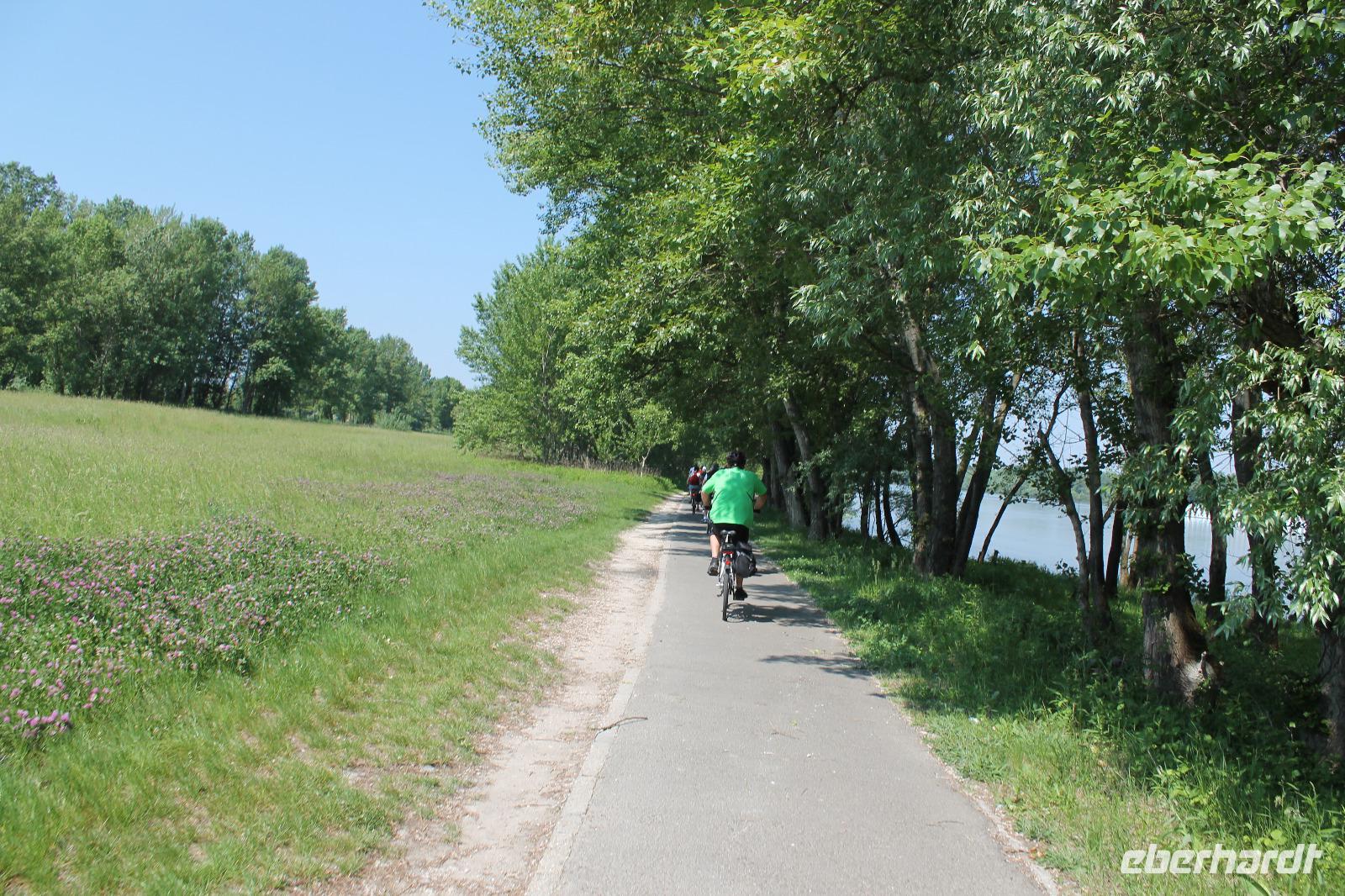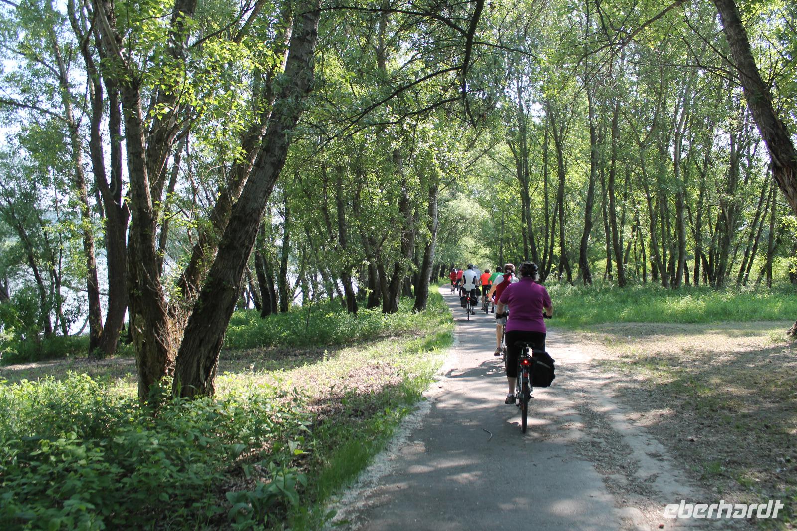 Heute absolvierten wir die wohl entspannteste Strecke unserer Reise. Es ging los mit einer kleinen Auffahrt auf den Berg, hoch zur Basilika, die wir mit unserem Guide auch von innen besichtigten. Hinter der Basilika wartete ein herrlicher Blick auf das Donauknie auf uns. Eigentlich war das auch schon der größte Teil des kulturellen Programmes gewesen, denn nun ging es durch die ruhige, grüne Natur entlang der Donau. Es war wunderbar - die Stille, nur das Surren der Fahrräder und das Zwitschern der Vögel. Um wieder ein Highlight zu schaffen, machten wir eine kurze Pause an einem kleinem Strand des Flusses, wo Heidi und ich mit den Füßen ins Wasser gingen ? Der Stopp tat allen gut, es war das komplette Gegenteil zum gestrigen Tag. Wir fuhren weiter durch die Idylle der Donaulandschaft und kamen letztendlich wieder in Esztergom an. Dort machten wir noch einmal Halt an einer Eisdiele und einer kleinen Kirche, bevor es zurück zum Schiff ging.