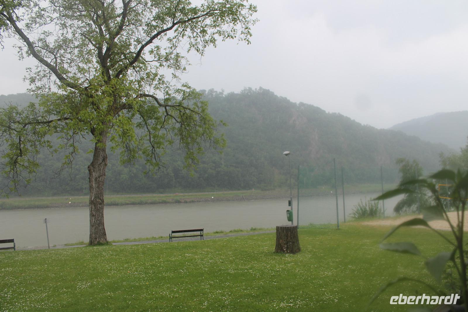 Morgens nach dem Frühstück empfing uns bereits an der Anlegestelle in Dürnstein unser Guide Peter. Unser erfahrener Reiseleiter für diesen Tag radelte in einem ordentlichen Tempo vorweg, vorbei an Weinbergen, durch kleine Dörfer, immer entlang der Donau. Wir machten eine Pause zum Wein oder Kaffee trinken und sammelten Kraft für die weitere Fahrt. Wir wussten nicht, was auf uns zukommt: Es begann erst leicht zu nieseln, doch dann brachen die Wolken auf und es schüttete wie aus Eimern. Wir schützten uns vor dem Regen in einer kleinen Unterkunft, wo wir unsere Frühstückspakete, die uns das Schiff mitgab, verzehrten. Natürlich versorgte Peter uns mit Informationen über die Wachau. Wir näherten uns unserem Ziel, Melk, wo die MS Rossini auch schon auf uns wartete. Angekommen, waren wir alle froh im Trockenen zu sein und freuten uns mal wieder auf das Abendessen - denn heute war das Kapitänsdinner. Mit Wunderkerzen und Eistorte, ließen wir den Tag ausklingen.