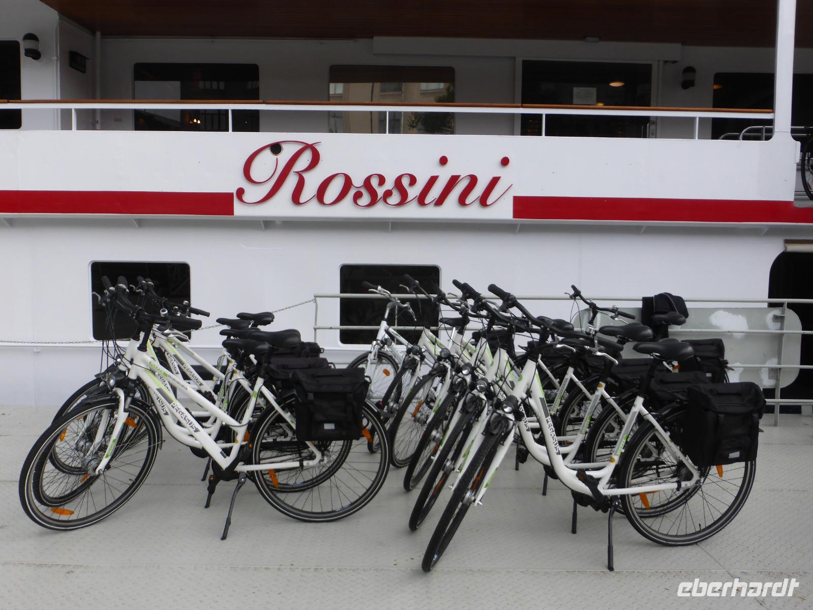 An Bord der MS "Rossini"vom 19.bis 25.Mai befindet sich auch eine Radgruppe. Soll heißen, es sind vierzehn Reisegäste, die sich für die Kombination Luxus an Bord und körperlicher Betätigung an Land, s