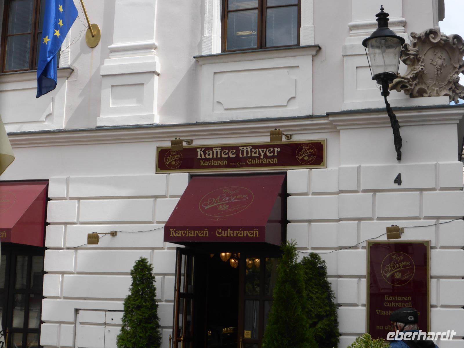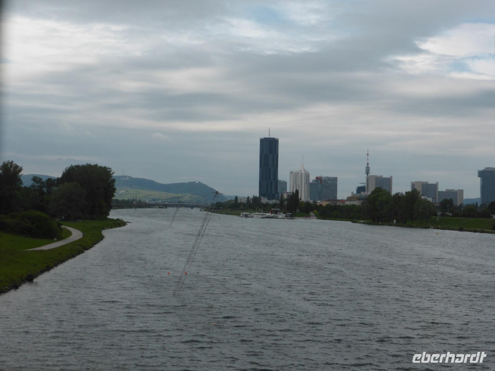 Die Stadtrundfahrt per Bus am Vormittag macht uns bekannt mit Wien, der großartigen Hauptstadt Österreichs. Zu Fuß ... Das spezielle Programm der Radgruppe findet am Nachmittag statt. Das Prozedere für den Start ist schon eingspielt. Die Matrosen hieven die Räder von Deck, wir stehen und schauen gespannt, bis das „eigene", mit dem kleinen Erkennungszeichen daran, auftaucht. Ein quicklebendiger Radguide begrüßt uns und bald merken wir, dass er für Wien „brennt"... Wie fahren zum Prater, genau genommen: zum „Wurstel-Prater", dem bekannten Vergnügungspark Wiens mit dem seinem legendären Riesenrades. Wie erfahren, welche Rolle der Vergnügungspark im alltäglichen Leben der jungen Wiener Familien mit Kindern spielt und wofür das Riesenrad so alles gut ist, befindet sich doch gleich gegenüber eine Discothek... Weiter führt die Fahrt über die Hauptallee des Praters zur Donauinsel, dem beliebten Naherholungsgebiet der Wiener und seiner Gäste. Kilometerlange Wege laden zum Radfahren, Spazieren, Wandern oder Joggen ein. Wir tun das Erstere und gelangen auf die Steinspornbrücke. Mitten darauf halten wir an zum Schauen und Fotographieren. Mit charmanter Vehemenz schwärmt unser Guide davon, dass Wien die lebenswerteste Großstadt überhaupt ist und wie das mit dem Kaffee ist. Und wie genau das ist, probieren wir anschließend gleich aus. An der Alten Donau, einer zauberhaften Oase der Stille und Ruhe nahe der Großstadt, kehren wir ein in eine kleine Lokalität und trinken einen Großen oder Kleinen Braunen, einen Einspänner oder einen Fiaker oder einen Kapuziner oder oder... Selbstredend gleicht eine solche kulinarische unterhaltsame Pause dem berühmten Salz in der Suppe. Noch einmal über die Donau und wir gelangen wieder zur "Rossini", die am Kai liegt.