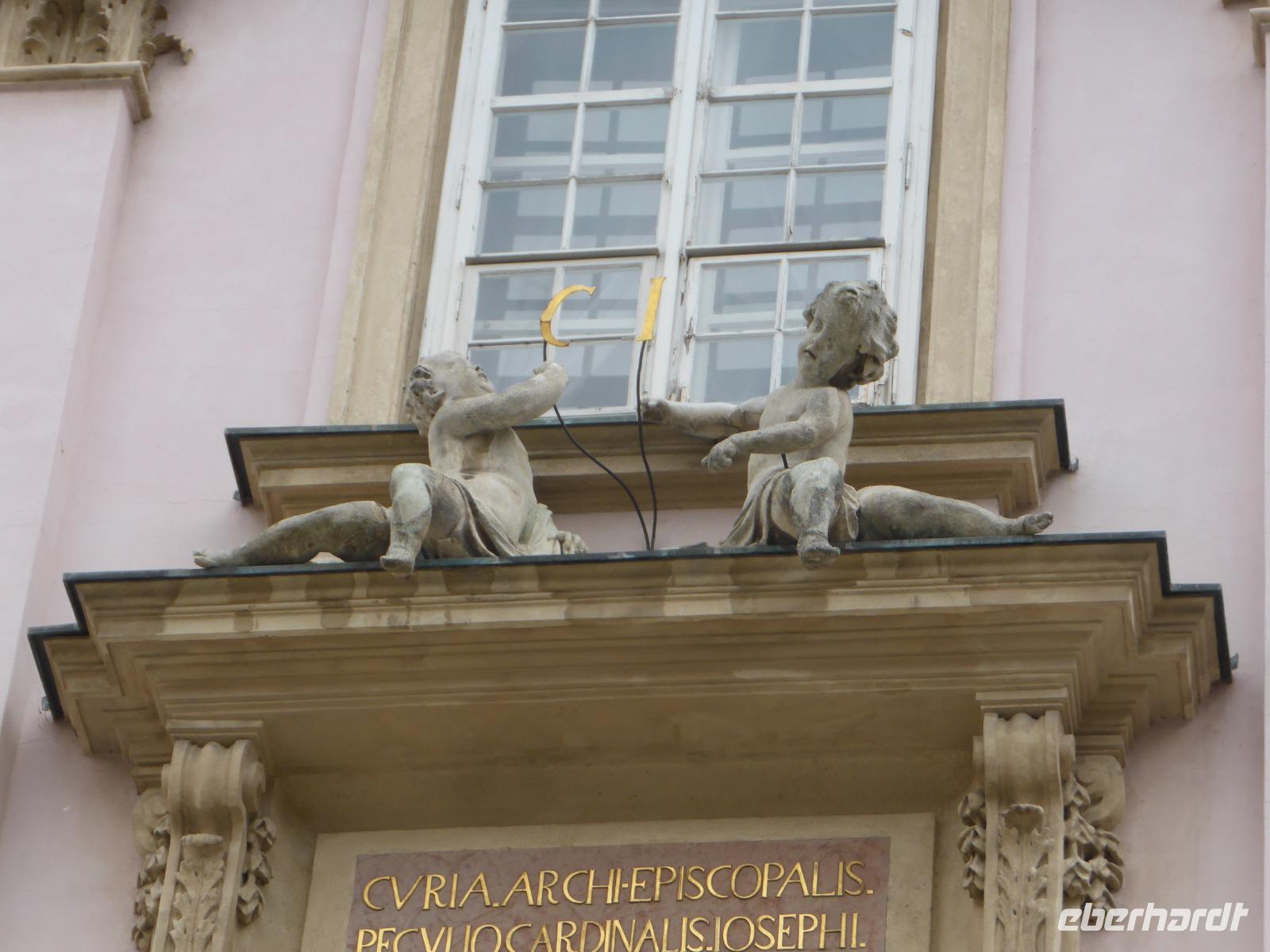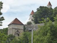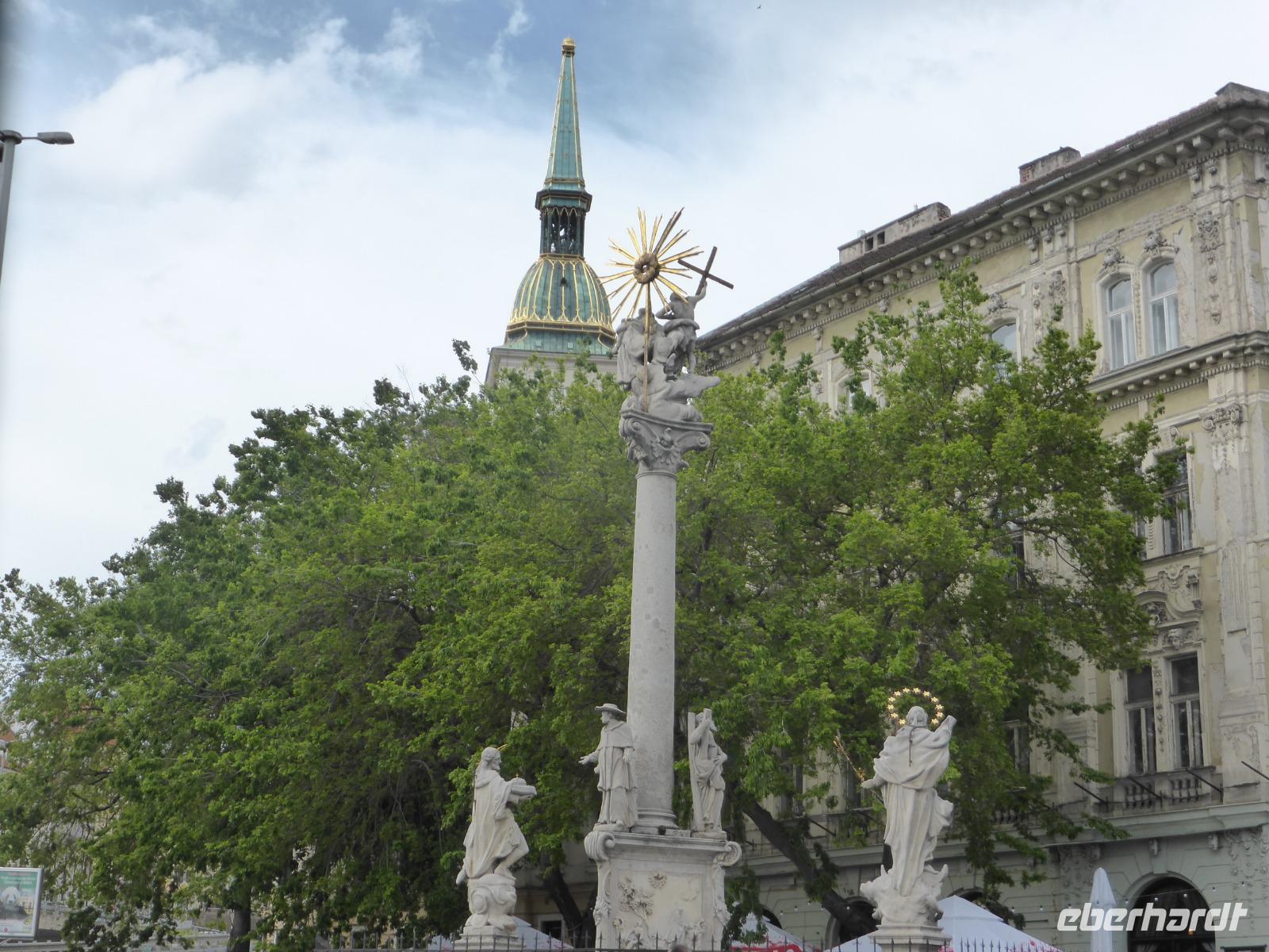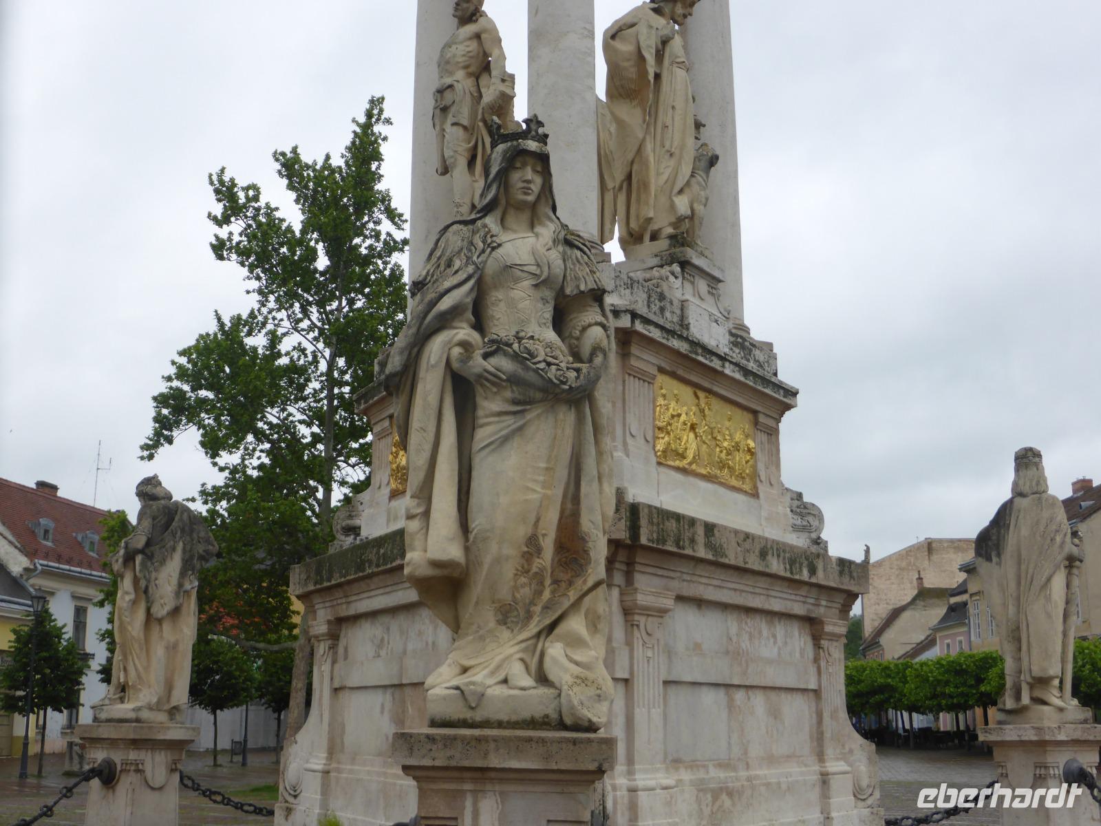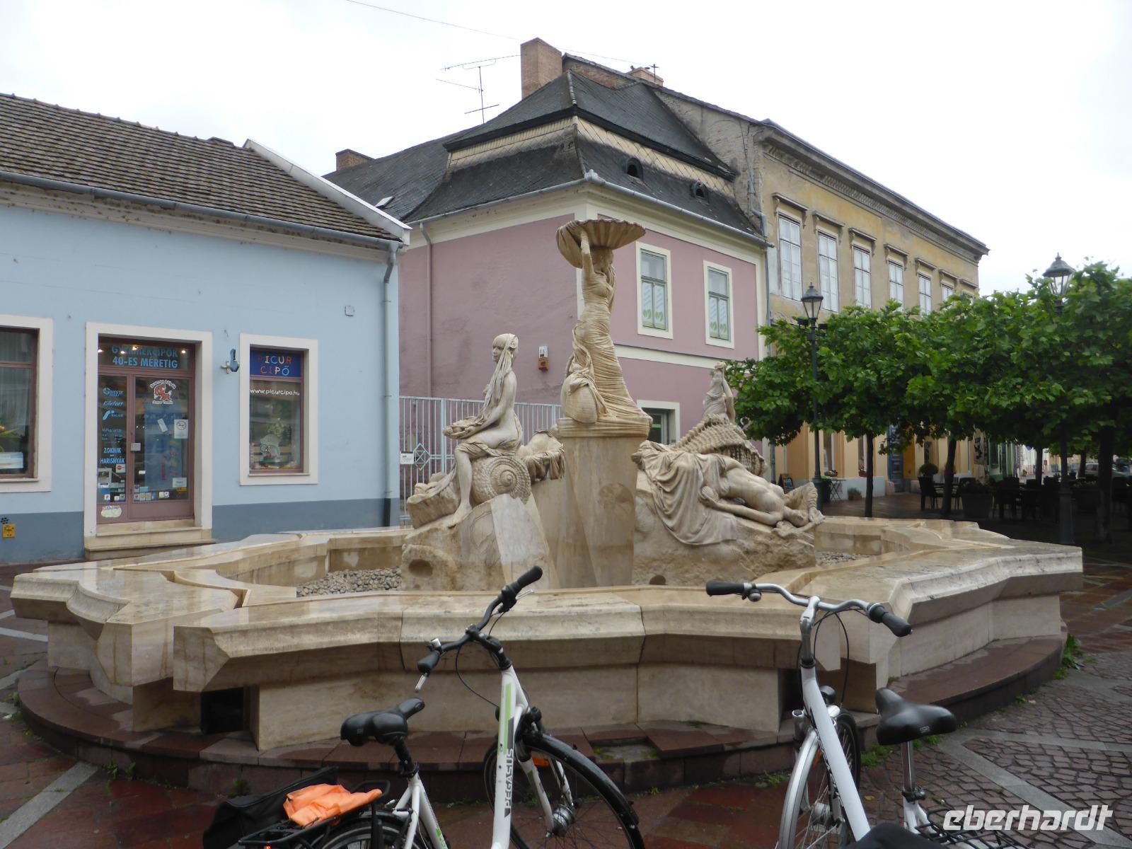 Die „Rossini" hat angelegt in Esztergom. Die Radtour findet heute am Vormittag statt. Leider regnt es und für den restlichen Tag ist auch kein Sonnenschein in Aussicht gestellt. Die gute Hälfte der Radgäste möchte nicht bei Regenwetter fahren und so macht sich der „harte Kern" mit dem Radguide auf den Weg. Die meisten Touristen überhaupt kommen wegen der Basilika in das kleine Städtchen. Sie ist die größte Kirche Ungarns, ihre massive Kuppel erinnert an den Petersdom in Rom und bestimmt das Stadtbild von Esztergom. Zuerst sollen wir den Berg erklimmen, auf der die Basilika thront. Es stellt sich heraus: das ist pillepalle. Wenn überhaupt, steigen wir nur wegen des nassen Pflasters vom Rad ab. Wir sind früher oben als die Busse mit den anderen Gästen, die etwa zeitgleich gestartet sind. Der Radguide führt uns durch die Kirche und sogar in die Krypta. Sehr beeindruckend. Die Aussicht nahe der Statue von König Stephan auf die Donau ist herrlich, wir sehen die „Rossini" liegen. Am Ufer gegenüber liegt die Schwesterstadt Sturova, bereits in der Slowakei. Die weitere Fahrt empfinden wir als idyllisch trotz des Regens. Das Cafe, in welchem wir eine Pause machen möchten, öffnet erst später. Weiterfahren ob des Regens macht nicht so recht Sinn, so drehen wir um. Eine Besichtigung des malerischen Stadtteils Vizivaros von Esztergom, dem ältesten Städtchen am Donauknie, lassen wir uns aber nicht nehmen. Die barocken Gassen sind zauberhaft, der Marktplatz mit dem Rathaus sehr beschaulich. Eine „alte Bekannte" begegnet uns hier: die Heilige Elisabeth zu Thüringen, geboren als Prinzessin in Esztergom in Ungarn, bekannt durch die Legende des Rosenwunders, als sie von der Wartburg bei Eisenach den Armen in der Stadt heimlich Brot bringen wollte. Zuguterletzt fahren wir noch über die Maria Valeria Brücke zum anderen Donauufer, um die Sicht auf das Ensemble der Basilika von gegenüber auf uns wirken zu lassen. Pitschenass werden wir schlussendlich in den letzten Minuten auf dem Weg zur „Rossini". Aber, und nicht geschummelt: es war ein schöner Radausflug, der uns zufrieden stimmt.