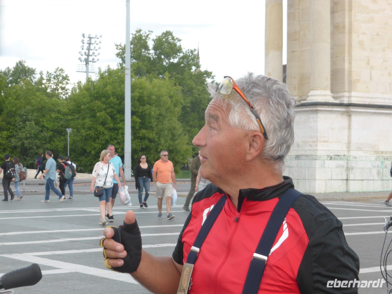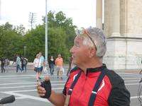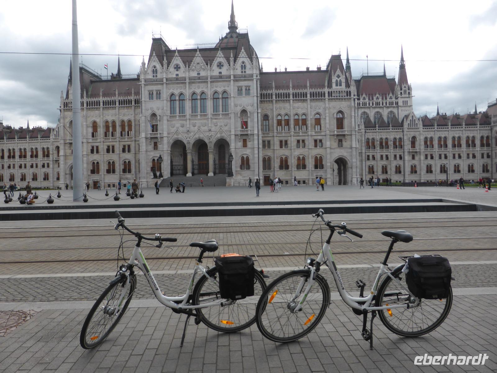 Nach dem Mittagessen an Bord steigen wir wieder auf die Räder. Hat es während des Mittagessens noch geregnet, haben wir jetzt Glück, denn der Regen hat aufgehört. Auf Radwegen hinein ins Getümmel lebendigen Stadt. Der Guide ergänzt noch einiges über die Sehenswürdigkeeiten, die wir teilweise schon am Vormittag, aber nur vom Bus aus gesehen haben. Es geht zum Nationalmuseum, zur Synagoge, zum Opernhaus, am Haus des Terrors vorbei bis zum Heldenplatz. Die Fahrt wird dann wesentlich ruhiger und entspannender, da wir durch den Stadtpark fahren, am Schloß Vajdahunyad anhalten, vorbeifahren am legendären Szechenyn-Bad und dem Zoo, der sich gegenüber befindet, und zu guter Letzt die Fahrt auf der Margareten-Insel genießen. Hier an der Donau lässt es sich wunderbar Radfahren. Der Weg zurück in Richtung Schiff führt uns direkt am Budapester Parlament vorbei. Eine ausgiebige Tour durch und um Budapest, gerade noch so kommen wir rechtzeitig zum Abendessen zurück an Bord