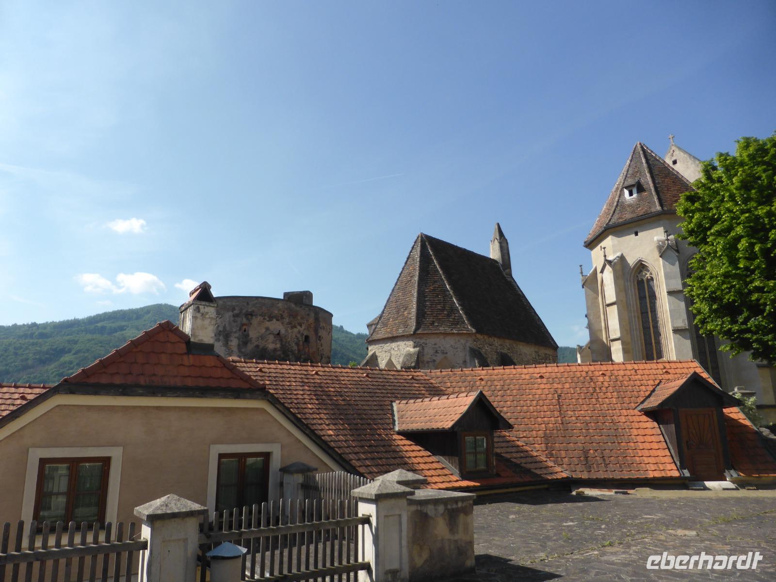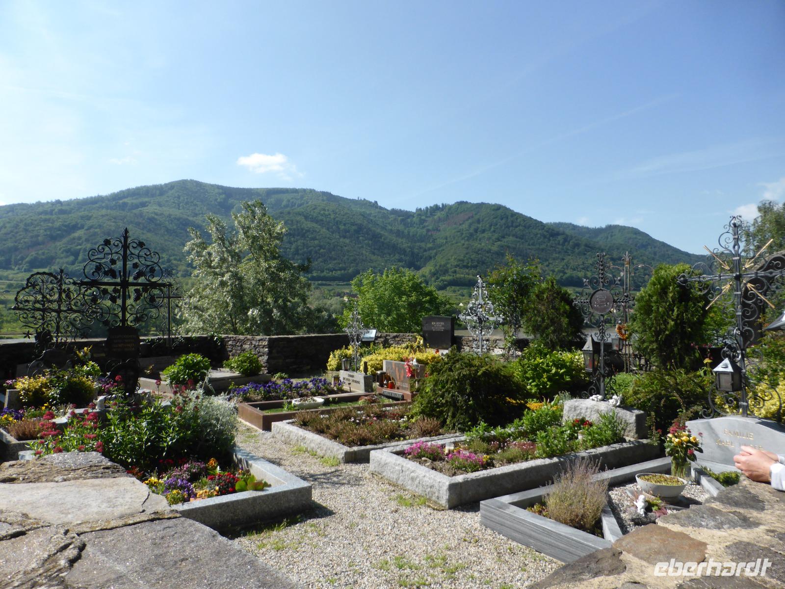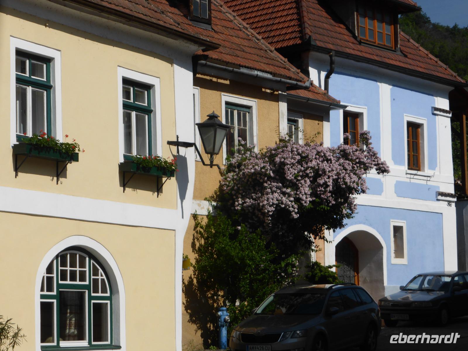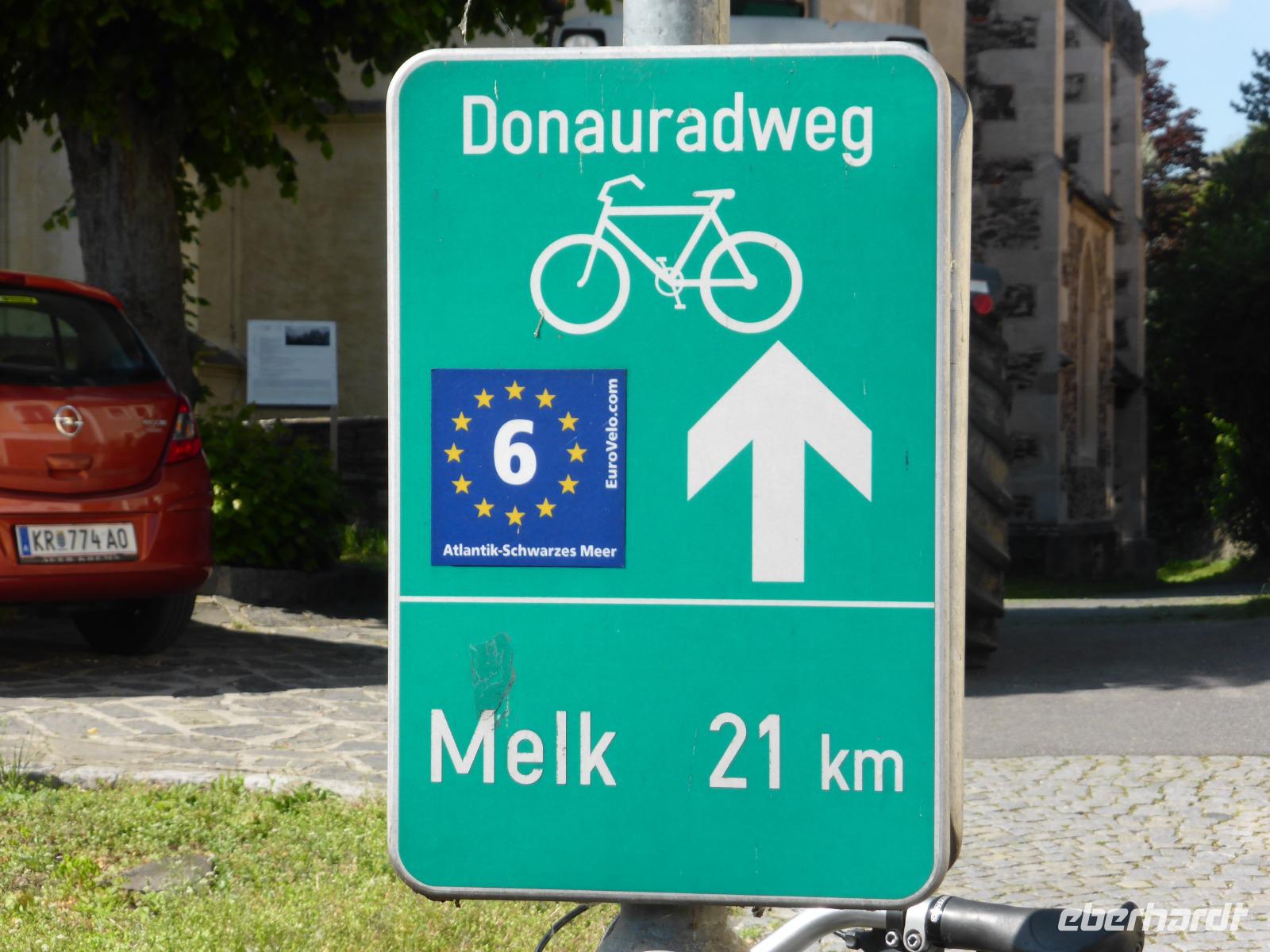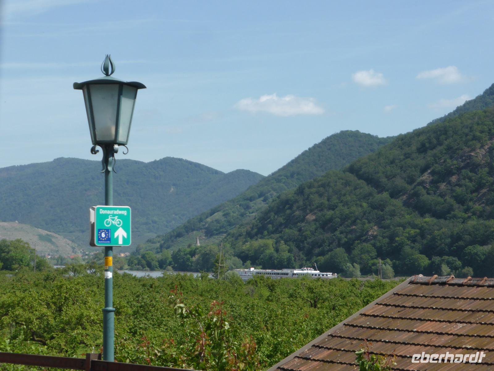 Die Wachau. Wer hat nicht schon von ihr gehört, war schon da oder hat sie zum eigenen Wunschreiseziel erklärt, das in diesen Tagen mit Leben erfüllt wird. Mitten dort in der Wachau, in Dürnstein, unverwechselbar durch das Stift mit dem blauen Turm, gleichsam Wahrzeichen der Wachau legt sie an, die „Rossini". Gleich morgens geht es los, müssen wir doch heute regelrecht von A nach B radeln und zur rechten Zeit ankommen, wollen wir unser schwimmendes Hotel nicht verpassen. Die „Rossini" fährt von Dürnstein nach Melk auf der Donau, wir auf unseren Rädern tun dies auch, aber entlang der Donau logisch. Unterwgs sehen wir sie, mal sind wir vorn, mal hinten. Die Gäste an Deck, die heute keinen Ausflug per Bus unternehmen, und wir winken uns zu. Wer wird wohl Erster sein in Melk, könnte man fragen. Diese Tour aber ist viel zu kostenbar für eine Wettfahrt im engen Sinne. Welch Reise für die Sinne durch die Landschaft der Wachau ist es doch! Durch zauberhafte Ortschaften geht es , - Weißenkirchen, Wösendorf an der Wachau, Spitz, Schwallenbach, Willendorf an der Wachau, Groisbach, Aggsbach, Grimmsing, Schallemmersdorf, geprägt sich durch den Weinanbau und die dadurch entstandene Weinkultur. Diese Gegend als einmalig im besten Sinne des Wortes zu beschreiben ist nicht im geringsten übertrieben. Die längste unserer Touren ist die heutige, die Hosenböden der Genussradfahrern unter uns "qualmen" leicht. Als wir die Donau, die inzwischen Hochwasser führt, letztlich überqueren, sehen wir unser Schiff unweit unterhalb des Stifts Melk in der Sonne liegen. Die Gäste von Deck heißen uns willkommen, wir gehen an Bord, verweilen bis zum Mittagessen auch gern an Deck.