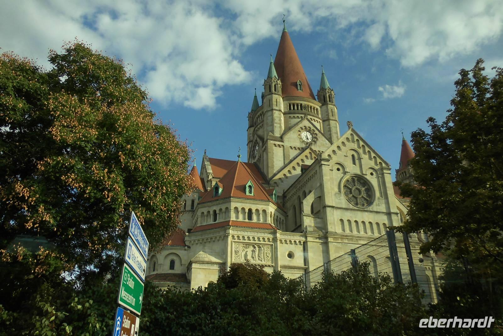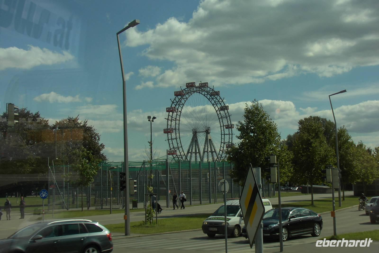 Die tolle Fassade von Wien begrüßt uns im Sonnenschein. Gegen 10.00 Uhr legt das Schiff am Handelskai an und wir haben die Chance die nähere Umgebung zu erkunden. Mit einigen Gästen mache ich mit auf den Weg zum unweit gelegenen Mexikoplatz. Nun wissen wir, warum der Platz so heißt und begeben uns zur Assisi Kirche. Viele wollen die Kirche von innen besichtigen und wer möchte kann mit mir noch zum Prater vorlaufen.