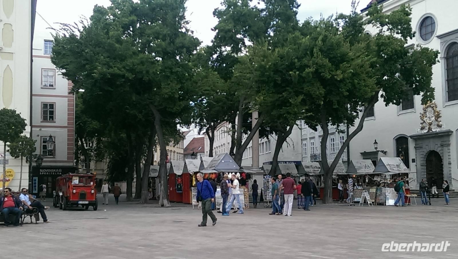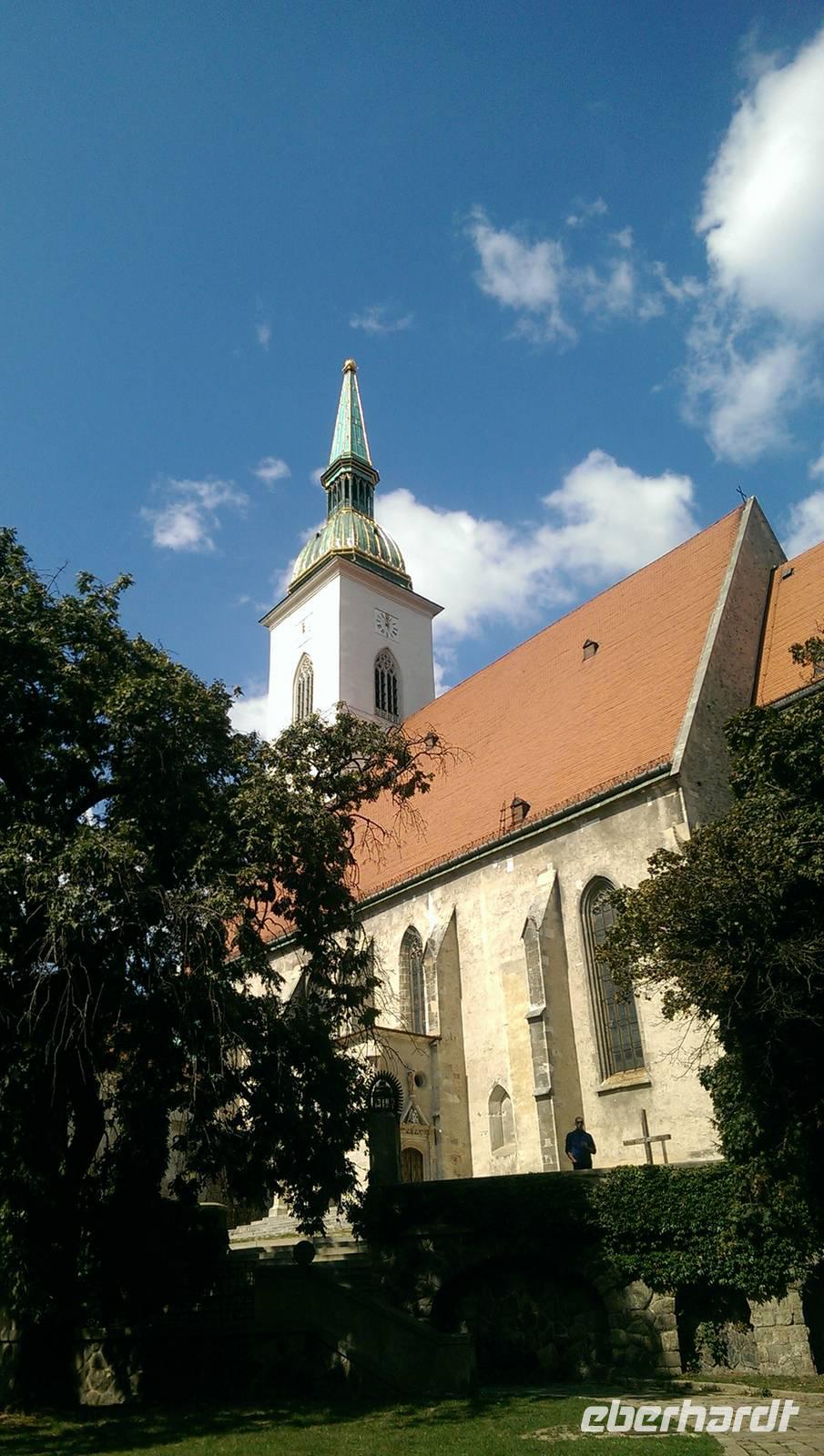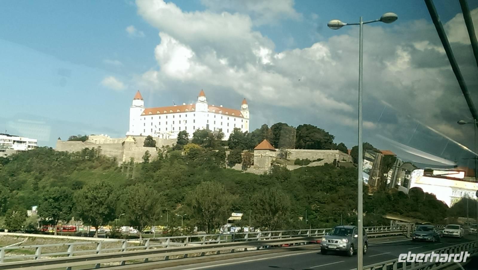 Heute geht es in die Slowakei. Wir steigen in Komarna aus, einer kleinen slowakischen Stadt und fahren mit dem Bus über die herrliche Landschaft nach Bratislava rein. Uns bietet sich ein atemberaubender Ausblick von der Preßburg. Hoch erhebt sie sich über die Stadt. In der jüngsten Hauptstadt Europas speisen wir zum Mittag in einem typischen slowakischen Restaurant. Es schmeckt wunderbar und anschließend führt uns unser Guide über den Krönungsweg durch die gesamte Stadt. Wir besichtigen das Rathaus, die Martinskirche und den Marktplatz. Unterwegs fallen uns immer wieder die verschiedenen Stauen auf. Zu jeder hat unser Guide eine kleine Geschichte zu erzählen. Anschließend geht es zurück zum Donauufer, wo unser Schiff bereits auf uns wartet. Auch hier heißt es wieder „Schiff Ahoi", denn es geht weiter in die Wachau.
