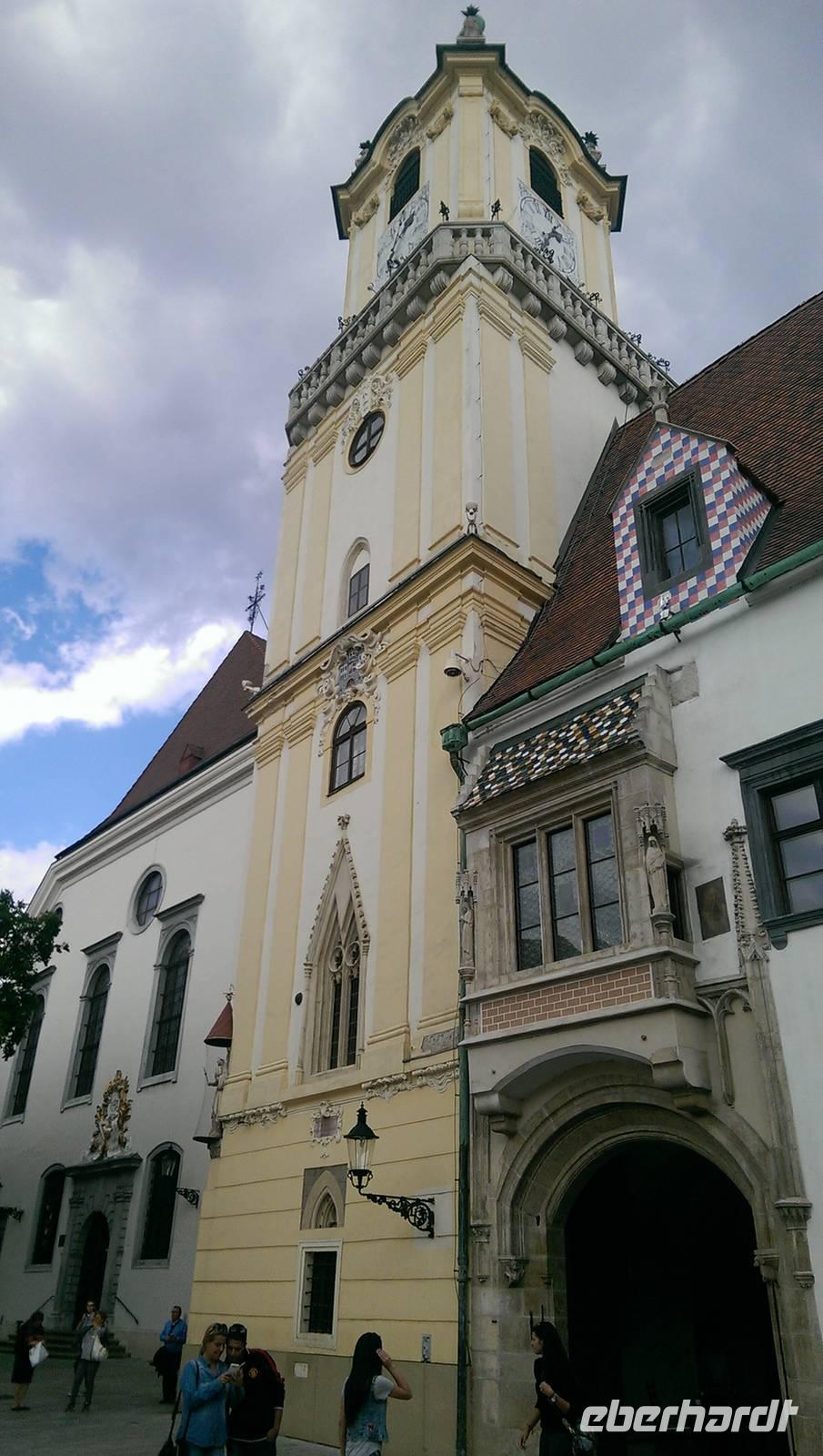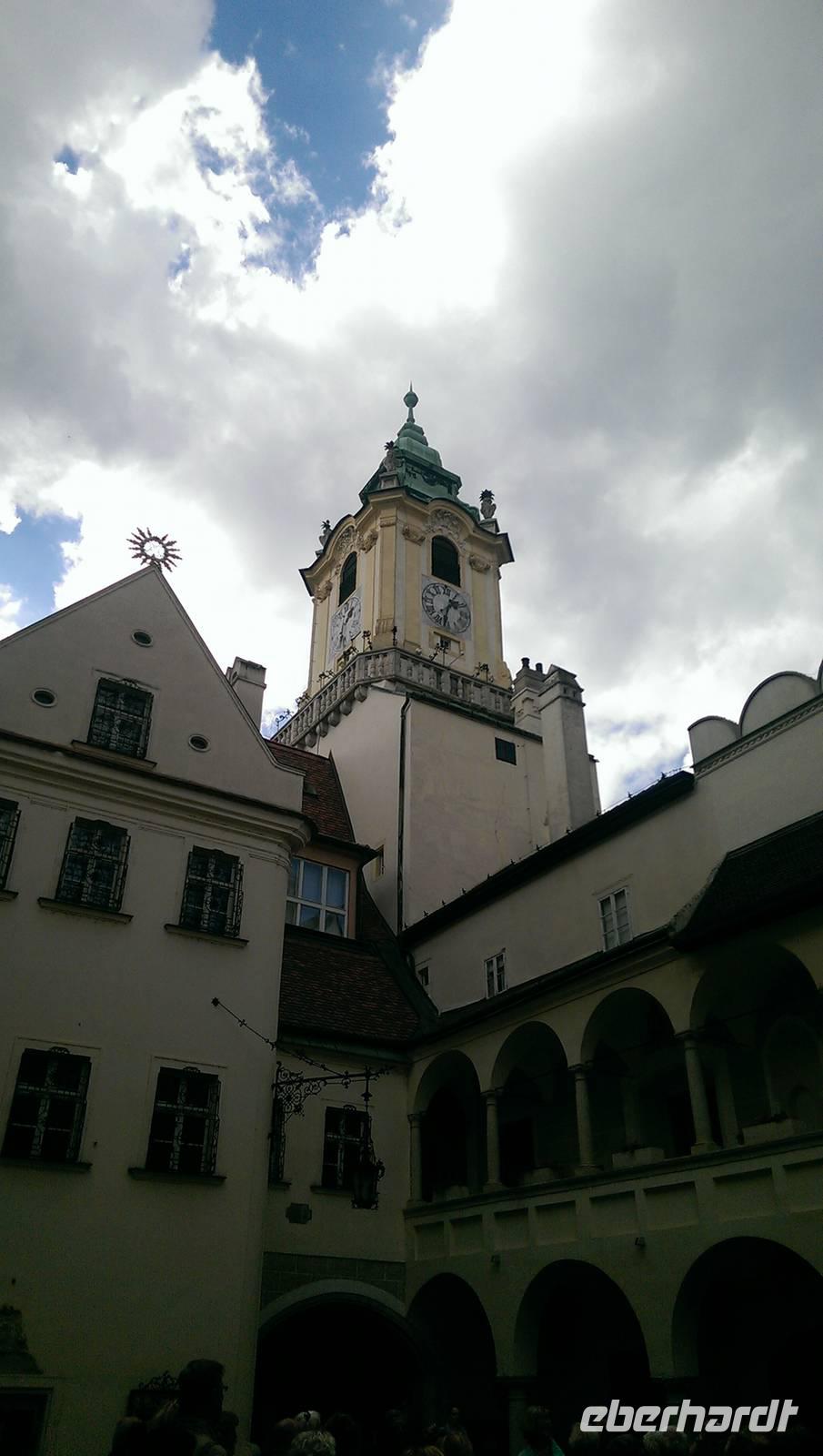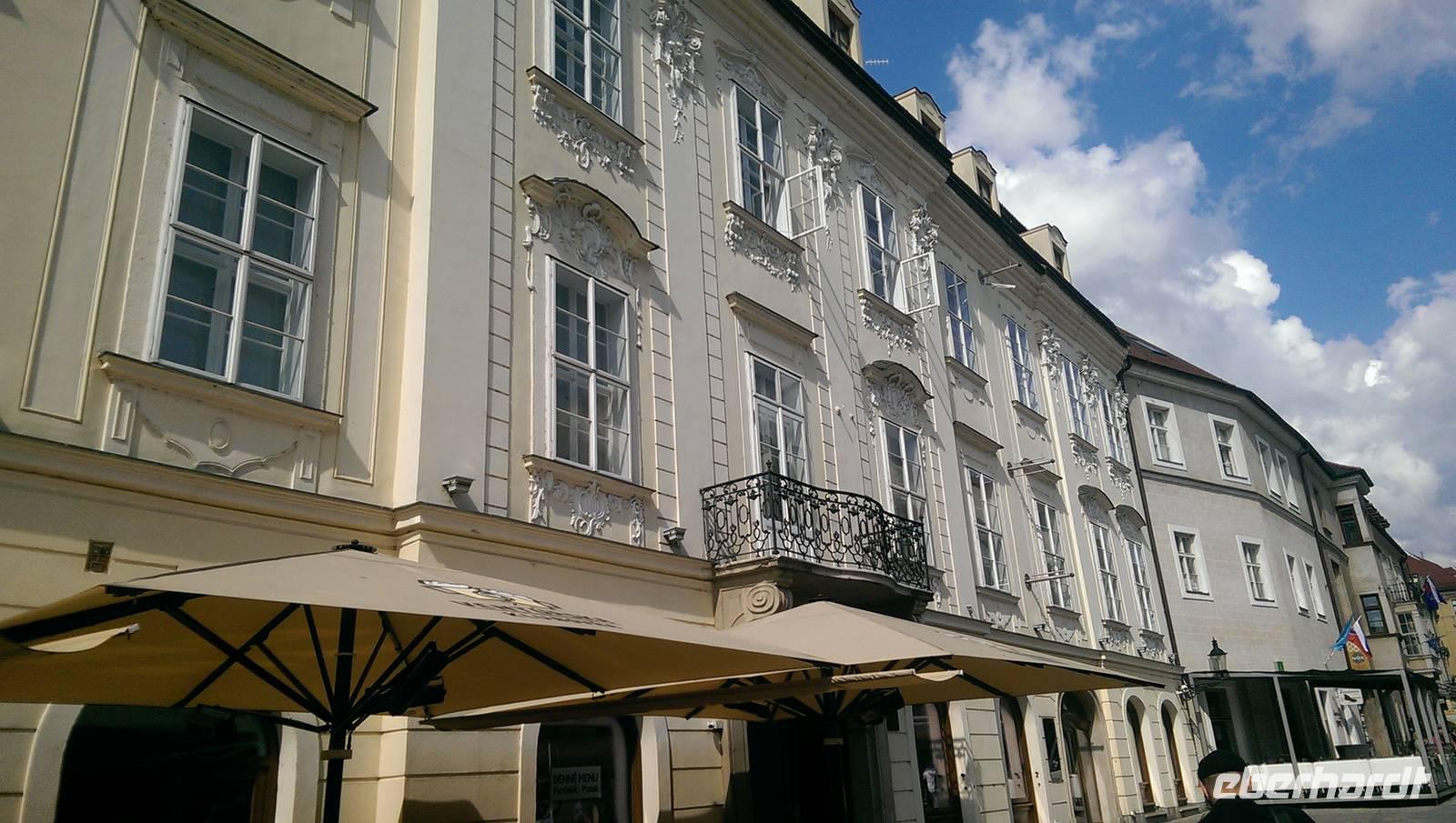 Heute geht es in die Slowakei. Wir steigen in Komarna aus, einer kleinen slowakischen Stadt und fahren mit dem Bus über die herrliche Landschaft nach Bratislava rein. Uns bietet sich ein atemberaubender Ausblick von der Preßburg. Hoch erhebt sie sich über die Stadt. In der jüngsten Hauptstadt Europas speisen wir zum Mittag in einem typischen slowakischen Restaurant. Es schmeckt wunderbar und anschließend führt uns unser Guide über den Krönungsweg durch die gesamte Stadt. Wir besichtigen das Rathaus, die Martinskirche und den Marktplatz. Unterwegs fallen uns immer wieder die verschiedenen Stauen auf. Zu jeder hat unser Guide eine kleine Geschichte zu erzählen. Anschließend geht es zurück zum Donauufer, wo unser Schiff bereits auf uns wartet. Auch hier heißt es wieder „Schiff Ahoi", denn es geht weiter in die Wachau.