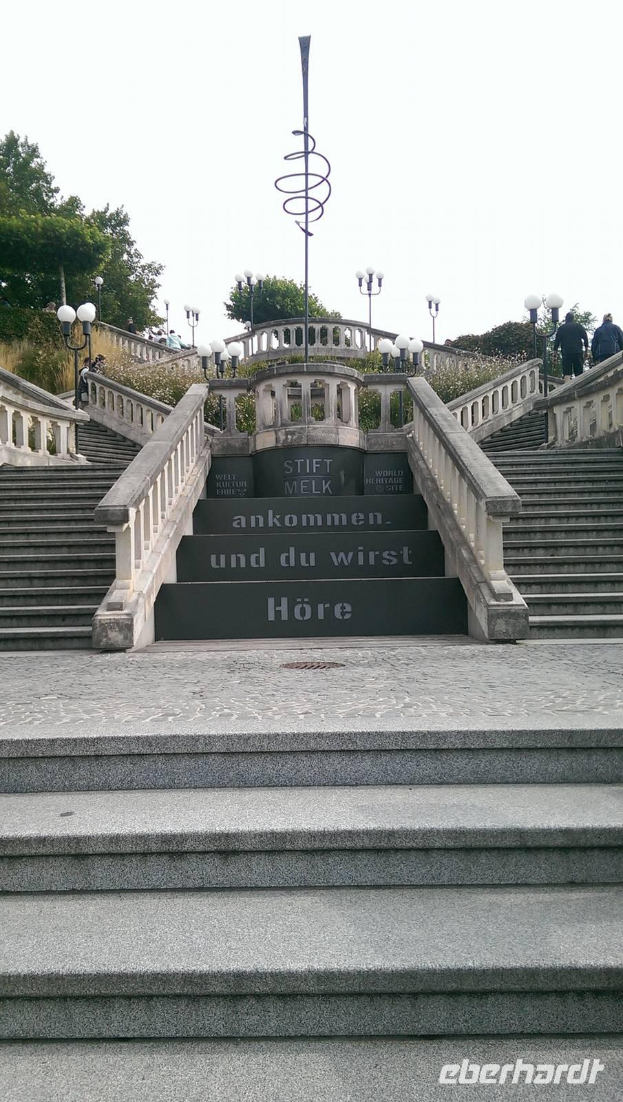 Wir fahren weiter nach Melk. Imposant erhebt sich der Stift über die Stadt. Wir gehen in den Stift hinein und dürfen den Klängen der Orgel lauschen. Zufällig fängt nämlich gerade ein Gottesdienst an. Wer möchte kann sich den Klostergarten anschauen oder einen Spaziergang in die anliegende Stadt machen. Wir kehren zum Schiff zurück. Am Abend erwartet uns das „Kapitänsdinner". Hier spricht der Kapitän zu uns und verabschiedet sich und die gesamte Crew von uns. Höhepunkt des Dinners ist das „Alaska-Eis", welches von den Kellnern hineingetragen wird und von Wunderkerzen geschmückt ist. Im Anschluss lassen viele den Abend in der Bar ausklingen und genießen den letzten Tag auf dem Schiff.