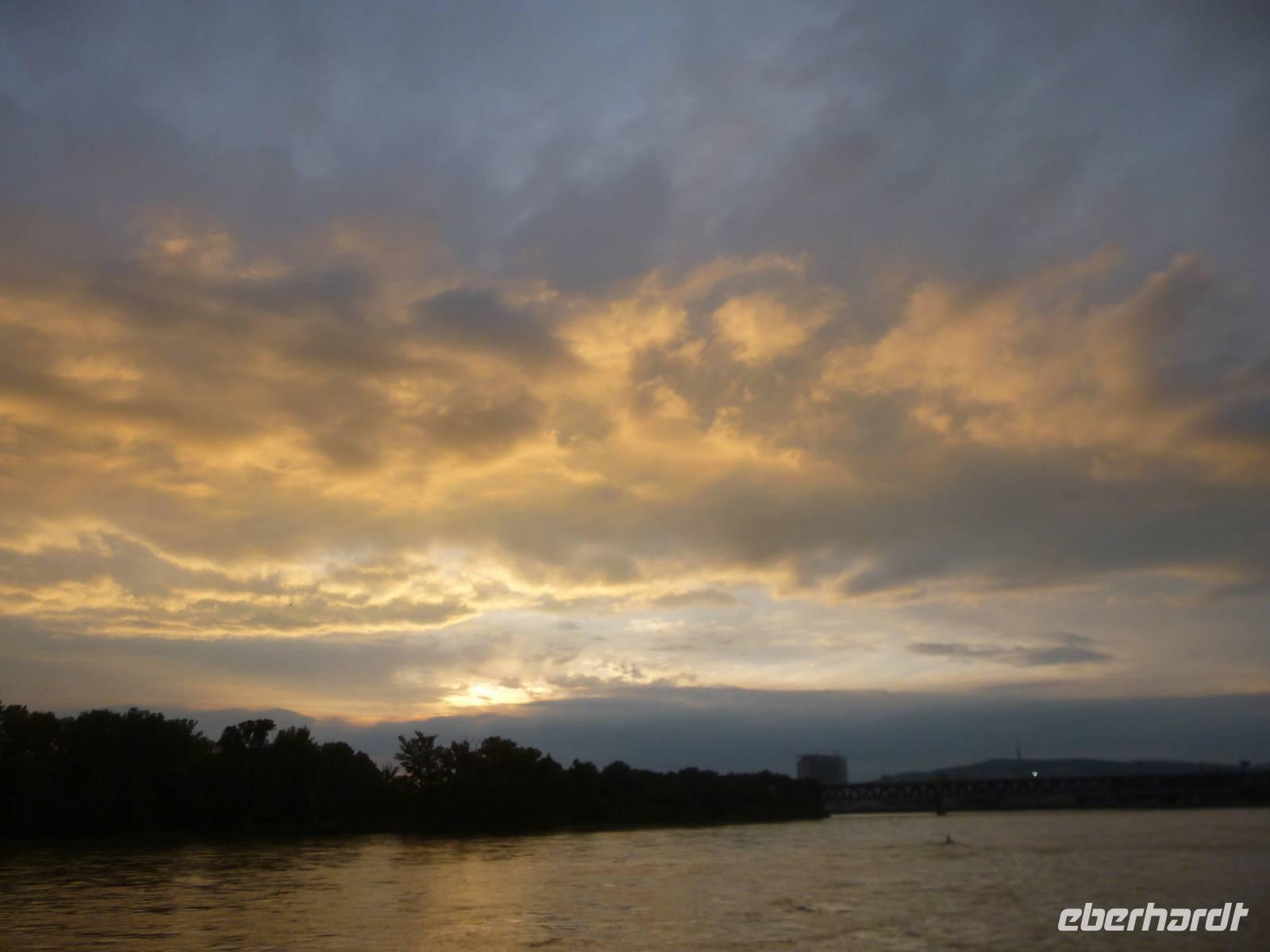 Nach dem Frühstück erholten wir uns auf den Decks der Rossini. Das Wetter war auch an diesem Tag grau und regnerisch, so dass wir die Landschaften rechts und links der Donau nicht so recht vom Sonnendeck aus genießen konnten. Am Vormittag fuhren wir an Wien vorbei. Vom Schiff aus bekamen wir einen ersten Eindruck von der Stadt und freuten uns, diese bald zu erkunden.