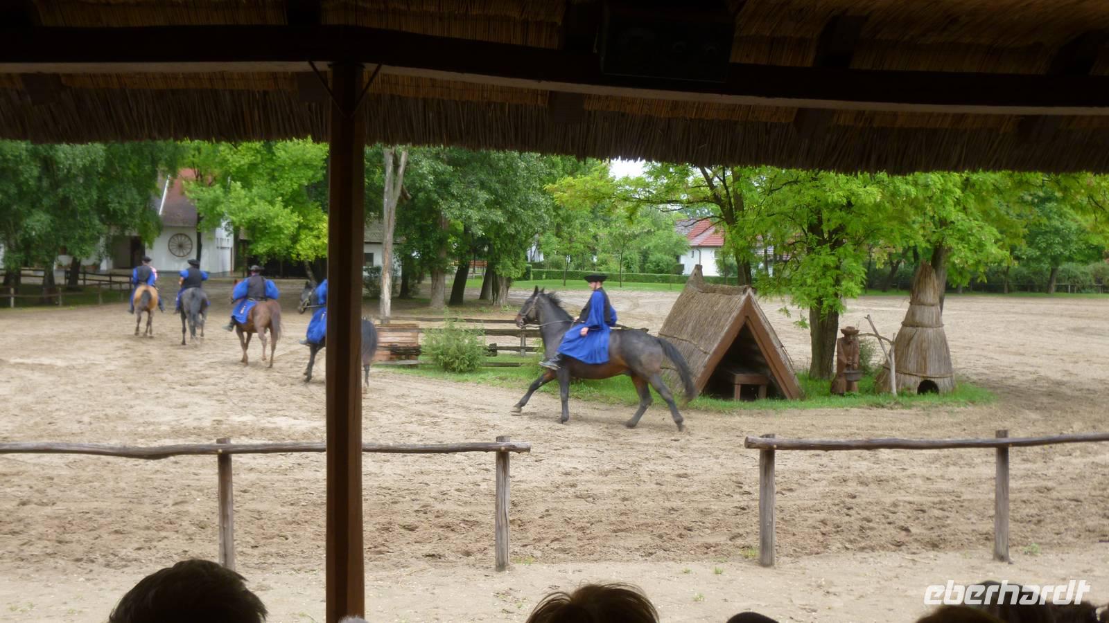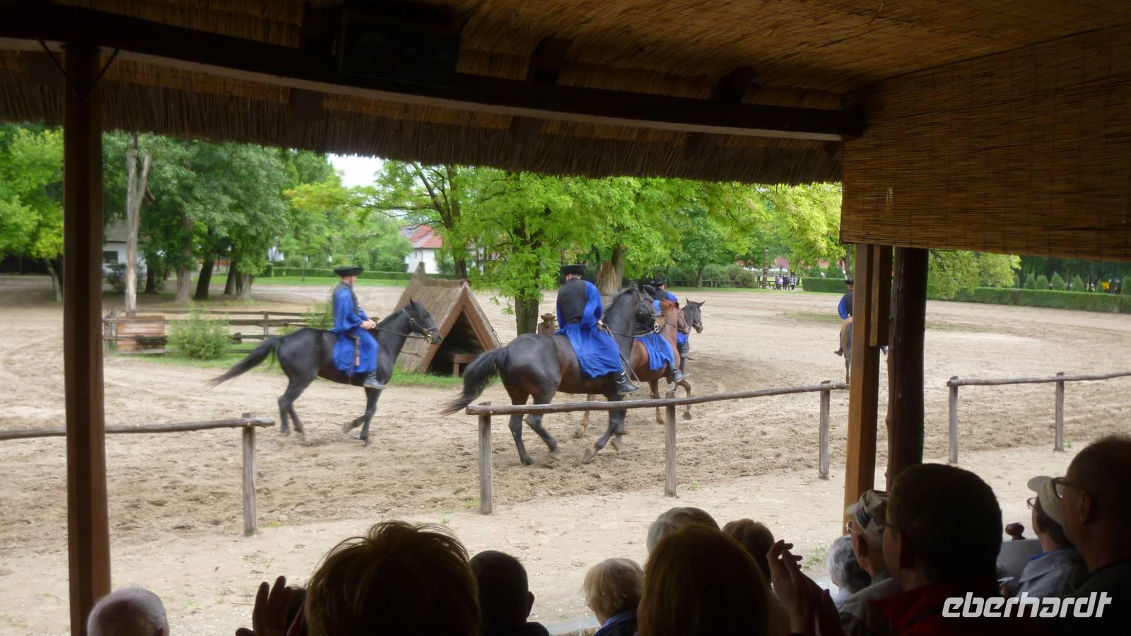 Der Ausflug in die Puszta führte durch den Stadtteil Pest in das ca. 80 km entfernte Kecskemet. Leider war auch dieser Ausflug vom Regenwetter begleitet, so dass wir den Ort mit einer kleinen Ortsrundfahrt im Bus kennenlernten. Weiter fuhren wir in eine Csarda, in welcher wir herzlich mit Schnaps und Salzgebäck begrüßt wurden. Interessant war eine Führung durch die Stallungen mit den wunderschönen Pferden und Fohlen. Die Reiter beeindruckten uns mit einer faszinierenden Vorstellung und den Kunststücken, welche sie mit den Pferden einstudierten. Es war ein einmaliges Erlebnis. Mit Musik und Wein genossen wir ausgiebig ein üppiges und sehr schmackhaftes Hirtenessen. Nun auch endlich von der Sonne begleitet, fuhren wir zurück zum Schiff.