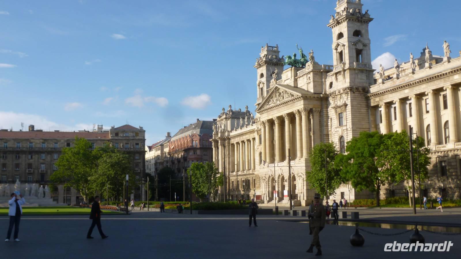 Nach dem Mittagessen standen die Busse zur Stadtrundfahrt bereit. Unsere Stadtführer erklärten uns die imposanten Bauwerke der Stadt Budapest. Auf dem Heldenplatz ist die hohe Säule mit dem Erzengel Gabriel schon von weitem sichtbar. Halbkreisförmig unter Säulen, stehen die Statuen historischer Persönlichkeiten. Beeindruckt fuhren wir weiter.