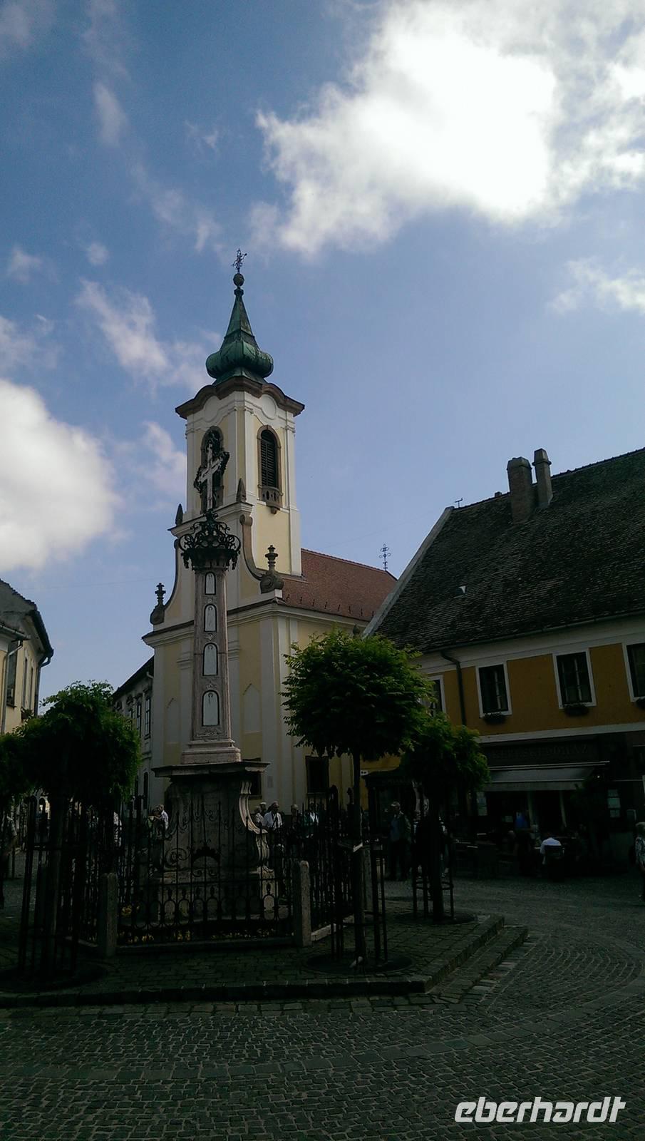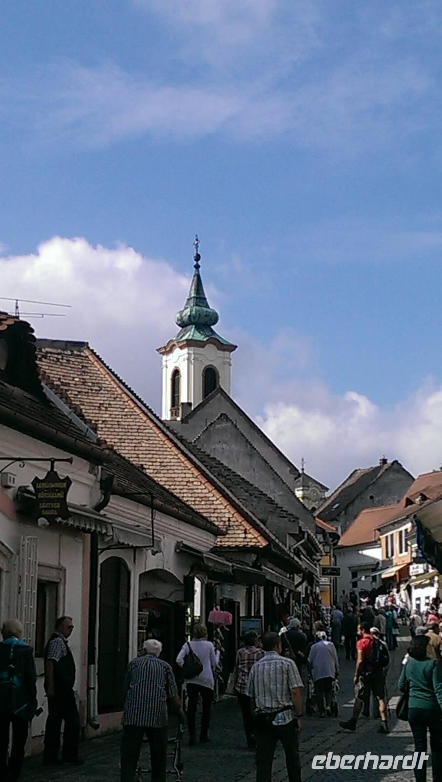 Nach dem Frühstück warteten schon unsere Ausflugsbusse auf uns. Auf der Fahrt nach Szentendre erzählte uns die Stadtführerin über die Lebensweisen der Ungarn und über die beeindruckende Natur des Donauknies. Das Künstlerstädtchen Szentendre besitzt romantische Gassen mit barocken Häusern, Geschäfte, Cafés und sieben Kirchen. Nach einem Spaziergang wurden so einige Andenken und Typisch ungarisches erworben. Zurück in Esztergom, beeindruckte uns die Basilika, Ungarns größte Kirche. Da es Pfingstsonntag war, gab es viele Andachten. Ergreifend bestaunten wir diesen wunderschönen Bau mit der riesigen Kuppel.