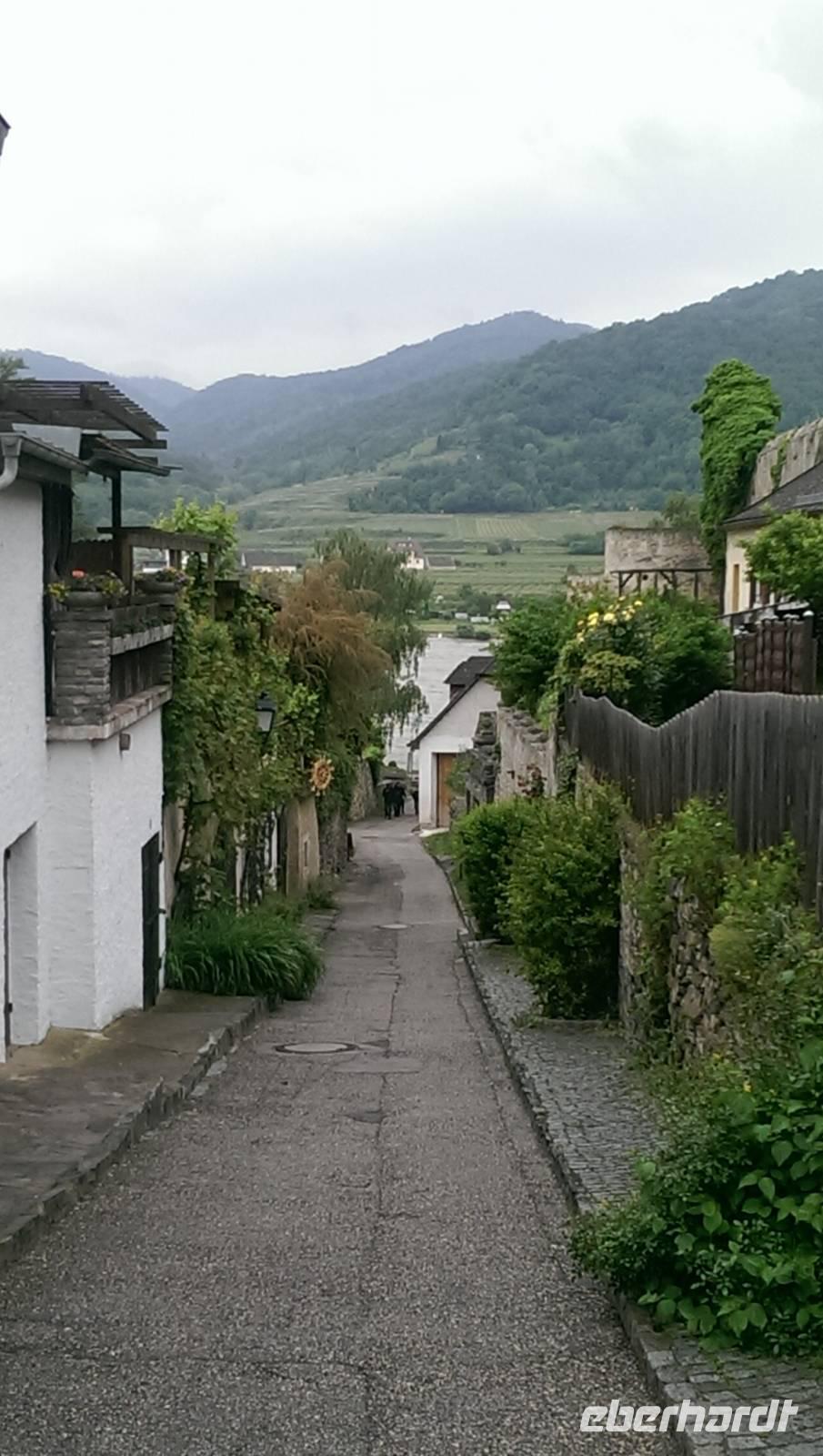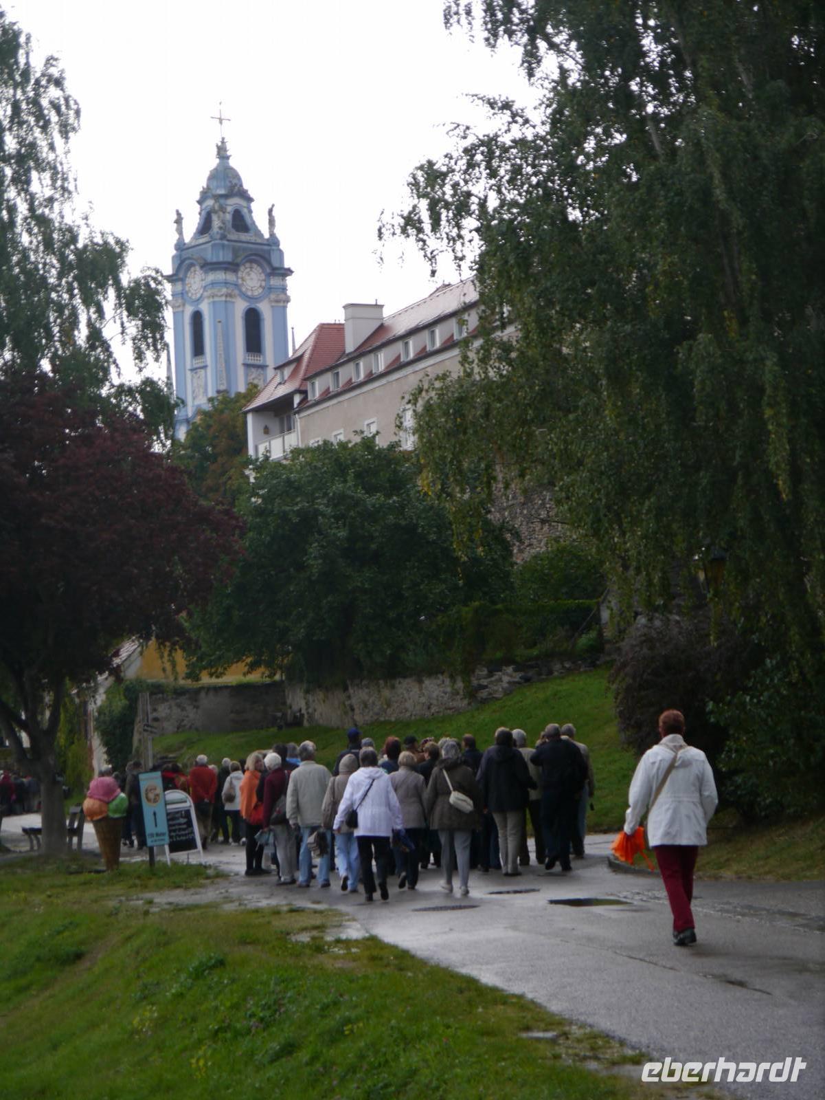 Vor dem Frühstück legte die „Rossini" in Dürnstein an. Das Wetter gestaltete sich nach zwei schönen und trockenen Tagen wieder regnerisch und grau.