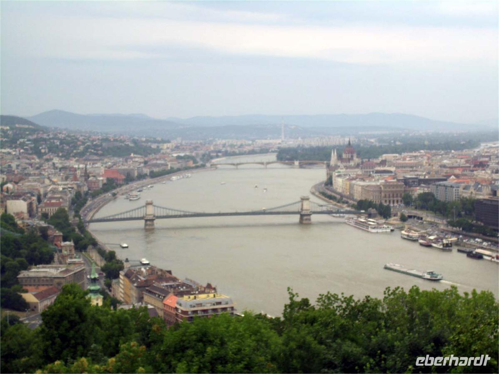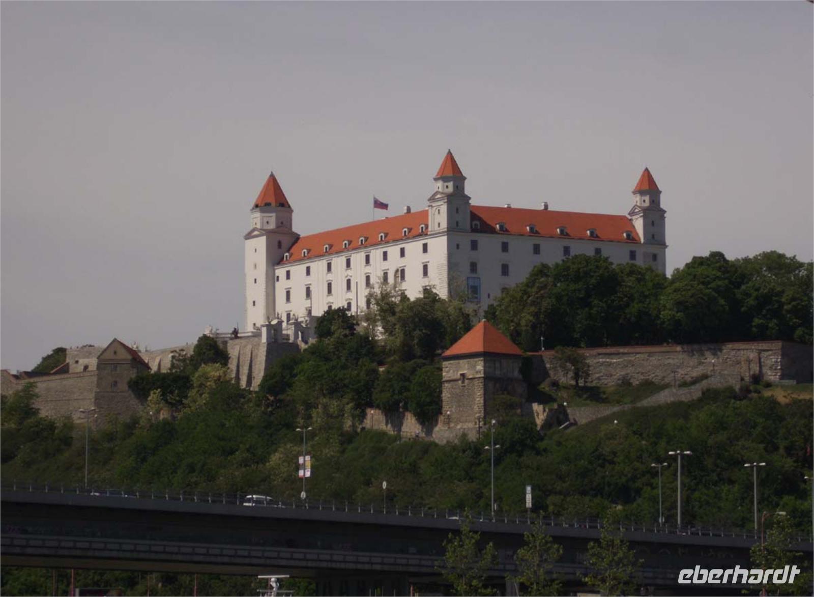 Kurz nach dem Frühstück passieren wir Wien und erreichen am frühen Nachmittag die slowakische Hauptstadt Bratislava, ehemals auch Pressburg genannt. Schon von weitem grüßt uns die mächtige Burg über der Stadt. Diese ist auch unser erstes Ziel auf der folgenden Rundfahrt. Einen herrlichen Blick hat man von hier über die Stadt und ins nahe Österreich. Nun geht es per pedes bei einer Führung durch barocke Gassen mit schön restaurierten Adelspalästen, am Martinsdom vorbei bis auf den Marktplatz mit Häusern von der Gotik bis zum Jugendstil. Viel erfahren wir über die wechselvolle Geschichte und die verschiedenen Machthaber über diesen Landstrich. Es sind gerade Abiturfeiern und die Stadt platzt von Gruppen feiernder Schüler aus allen Nähten. Kneipen und Cafes sind voll und wir gewinnen den Eindruck einer sehr jugendlichen Stadt. Nach ein wenig freier Zeit legen wir während des Abendessens ab und begeben uns in Richtung Budapest.