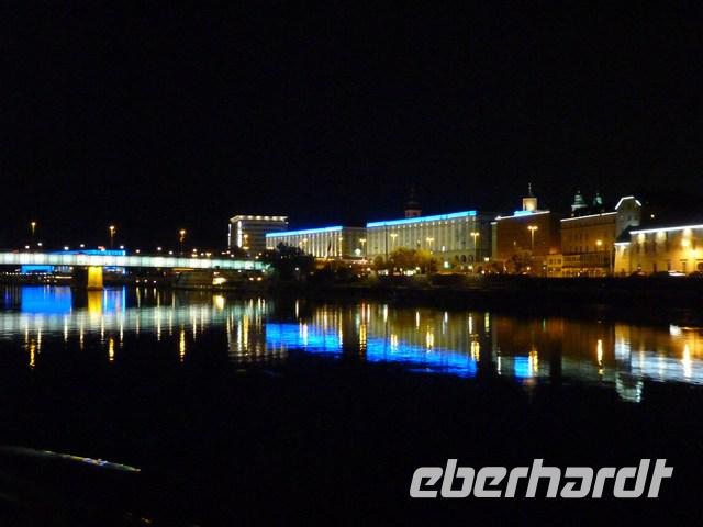 Das Kunstmuseum und das Ars Electonica Center der Stadt verblüffen mit einem Wechselspiel an Farben, welche sich wunderschön in der Donau widerspiegelten.