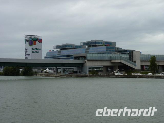 Kurz vor Mittag fuhren wir an Wien vorbei. Beliebteste Fotomotive waren der Millenium-Tower, das höchste Bürogebäude Wiens sowie die UNO-City, die moderne Seite der Stadt. Danach gab unser Bordreiseleiter Josef Hergott einen interessanten Vortrag „Donau und die Donauländer", den sich einige interessiert anhörten.