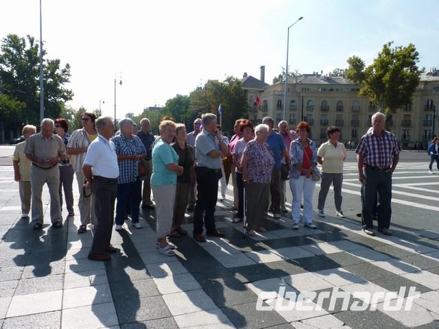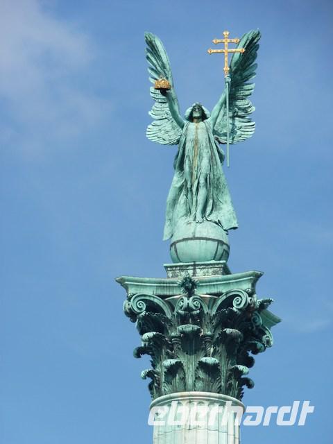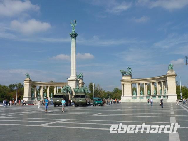 Unsere Stadtführer erklärten uns die Bauwerke der Stadt Budapest. Auf dem Heldenplatz ist die hohe Säule mit dem Erzengel Gabriel schon von weitem sichtbar.