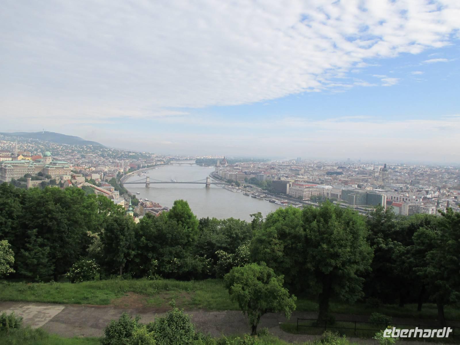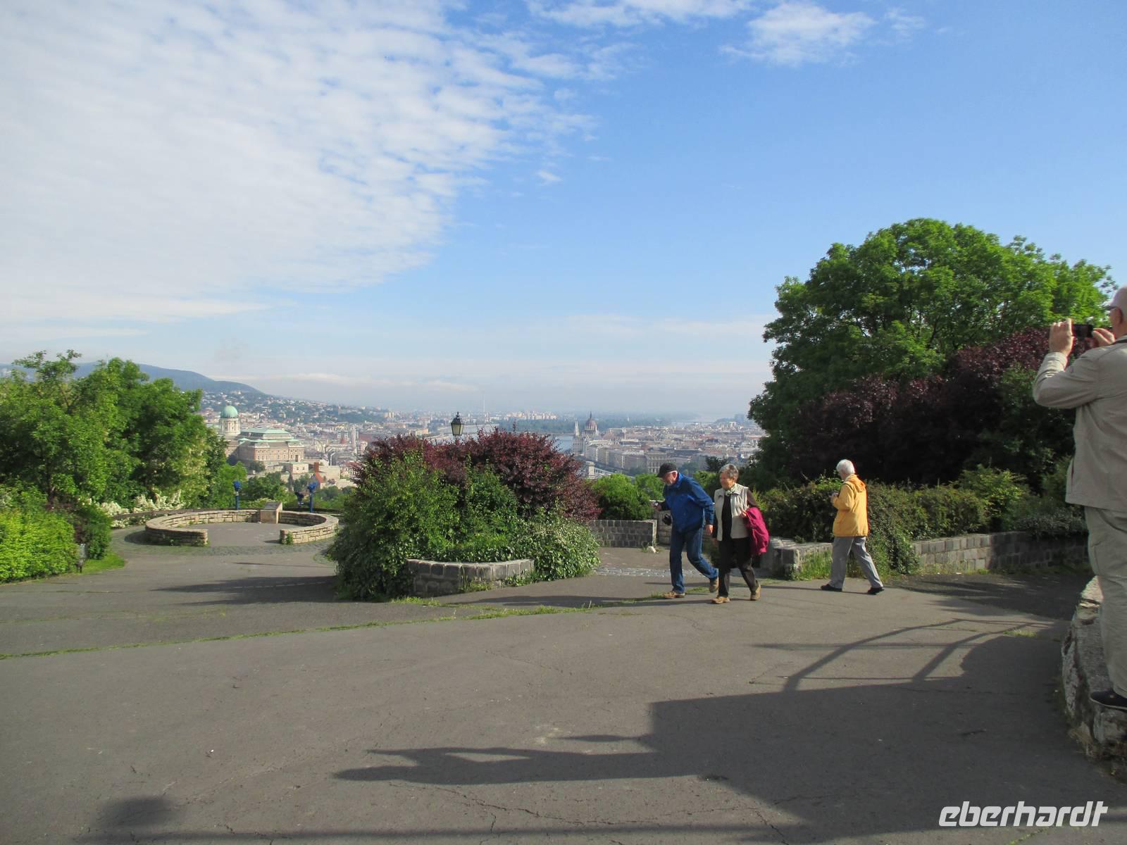 Bereits um 7:45 Uhr begann die Stadtrundfahrt durch Budapest. Unser Schiff legte danach ab und fuhr parallel nach Esztergom zurück, um Zeit zu sparen. Die örtlichen Reiseleiter gaben Informationen zur Stadtgeschichte, zu den Besonderheiten in Buda und Pest, den wichtigsten Gebäuden, Brücken und Plätzen. Der erste Ausstieg erfolgte auf dem Heldenplatz. Hier war anlässlich der Weltausstellung ein beeindruckendes architektonisches Ensemble mit Denkmälern, Gebäuden für Kunstausstellungen und Wandelgängen entstanden. Danach fuhren wir auf den Gellertberg. Von oben hat man den schönsten Blick auf Budapest. Auf dem Berg befinden sich die Zitadelle und das Freiheitsdenkmal. Anschließend ging die Fahrt auf den Burgberg. Das Wetter war besser geworden. Auf dem Spaziergang zur Matthiaskirche und zur Fischer Bastei wurden weitere Erläuterungen gegeben, hier gab es auch Gelegenheit für individuelle Erkundungen oder eine kleine Kaffeepause. Der für den Nachmittag geplante Ausflug nach Gödöllö, dem Lieblingsschloss der Kaiserin Sissi, musste wegen der Programmänderung infolge der Hochwassersituation leider abgesagt werden.
