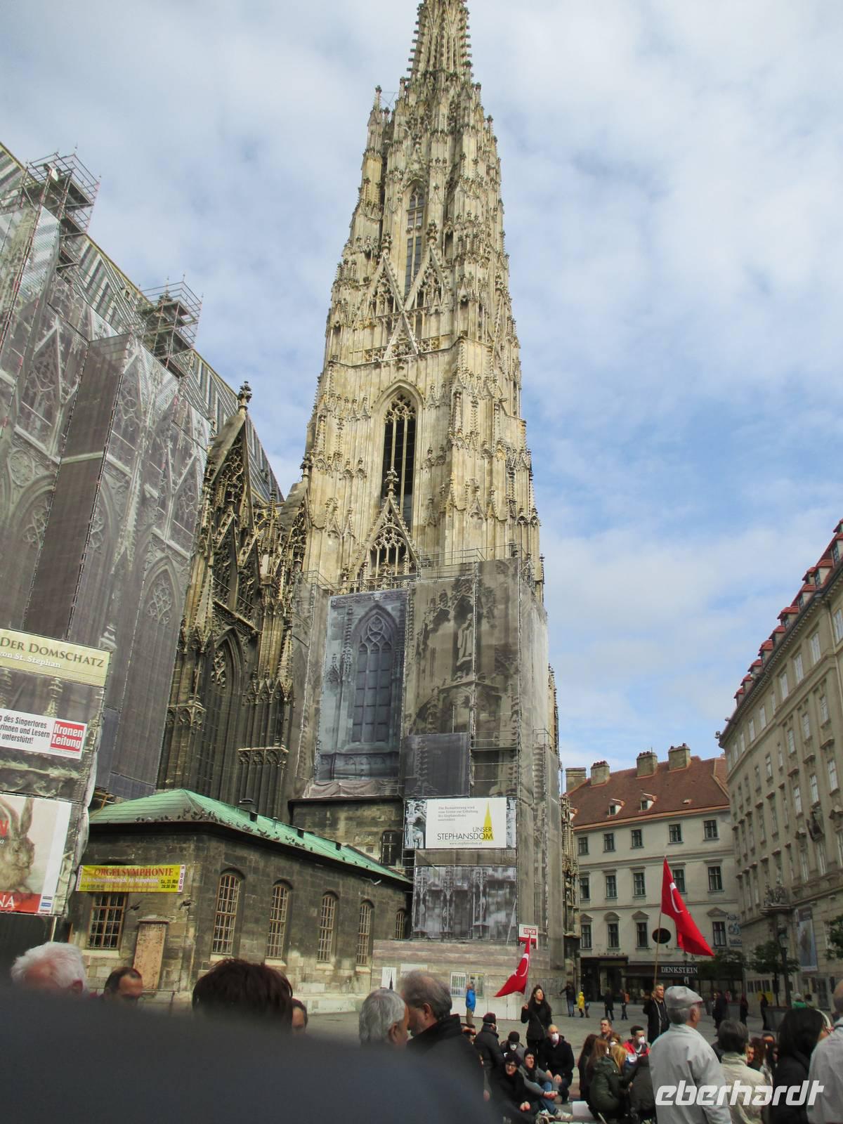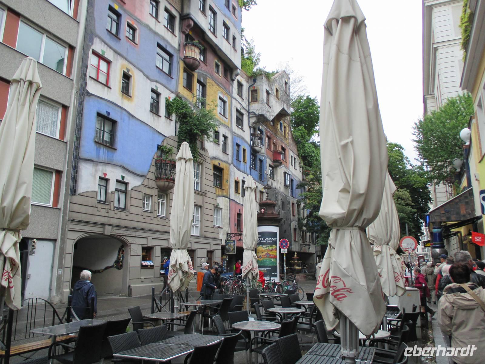 Nach dem Mittagessen standen die Busse für die Stadtrundfahrt durch Wien bereit. Erste Station war das Hundertwasserhaus, ein besonders farbig gestaltetes Wohnhaus des sozialen Wohnungsbaus. Gegenüber befindet sich eine im Stil des Künstlers Hundertwasser gestaltete kleine Einkaufspassage, das „Village". Die weitere Fahrt führte durch die prächtigen Straßen mit ihren beeindruckenden historischen Gebäuden zur Albertina, hier begann der Spaziergang durch die historische Innenstadt. Sie ist weitgehend autofrei, sodass die Hofburg und das Wahrzeichen Wiens, der Stephansdom, nur zu Fuß zu erreichen sind. Am Stephansplatz gab es Gelegenheit für einen kleinen Einkauf oder eine Kaffeepause, die sogar die Sonne hervorlockte. Auf dem Rückweg zum Schiff konnten wir noch die neuen Stadtteile Wiens mit der UNO-City sehen. Der vorgesehene Ausflug in das Schloss und den Park Schönbrunn musste leider entfallen.