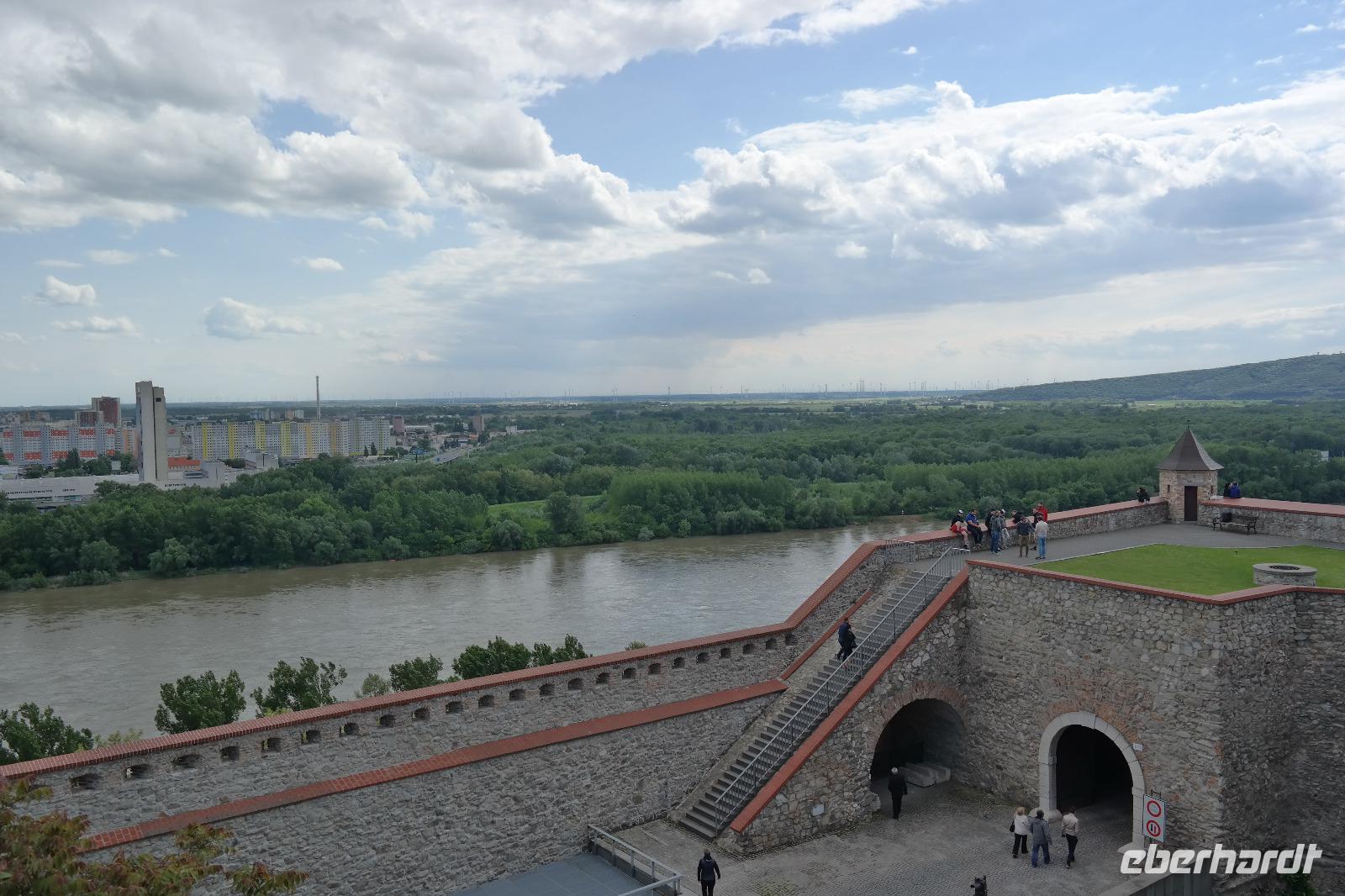 Nach einem üppigen Frühstück haben wir auch schon die letzte Schleuse vor Wien erreicht: Greifenstein.