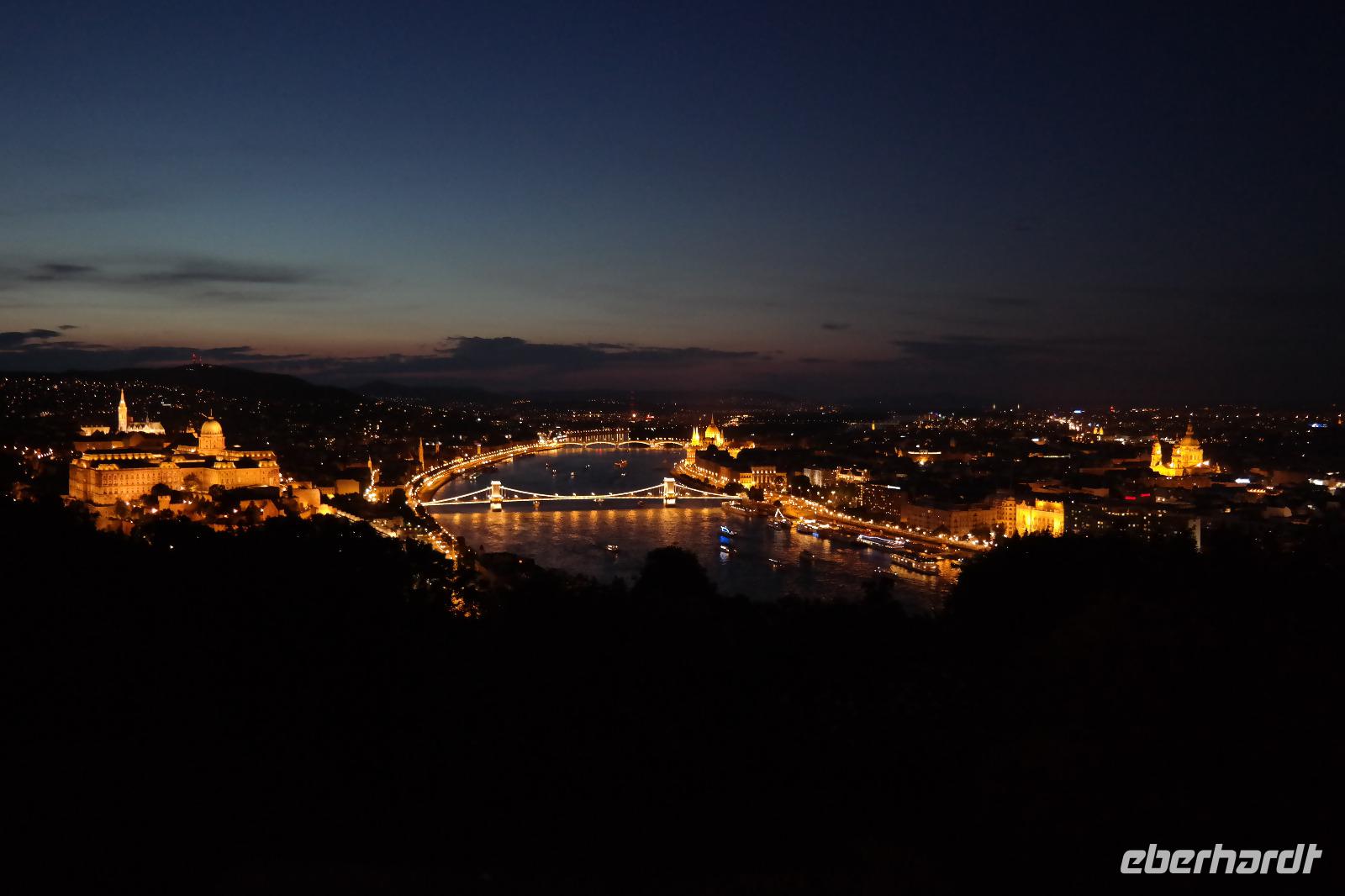 Nach dem Abendessen trafen sich die meisten von uns noch einmal zur Lichterfahrt. Über die Margaretenbrücke ging es erst einmal auf die Buda-Seite. Man wusste wirklich nicht, wo man als erstes hinschauen soll, da alles so schön beleuchtet war. Den schönsten Blick auf die beleuchtete Stadt hatte man jedoch vom Gellertberg aus. Von der Aussichtsplattform konnte man das Lichtermeer genießen.