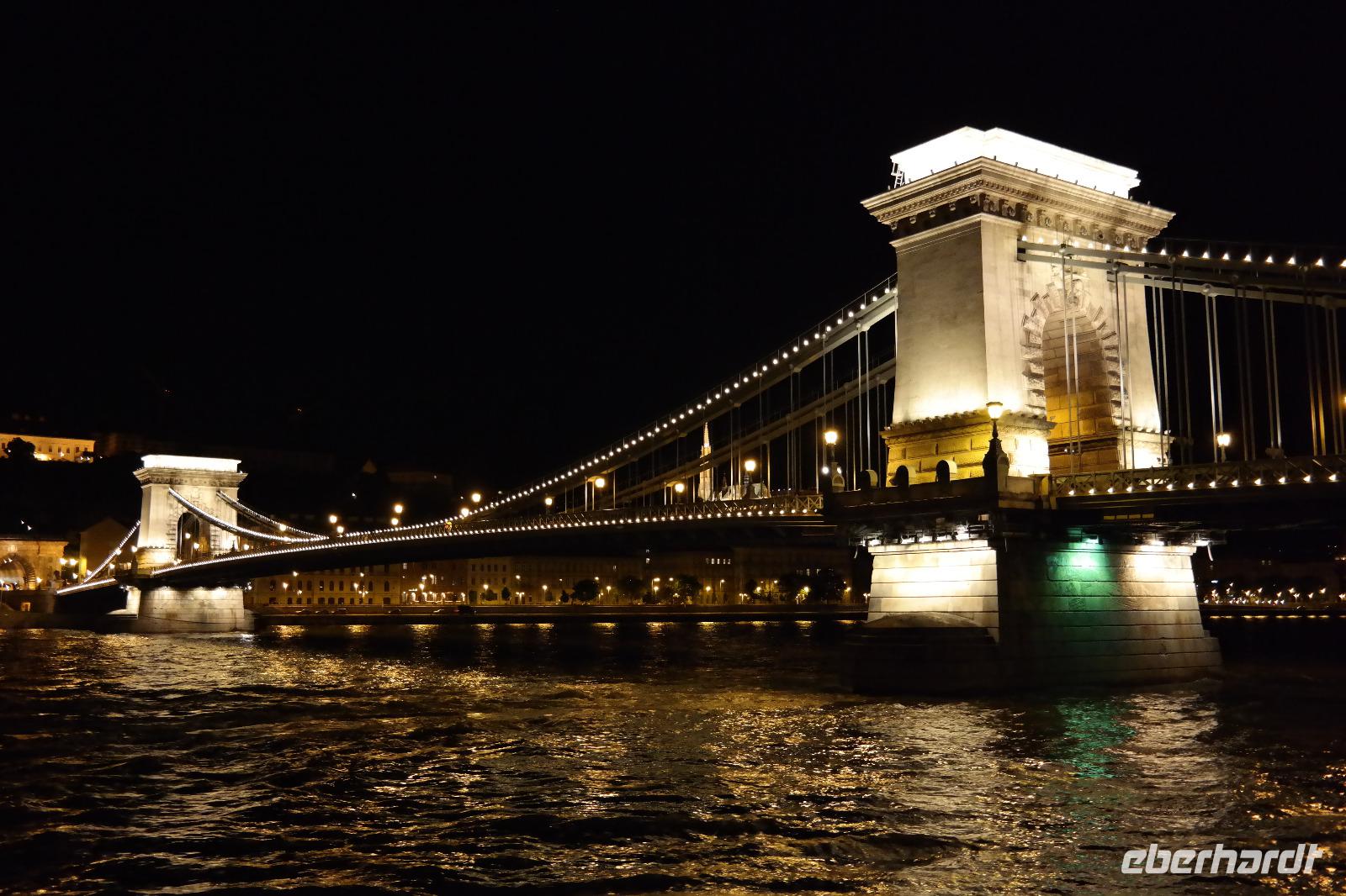 Gegen 24:00 Uhr legte das Schiff ab und wir konnten einen letzten Blick auf die beleuchtete Kettenbrücke werfen.
