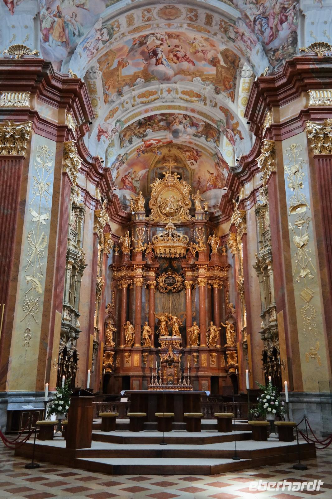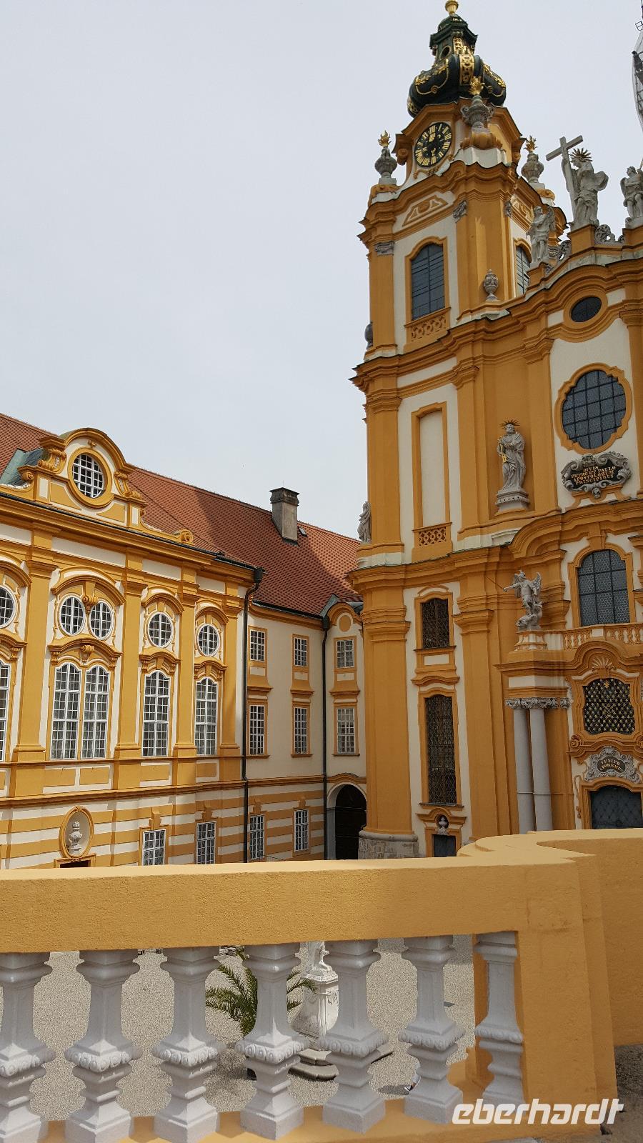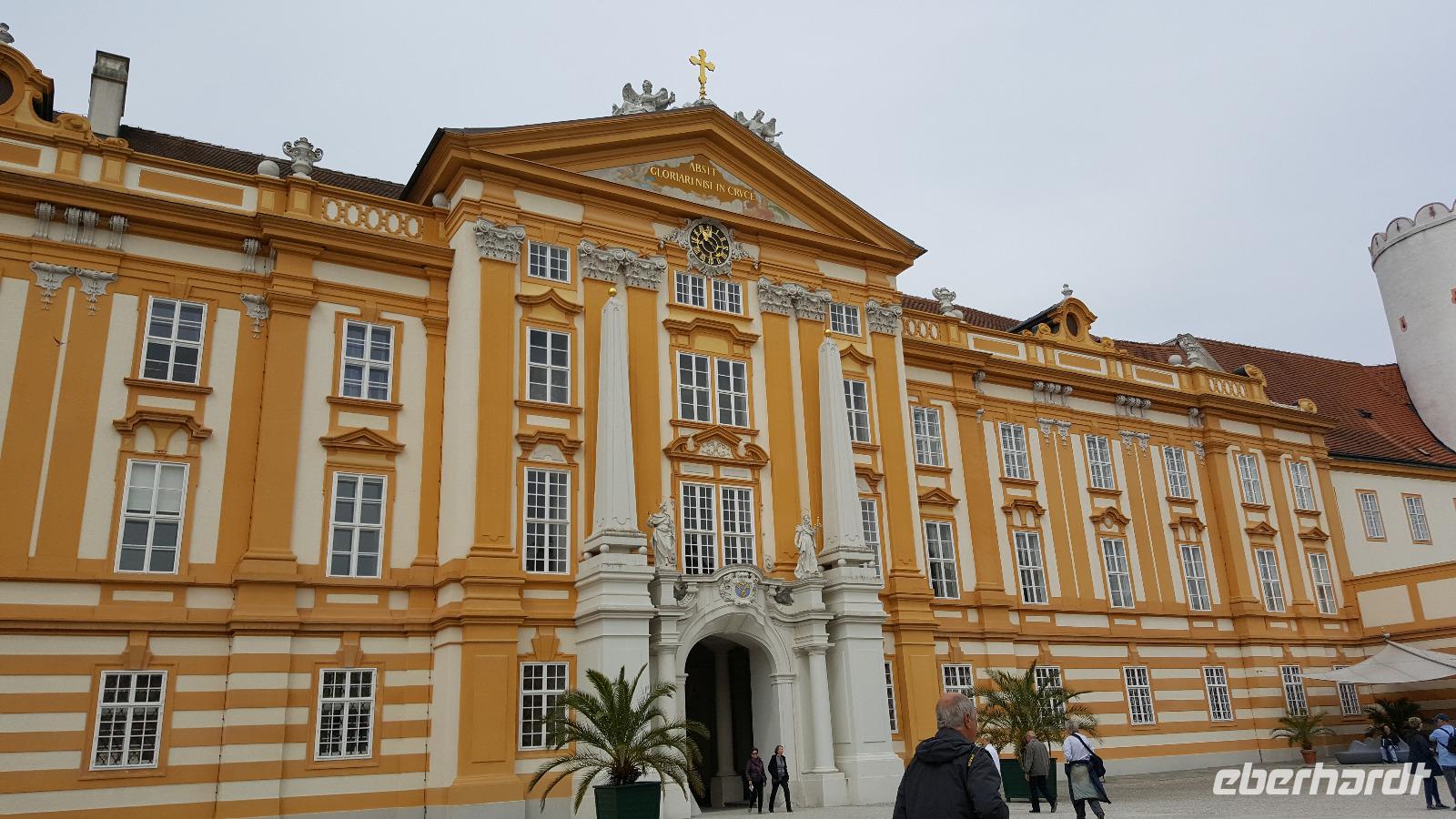Später ging es dann mit dem Bus nach Melk, wo wir das Benediktinerstift von außen besichtigen konnten. Wer wollte, konnte dann mit dem örtlichen Reiseleiter auch durch Melk zurück zum Schiff laufen. Die restlichen Gäste haben noch ein wenig länger den Anblick des Stiftes genossen und sind mit dem Bus wieder zurück gefahren.