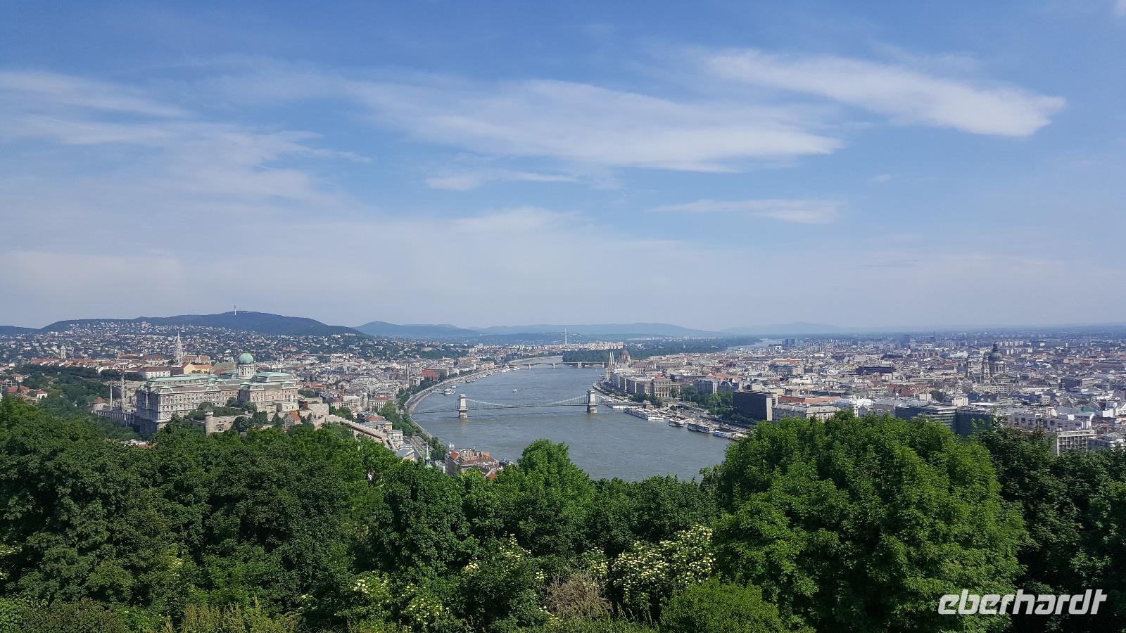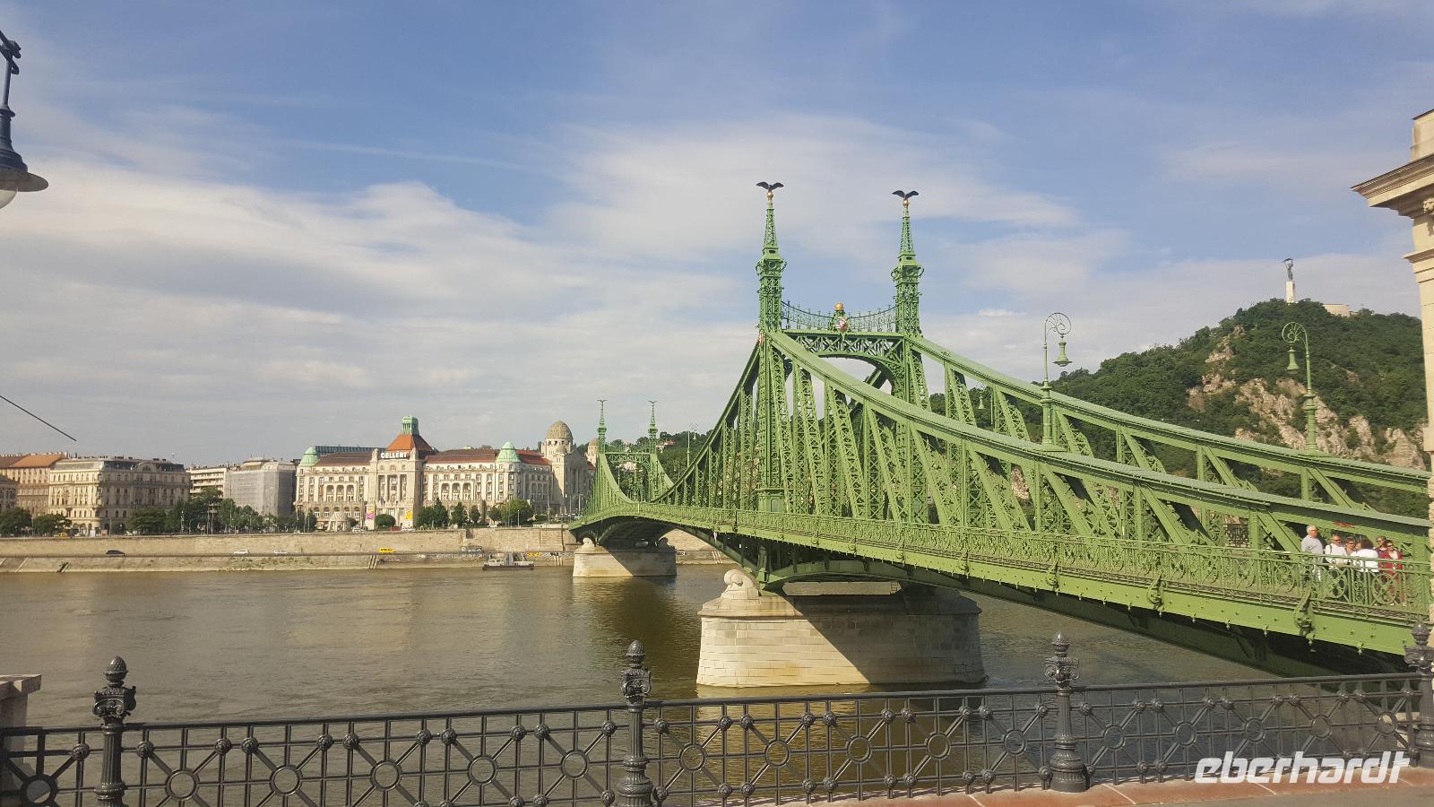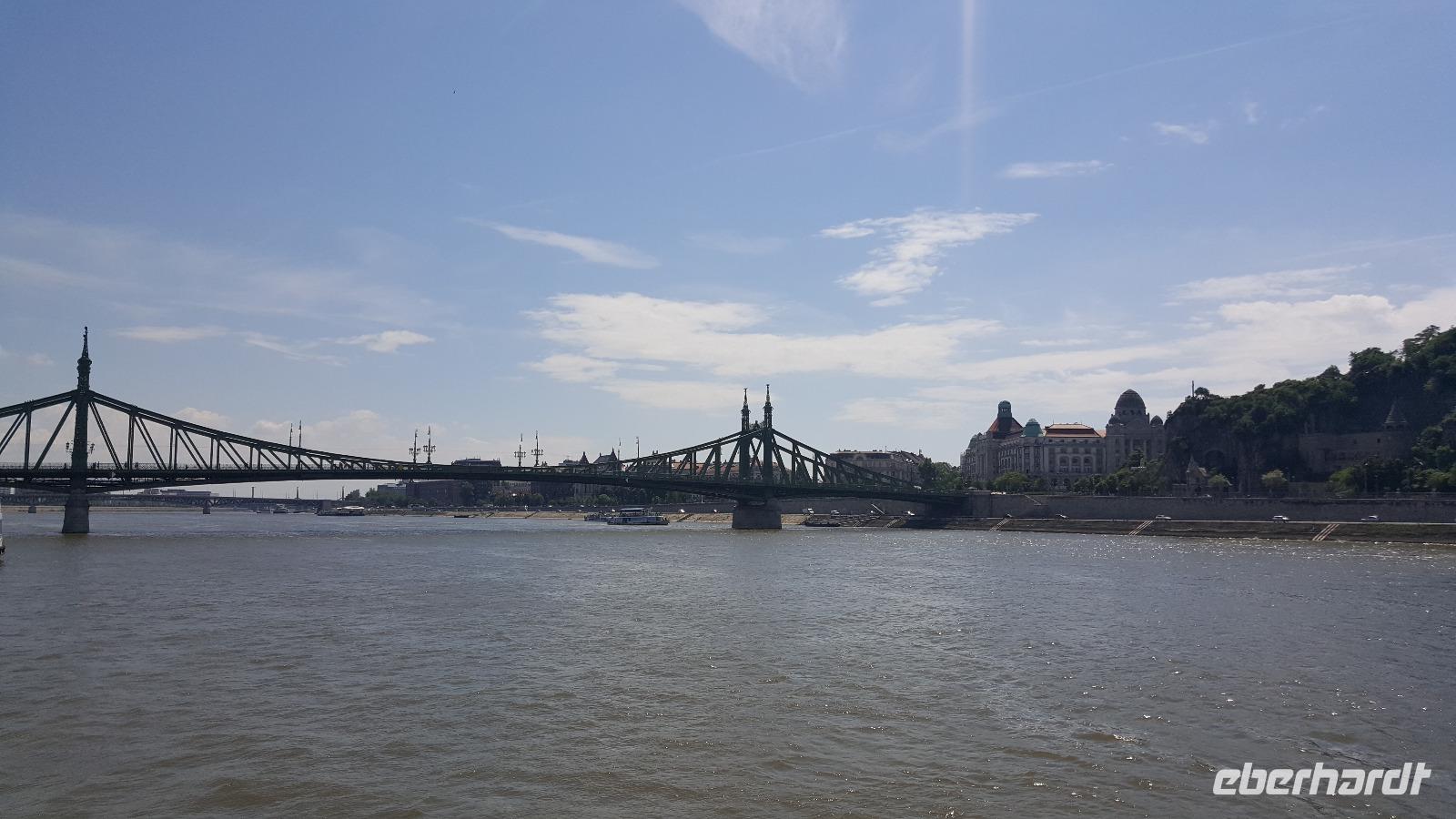 Sie ist ohne Frage ein Juwel auf unserer Fahrt. Wir haben die Anlegestelle an der Freiheitsbrücke und schon vom Schiff aus haben wir einen schönen Blick auf die Stadt.