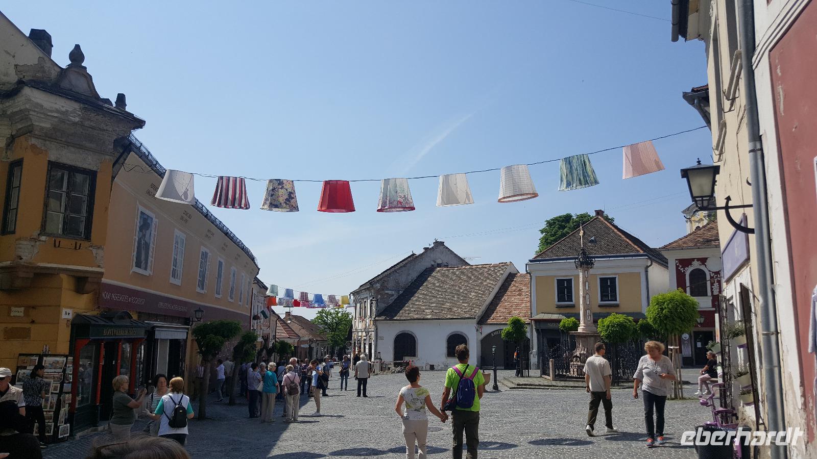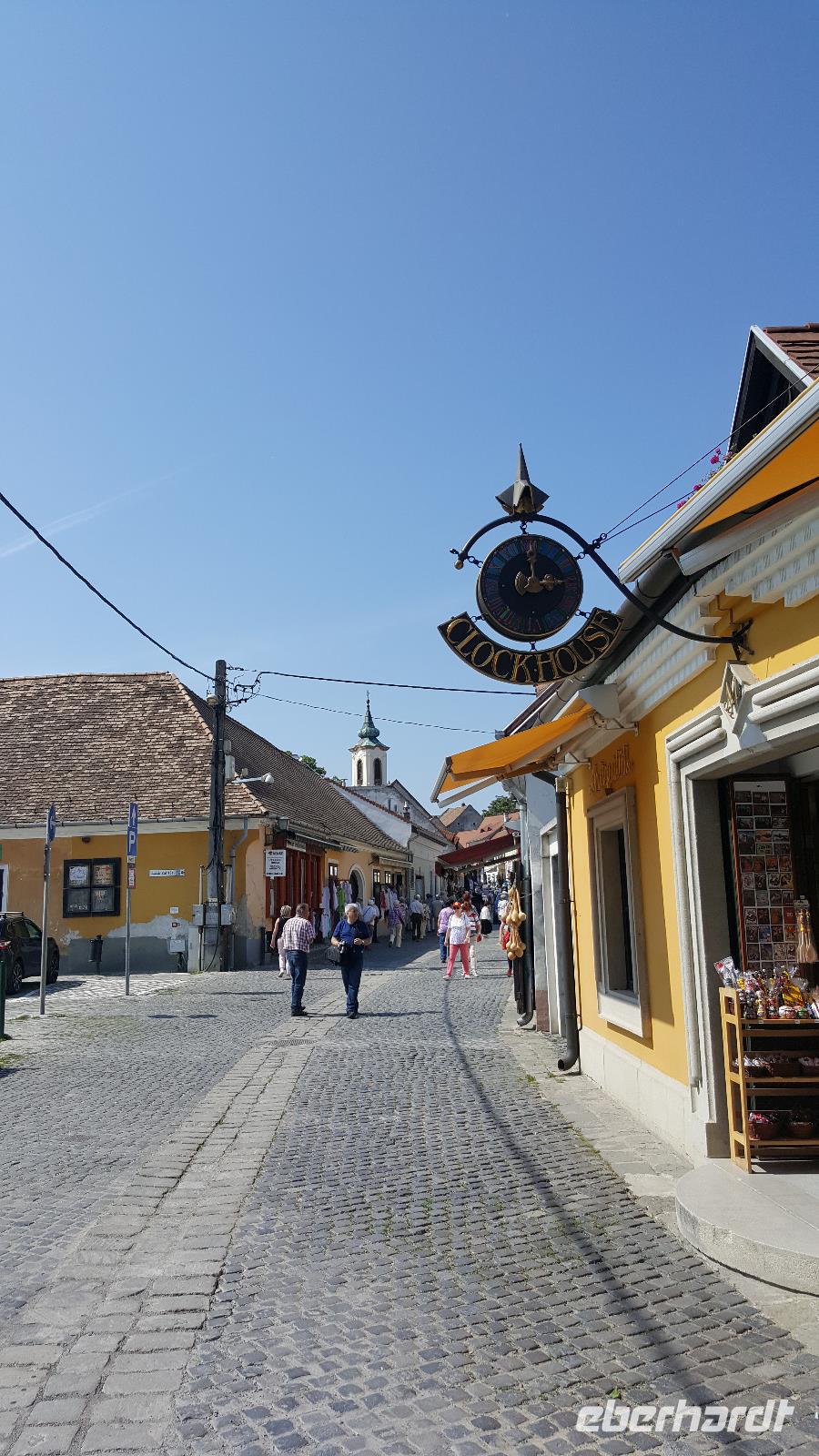 Szentendre - eine Künstlerstadt, die durch ihre Lage an der Donau und der Nähe zu Budapest eines der beliebtesten Ausflugsziele ist. Wir spazieren durch die Straße, die rechts und links von Geschäften gesäumt ist um zum Hauptplatz Fo tér ,zu gelangen. Anschließend bleibt genügend Zeit zum Besuch der Kirchen oder auch endlich die "Mitbringsel" für die zu Hause gebliebenen zu kaufen. Die Auswahl ist groß, typische ungarische Produkte sind gefragt. Dazu gehören natürlich der Paprika, der regionale Wein, Szabó-Marzipan,Karamik und viele bestickte Tücher und vieles mehr. Beeindruckt von diesen Ausflug am Vormittag genießen wir den Nachmittag an Bord.