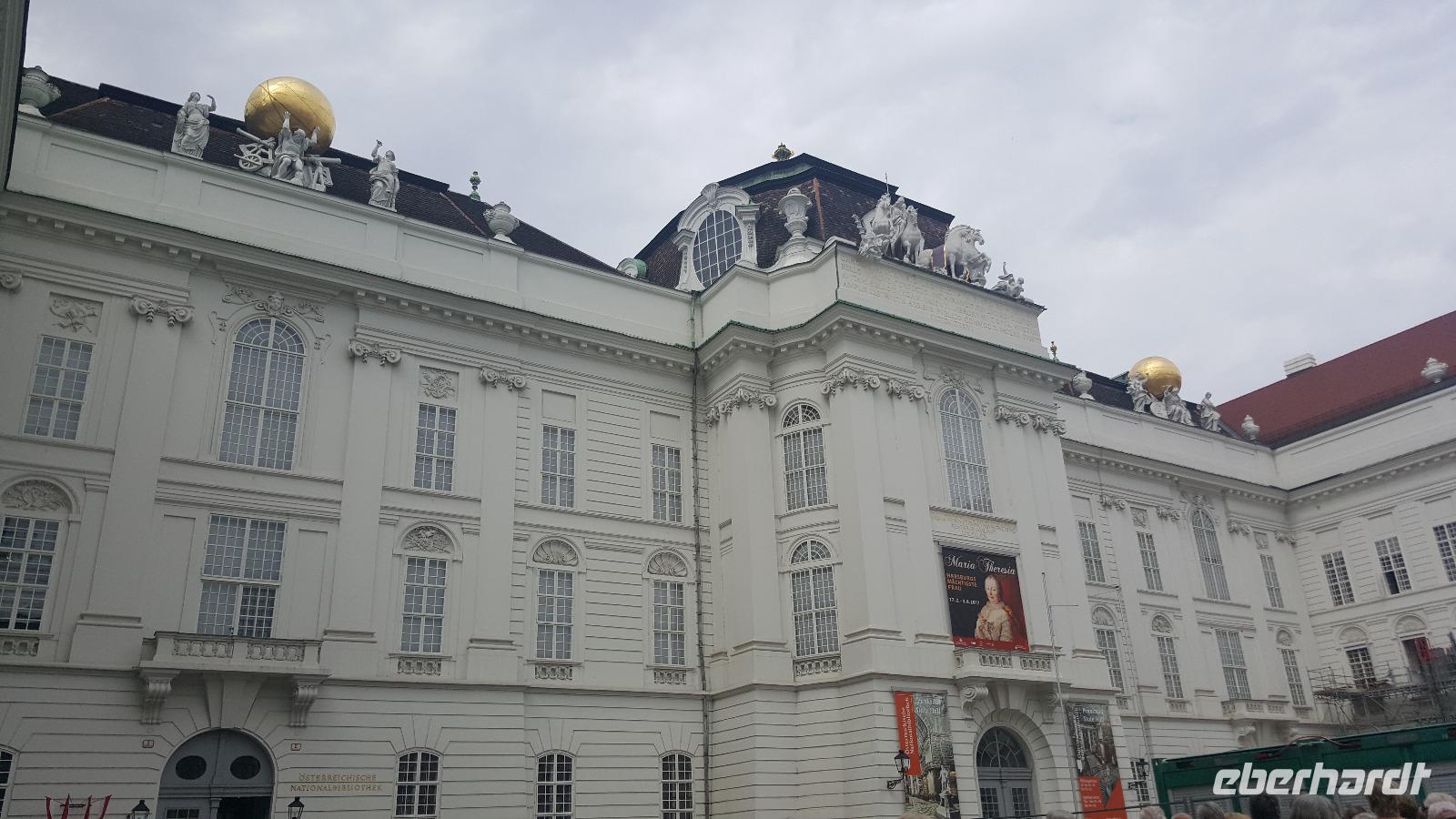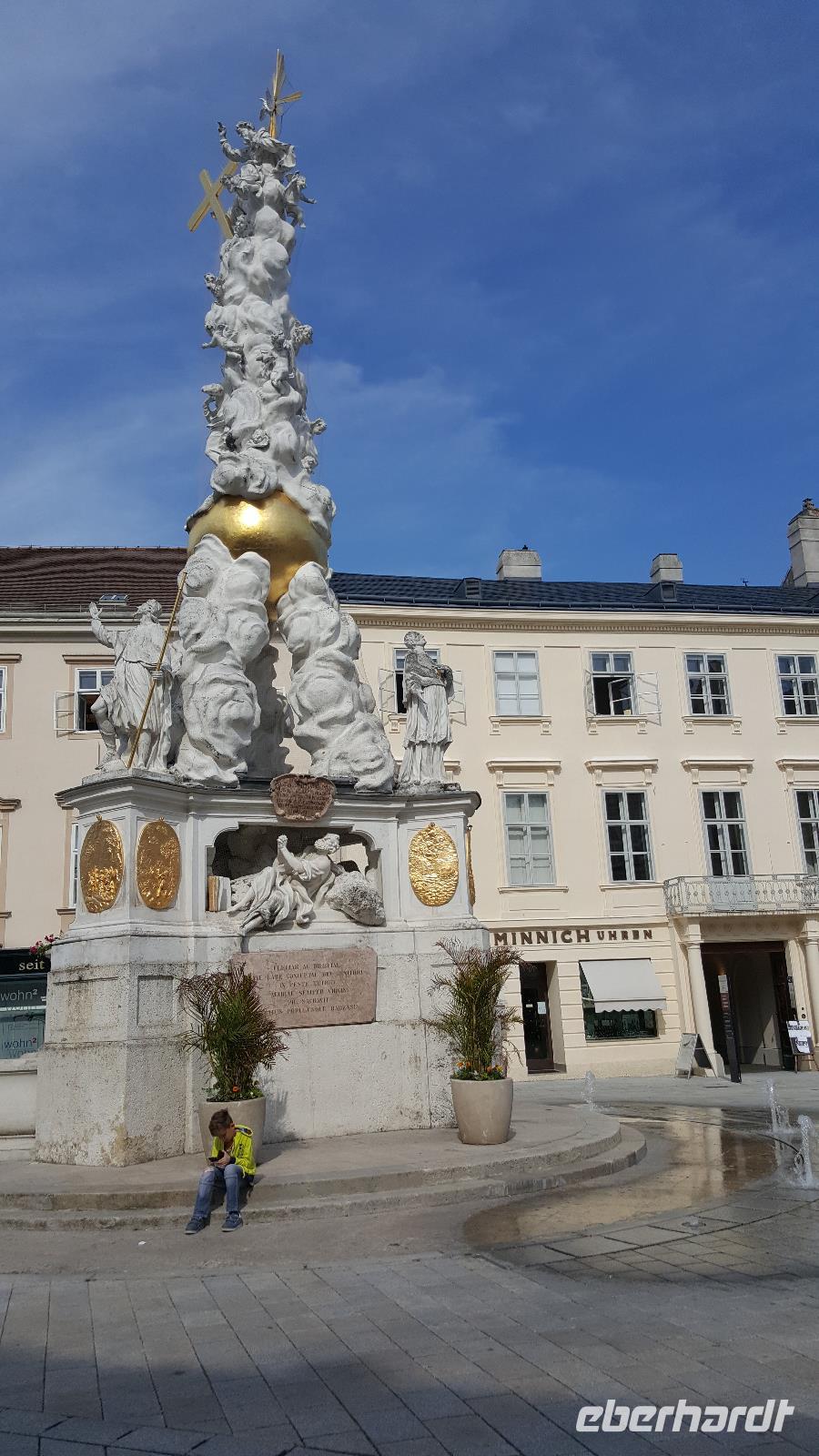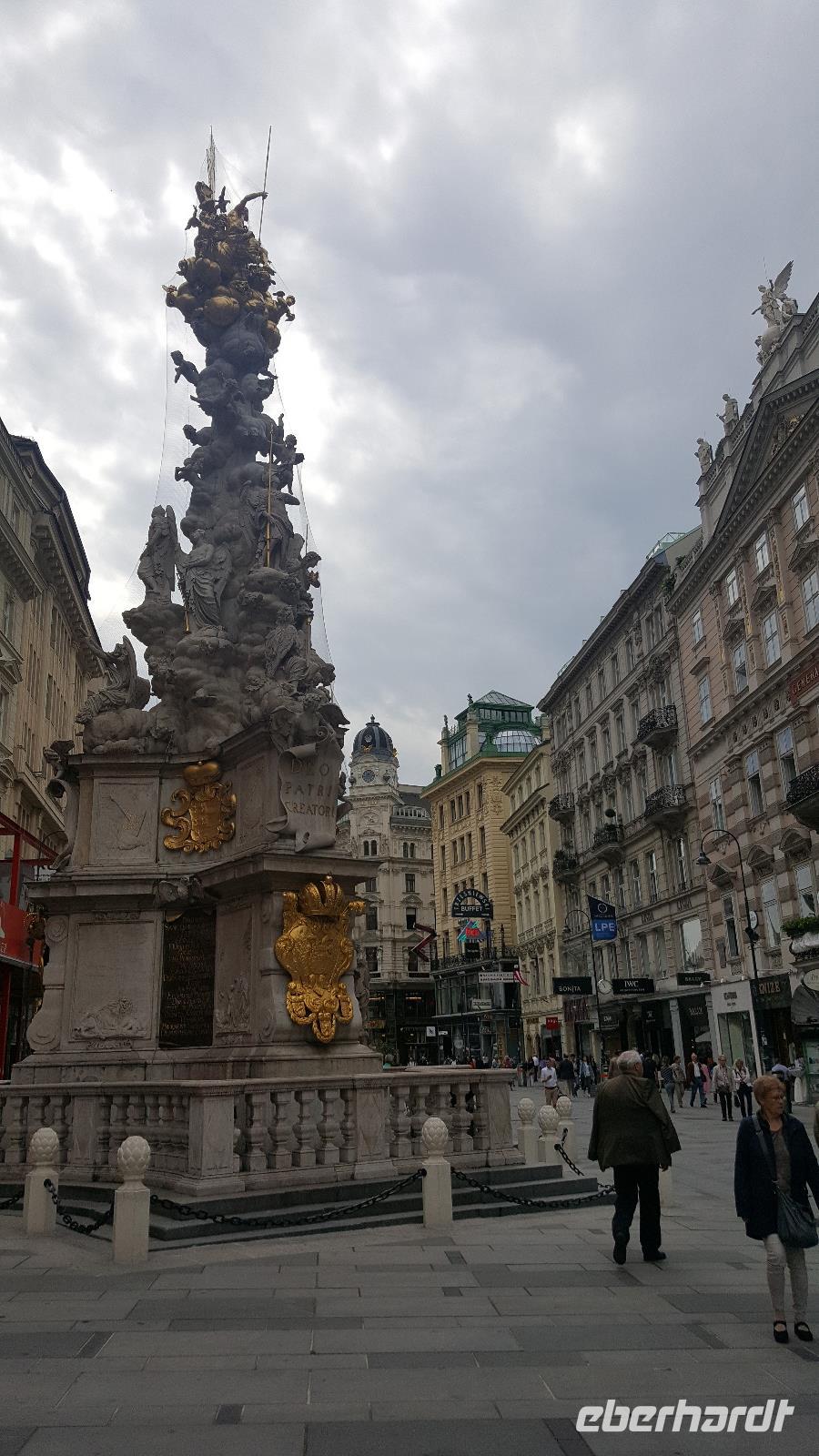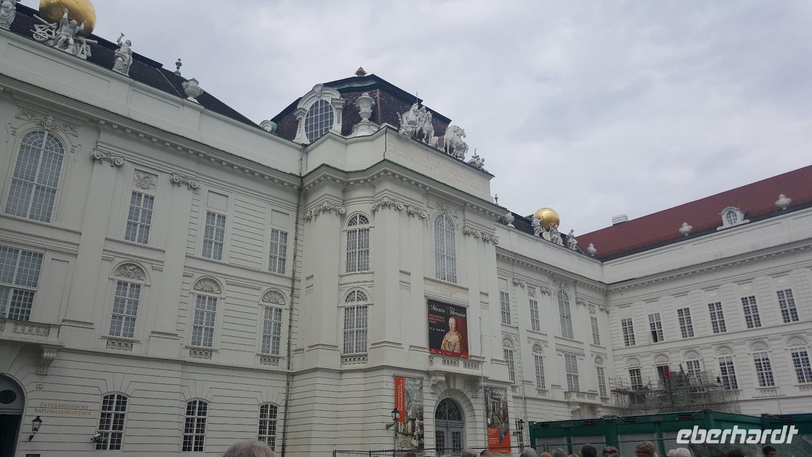 Sehenswert ist für uns nicht nur das Wohnhaus, sondern auch die Hundertwasser Village mit den interessanten Toiletten. Weiter führt uns unsere Rundfahrt vorbei am Prater, der Ringstraße entlang vorbei am Stadtpark, vorbei am Parlament, Rathaus, Burgtheater, dem Kunsthistorischen Museum, dem Schwarzenbergplatz vorbei an der Staatsoper, Kärntnerstraße, Opernring zur Albertina. Hier beginnen wir mit unserem Spaziergang zur Hofburg vorbei an der Augustinerkirche in der die Trauung von Kaiser Franz Joseph I. mit Prinzessin Elisabeth (Sisi) in Bayern am 24. April 1854. stattgefunden hat. Weiter sehen wir die Spanische Hofreitschule, die die einzige Institution der Welt ist, an der die klassische Reitkunst der Hohen Schule von der Renaissance bis heute bewahrt und unverändert gepflegt wird. Weiter spazieren wir entlang dem Graben mit der Pestsäule um dann zum "Steffl" zu kommen, eines der Wahrzeichen der Stadt. Leider haben wir vor dem Stefansdom eine Baustelle und diese Töne überstimmen unsere Stadtführer.