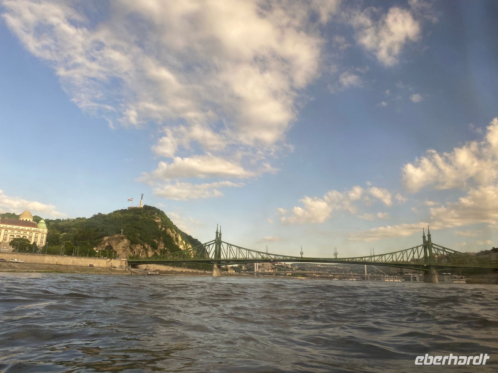 Es bleibt noch etwas Zeit, um Kleidung, Schirme und Haare zu trocknen, dann treffen wir uns alle zum Abendessen. Währenddessen legt die Rossini ab in Richtung Budapest. Für alle technisch Interessierte gib es spät am Abend noch einen Höhepunkt: Wir erreichen die Schleuse Gabcikovo, die größte Schleuse während unserer Reise. 20 Meter wird unser Schiff hier abgesenkt.