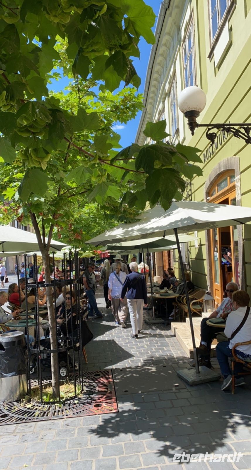 Den Nachmittag gestalten die Gäste individuell. Einige nutzen das schöne Wetter zur Erholung auf dem Sonnendeck, andere spazieren zur Markthalle, um Obst, Salami, Gewürze oder Kunsthandwerk zu kaufen. Außerdem bietet Bordreiseleiter Jozef interessierten Gästen noch einen geführten Rundgang zu den Sehenswürdigkeiten der Innenstadt an.