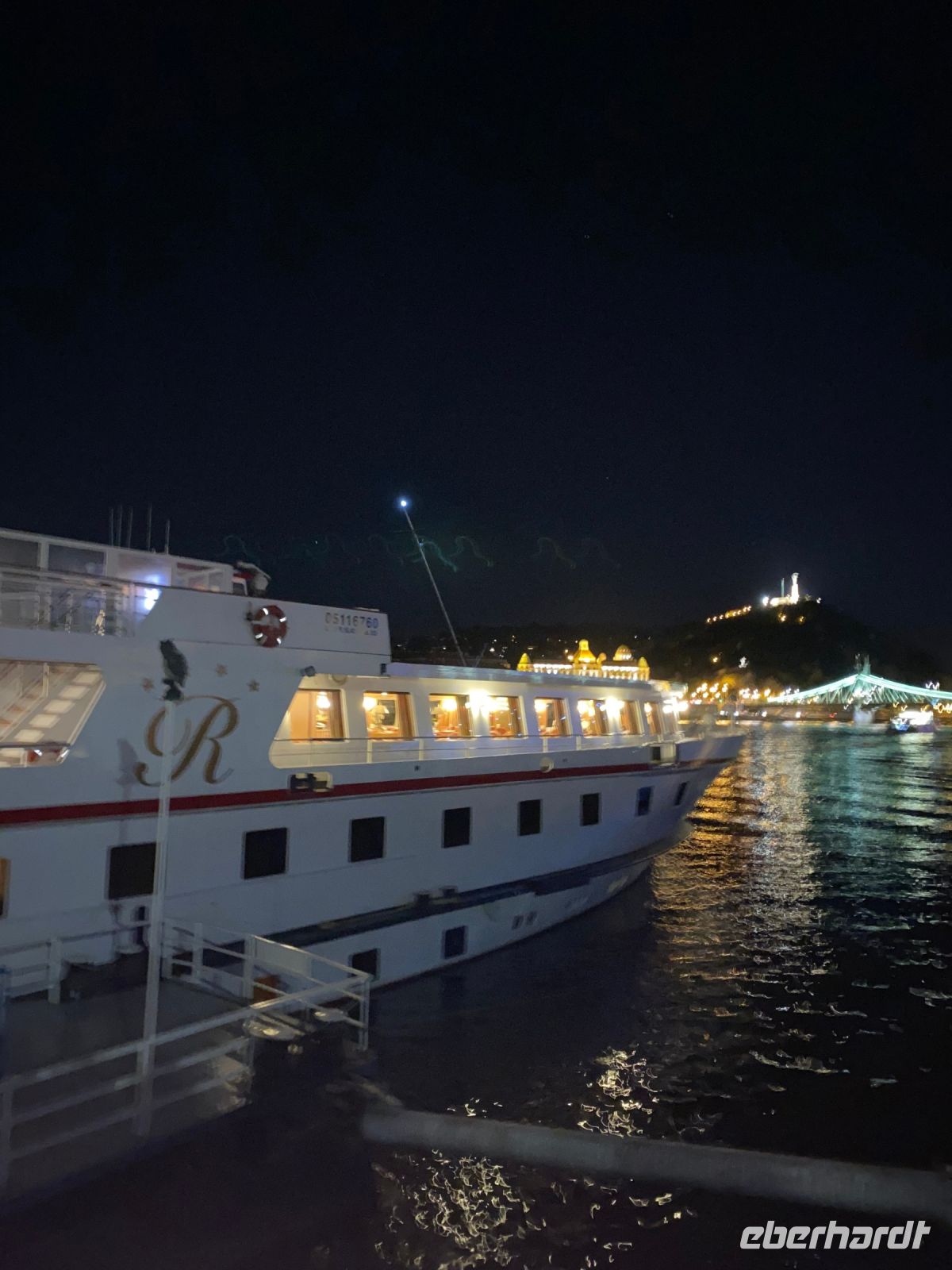 Zum Abendessen sind dann alle wieder an Bord. Die meisten Gäste nehmen anschließend noch an der „Lichterfahrt“ teil, um Budapest bei Nacht zu erleben. Kurz vor Mitternacht heißt es dann aber wieder „Leinen los“. Viele Gäste sitzen noch auf dem Sonnendeck und genießen noch einmal den Blick auf den Budapester Lichterglanz. Über Nacht geht es stromaufwärts Richtung Esztergom.
