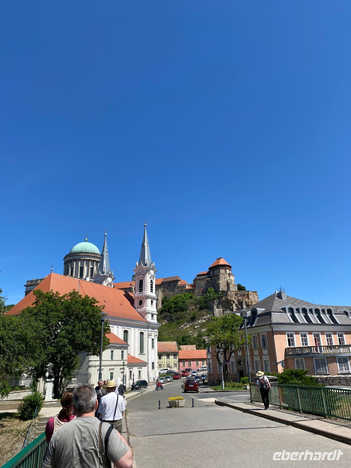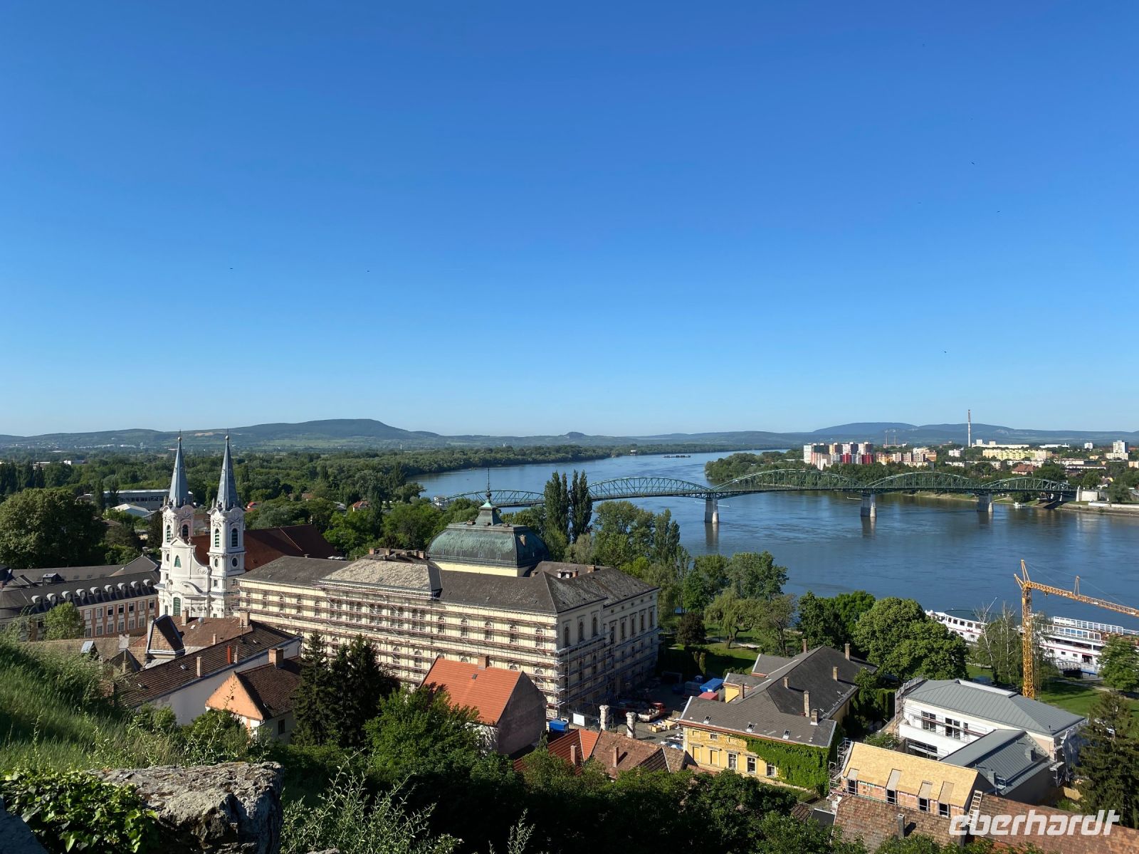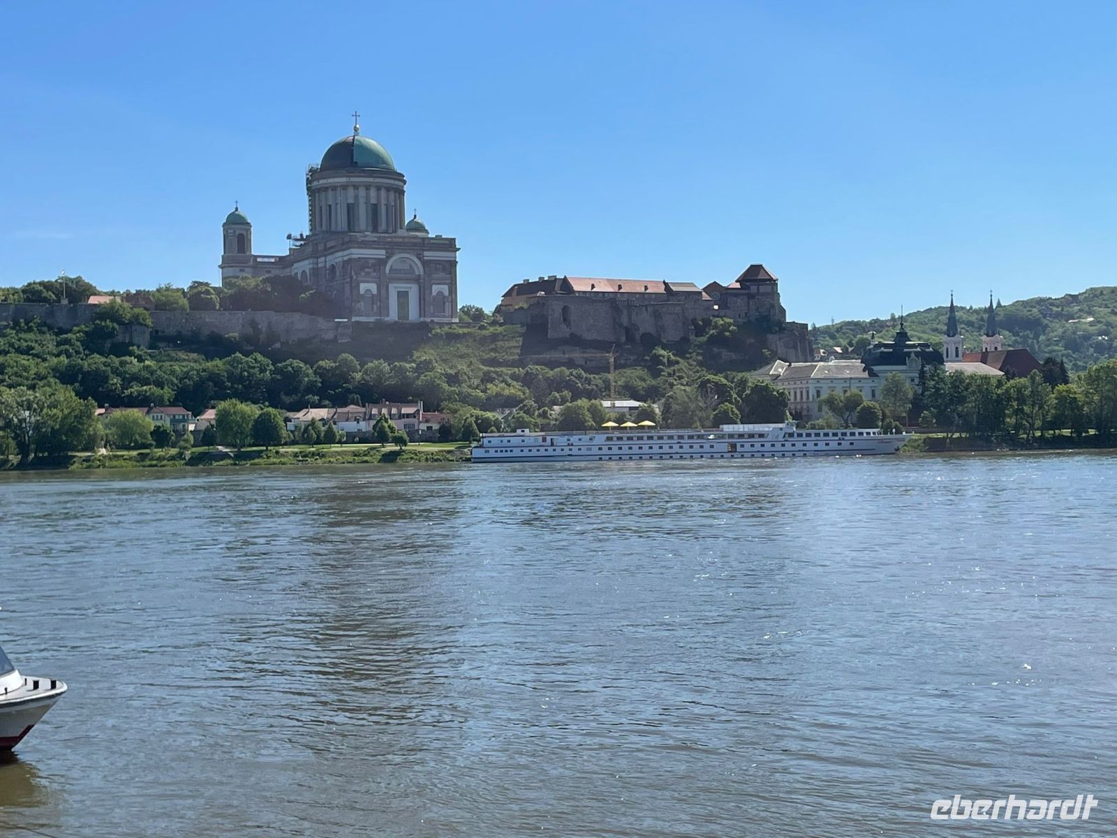 Nachdem unser Schiff in Esztergom angelegt hat und wir beim Frühstück waren wollen wir bei einem Ausflug die Region am Donauknie erkunden. Unser erstes Ziel, die Basilika von Esztergom, können wir schon vom Schiff aus sehen. Der Bus bringt uns hinauf und wir genießen zunächst den Blick von der Aussichtsterrasse über die Donau bis in die Slowakei. Dann besuchen wir die größte Kirche Ungarns. Sie beeindruckt mit ihrer riesigen Kuppel, den Statuen, Fresken und Altarbildern. Noch ein Abstecher in den Souvenirladen, dann geht es weiter entlang der Donau. Bald durchfahren wir Visegrad am Donauknie. So bezeichnet man den Durchbruch der Donau zwischen den Vulkangebirgen von Pilis und Börzsenöy, wo sich die Donau nach Süden wendet. Hoch über dem Ort thront die Burg. Nach knapp einer Stunde erreichen wir das kleine Künstlerstädtchen Szendendre mit seinem mediterranen Flair. Wir bummeln durch die malerischen Gassen entlang der bunten Häuser und zahlreichen kleinen Geschäften. Zum Bus kommt dann fast jeder Gast mit einem Beutelchen zurück. Den Paprikaprodukten, dem leckeren Marzipan, der Wurst und den schicken Handtaschen konnte man einfach nicht widerstehen. Vorbei an der Insel Szendendre, die für ihre Erdbeerprodukte bekannt ist, geht es auf schöner Strecke wieder zum Schiff zurück. Unterwegs sehen wir, dass schon die Hollunderbüsche, die Akazienbäume und die Rosenstöcke blühen. Unsere örtliche Reiseleiterin erzählt uns derweil so manch Interessantes über kulinarische Spezialitäten ihres Landes. Das hat uns Appetit gemacht und so begeben wir uns auf dem Schiff gleich in den Speisesaal.