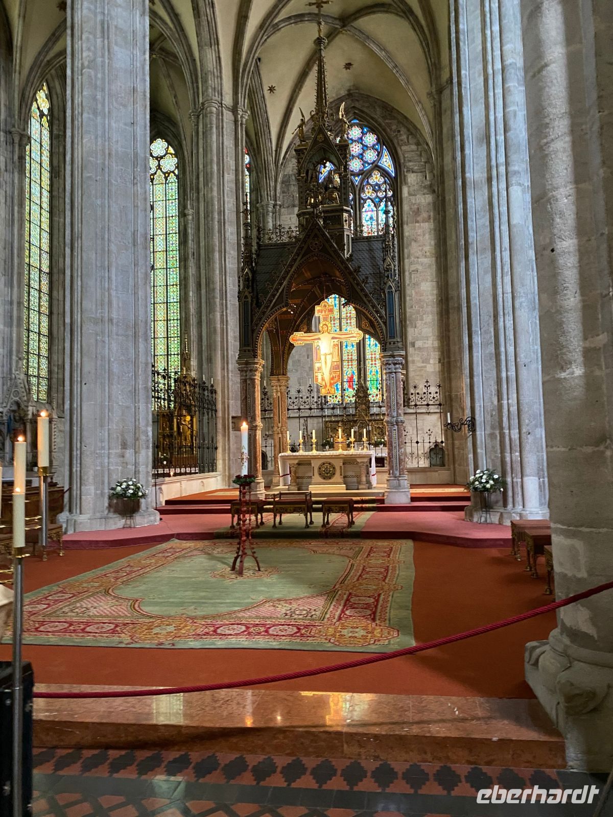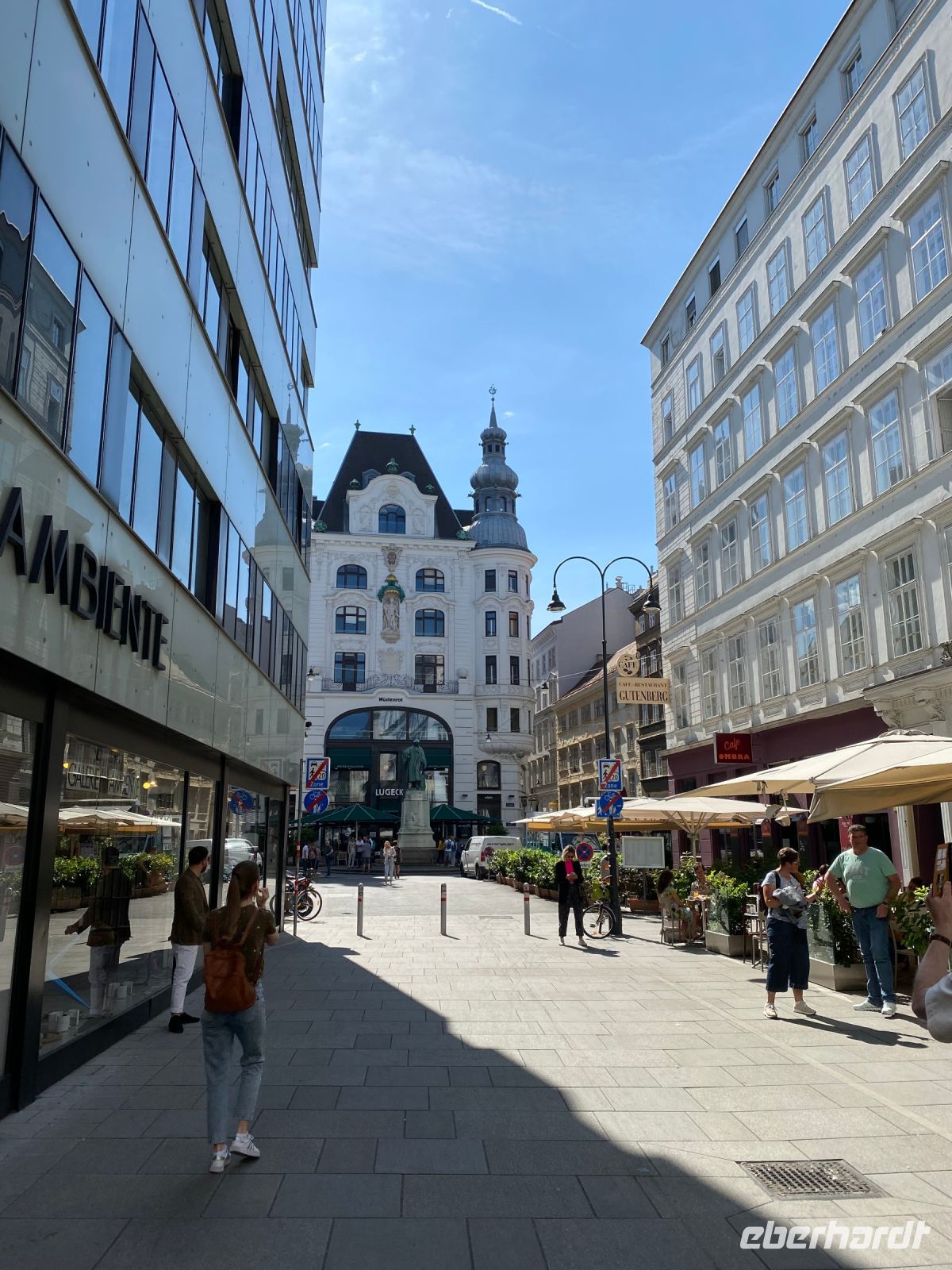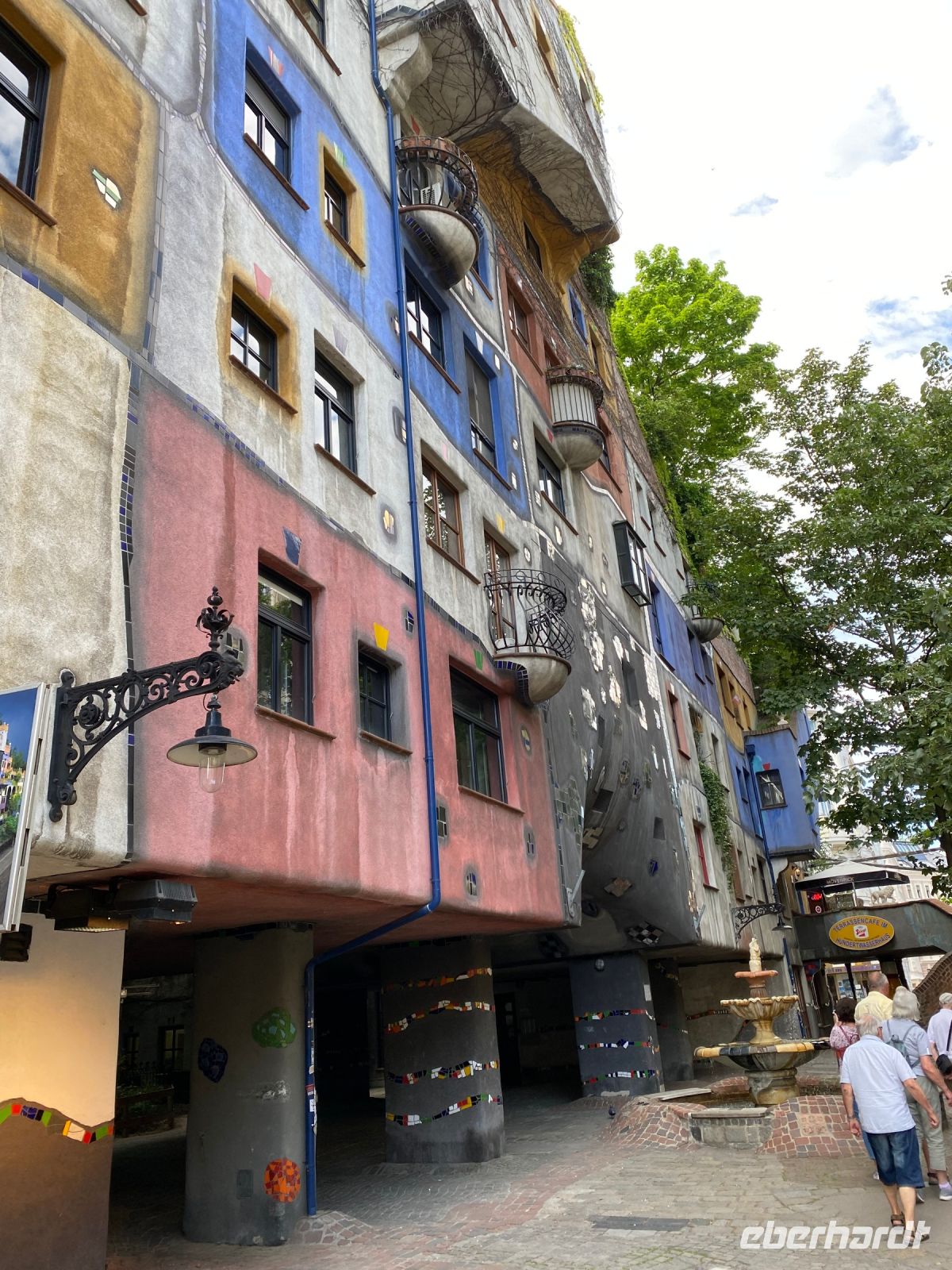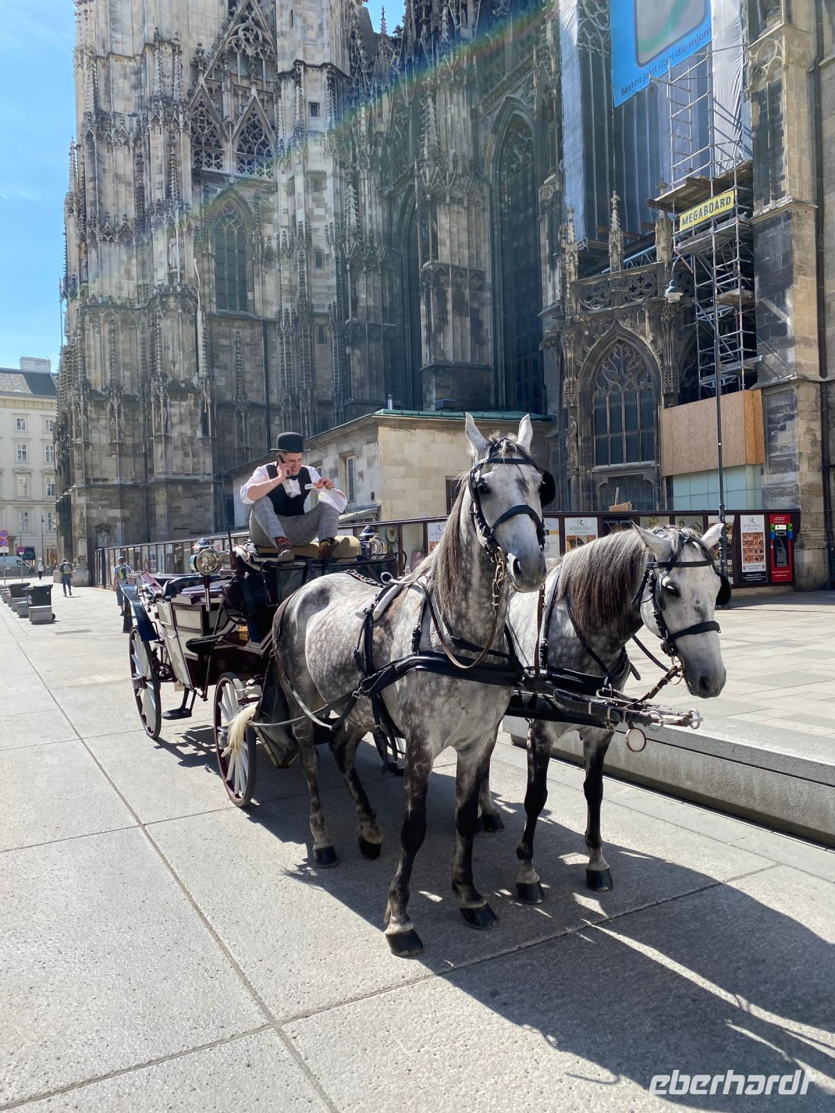 Der heutige Tag steht ganz im Zeichen der österreichischen Hauptstadt. Bereits vor dem Frühstück haben wir am Handelskai gleich neben der Reichsbrücke und ganz in der Nähe der Franz-Josef-Kirche angelegt. Nun sind wir bereit für unsere Entdeckertour. Der Bus fährt uns zunächst über die Donau und die Donauinsel ans andere Ufer. Hier befinden sich u.a. der Donaupark mit dem Donauturm und die UNO-City mit dem City-Tower und den riesigen UNO-Gebäuden, in denen über 3500 Beamte arbeiten. Nach diesem Abstecher geht es wieder zurück in die Innenstadt. Vorbei am Prater, wo wir das historische Riesenrad und das höchste Kettenkarussell der Welt sehen, gelangen wir zum Donaukanal und wenig später zum berühmten Hundertwasserhaus. Nach einem kurzen Fotostopp befahren wir die Ringstraße. Sie wurde nach dem Niederreißen der alten Stadtmauern und Festungswerke 1858 rund um die Innenstadt angelegt, ist 6 Kilometer lang, zählt zu den attraktivsten Prachtstraßen der Welt und wird von zahlreichen monumentalen Bauten und schönen Parkanlagen gesäumt. Unsere Köpfe gehen hin und her, denn es gibt viel zu sehen: die Kunstakademie, das Nobelhotel „Imperial“, die Karlskirche, die Wiener Oper, die Hofburg, das Kunst- und das Naturhistorische Museum, das Parlament, das Rathaus und das Burgtheater. Am Schwedenplatz verlassen wir den Bus und spazieren zum Stephansdom. Einige Gäste gehen mit der örtlichen Reiseleiterin noch weiter zur Hofburg, andere fahren mit dem Fahrstuhl hinauf auf den Nordturm des Doms oder lassen sich in einem der zahlreihen Kaffees ein Stück Sachertorte schmecken. Alle sind wieder pünktlich am Bus und es geht zum Mittagessen aufs Schiff.