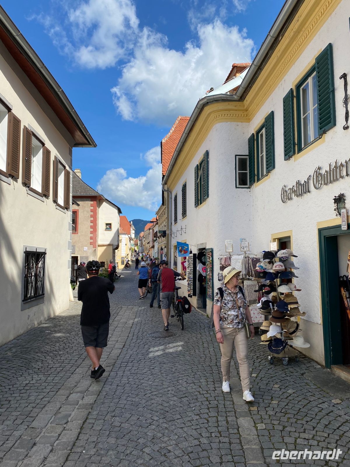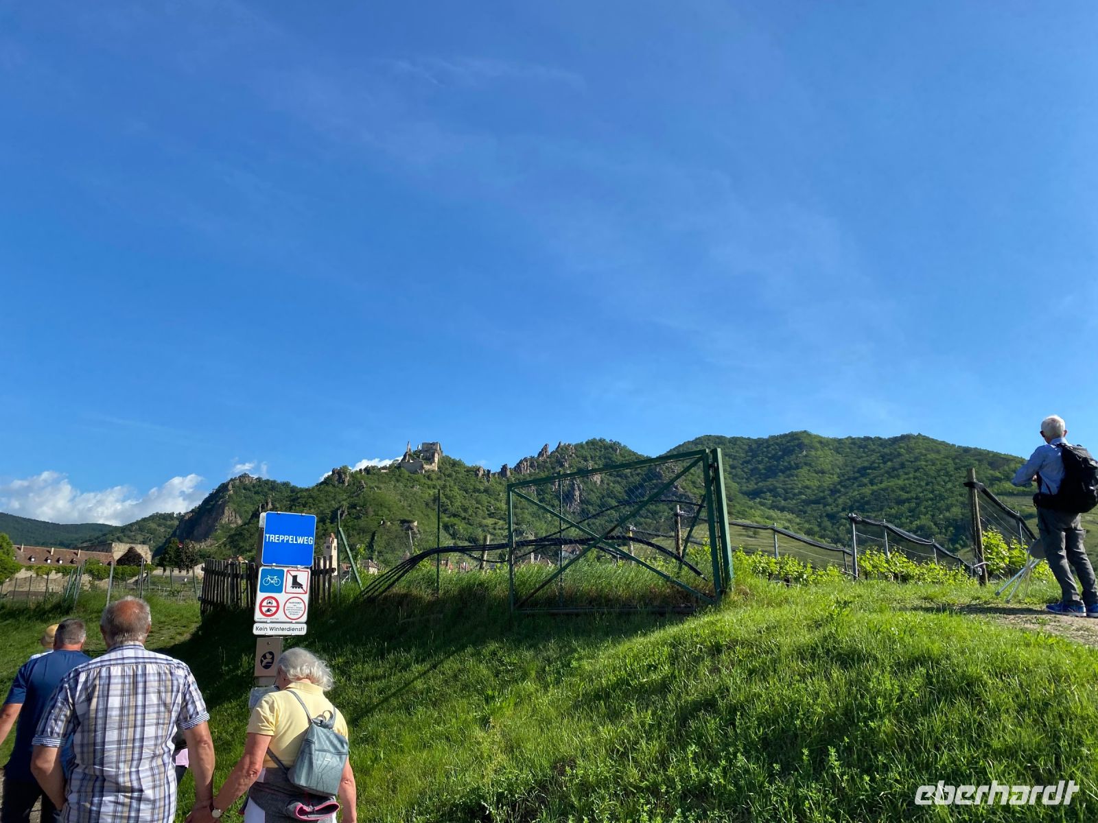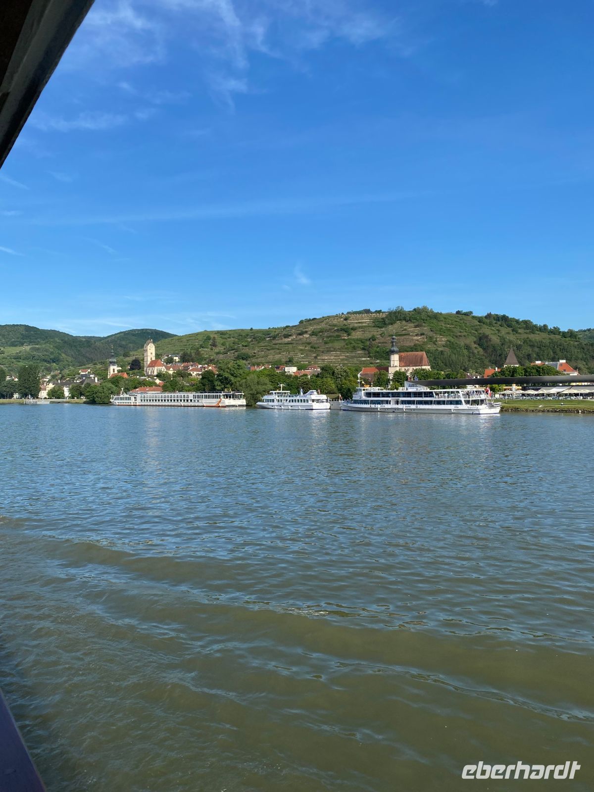 Heute wollen wir die Wachau erkunden. Ob an Land oder vom Schiff aus, kann jeder selbst wählen. Das vergleichsweise milde Klima des Talgrundes bietet hier ideale Bedingungen für den Wein- und Obstbau. Bekannt geworden ist die Region auch durch das „Mariandl“-Lied und den gleichnamigen Film. Während des Frühstücks passieren wir Krems, eine Stadt mit über 1000jähriger Geschichte, und mit etwas Verspätung erreichen wir den kleinen Ort Dürnstein mit seinem blauen Kirchturm. Einige Gäste begeben sich zu Fuß auf die Spuren von Richard Löwenherz und Sänger Blondel. Andere Gäste fahren mit dem Wachau-Express durch die Weinberge. Durch das nördliche Stadttorgelangt man in die verträumten Gassen des Ortes und vom Renaissance-Schloss – heute ein 5-Sterne-Hotel – hat man einen schönen Blick hinunter zur Donau und hinauf zum Hungerturm.