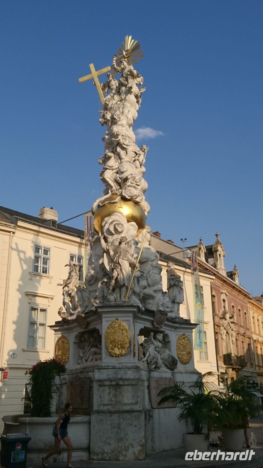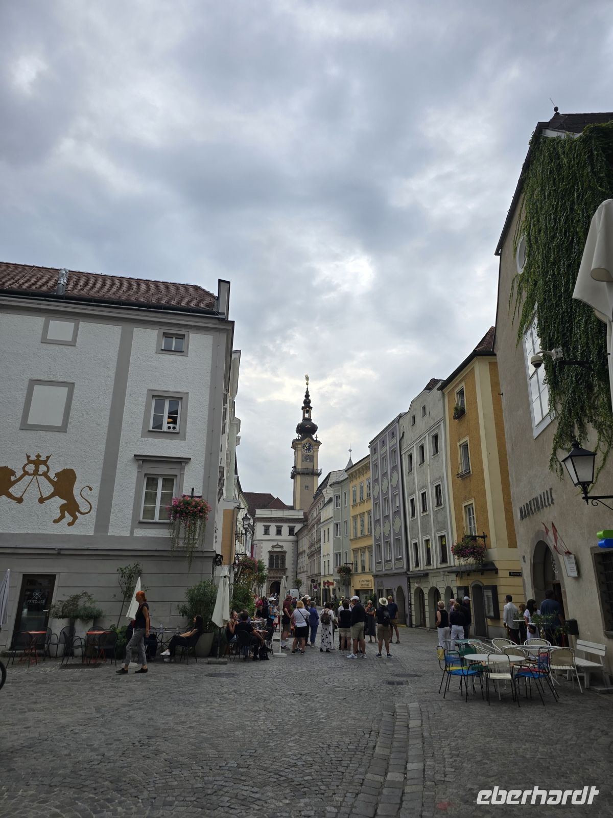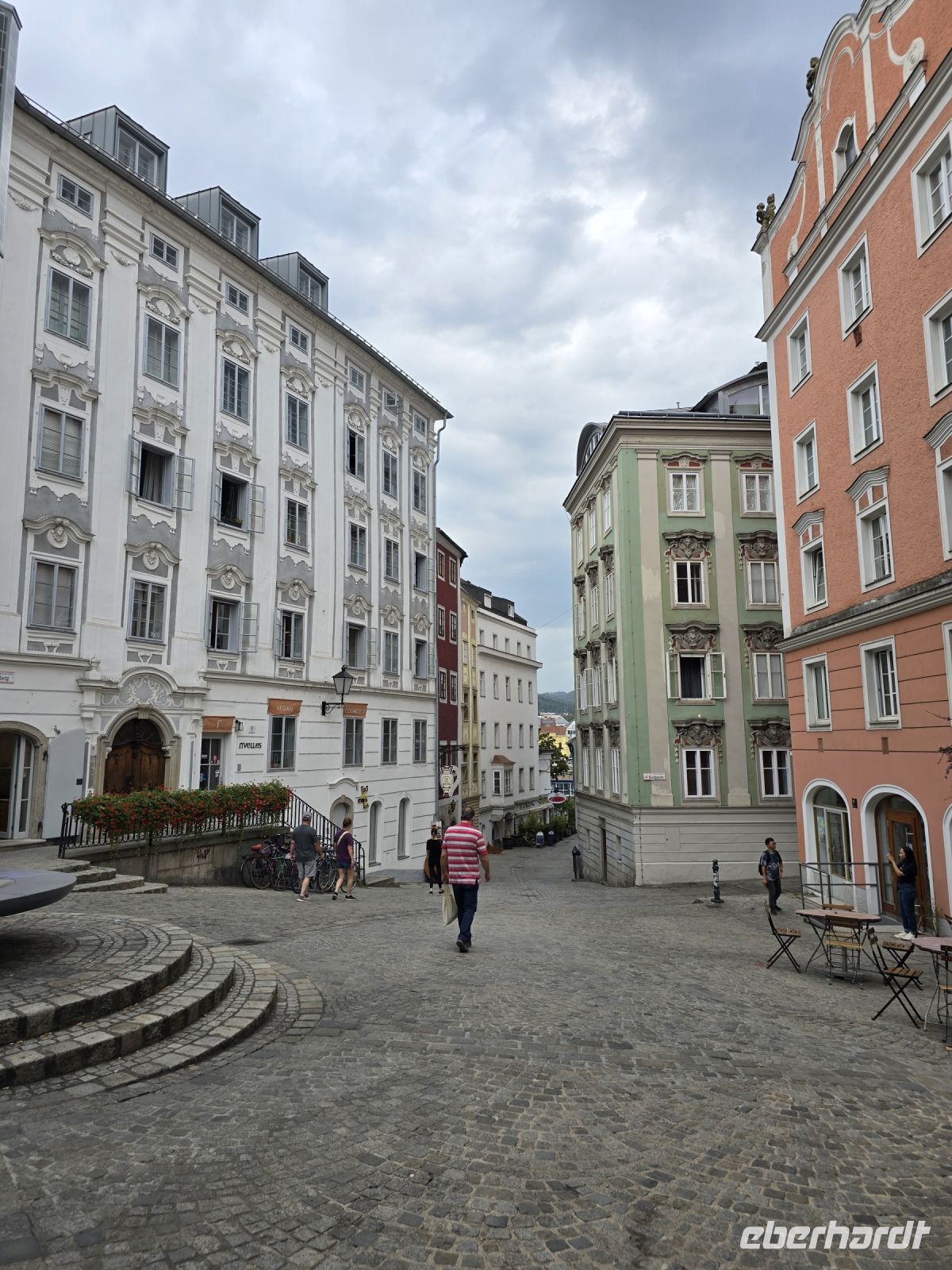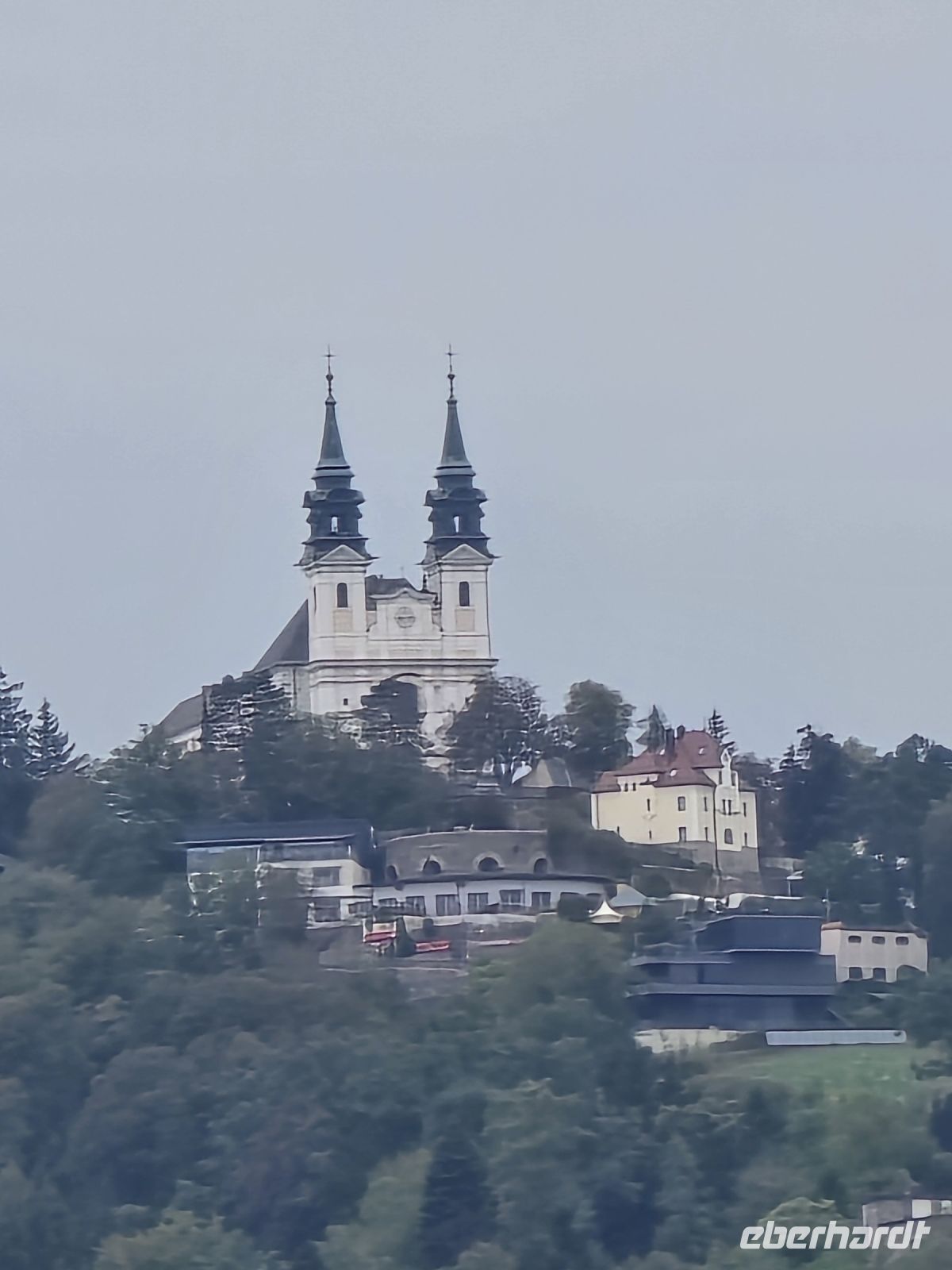 Heute morgen versteckte sich die Sonne etwas hinter den Wolken. Sollte uns das Kaiserwetter verlassen haben? Nein, es dauerte nicht lange und wieder war strahlend blauer Himmel. Die Temperaturen erreichten heute knapp 30 °C. Nach der Hitze der letzten Tage willkommen. Wir ankerten am Brucknerhaus. Pünktlich waren unsere Stadtführerinnen vor Ort und wir starteten zu unserem Spaziergang in dieser Kulturmetropole an der Donau. Früher war es eher eine Industriestadt, heute mit dem Lentos Kunstmuseum, der Brucknerhalle, dem Musiktheater, dem Ars Elektronica Center und dem OÖ Kulturquartier eine der Kunst- und Kulturstädte Österreichs. Gemütlich schlenderten wir in das Zentrum der Stadt zum Hauptplatz mit der Dreifaltigkeitssäule und den barocken Bürgerhäusern mit den bunten Pastellfarben. Weiter ging es vorbei am Mozarthaus zum Mariendom, der größten Kirche Österreichs, in dem bis 20.000 Menschen Platz finden. Nur von der Höhe ist der Stephansdom in Wien größer. Wer nicht so gut zu Fuß war, fuhr mit dem City-Express gemütlich durch die Straßen und Gassen der Stadt und erhielt so ebenfalls einen lebendigen Eindruck von Linz. Von der anderen Donauseite grüßte uns erhaben der Pöstlingberg mit der Wallfahrtsbasilika. Mit einer der steilsten Bahnen der Welt kann man vom Hauptplatz in 20 Minuten den Hausberg der Linzer erreichen. Der Nachmittag stand für eigene Besichtigungen zur freien Verfügung. Eine Gästegruppe fuhr in das romantische Steyr am Zusammenfluss von Enns und Steyr. Am Stadtplatz sahen wir altehrwürdige Bürgerhäuser, darunter das spätgotische Bummerlhaus. Direkt am Zusammenfluss von Enns und Steyr betraten wir die Barockkirche St. Michael. Anton Bruckner weilte oft in Steyr und so ist ihm eines der Denkmäler der Stadt gewidmet.