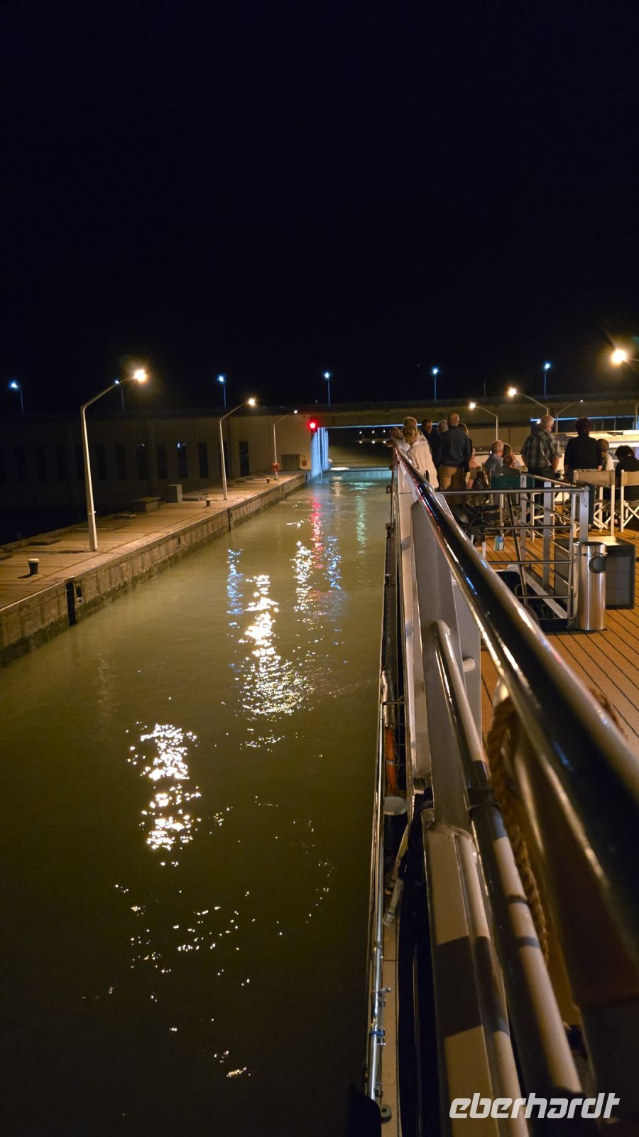 Am Abend bestaunten wir die Schleusung an einer der größten Schleusen Europas in Gabcíkovo. Hier wurde unser Schiff innerhalb von 20 Minuten 28 Meter sanft in die Höhe gehoben, welch eine technische Meisterleistung! Danach lauschten wir einem weiteren Konzert unserer Gastkünstlerin. Frau Katrin Wettin erfreute uns mit bekannten Film- und Musicalmelodien. Auch dieser Tag klang stimmungsvoll aus.