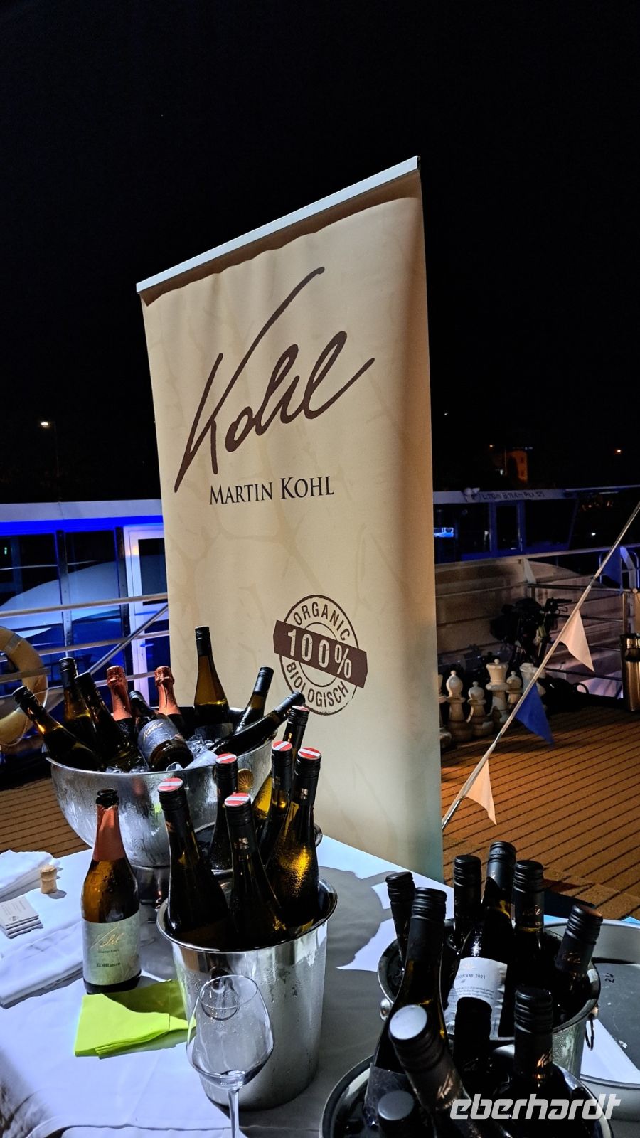 Da unser Schiff Wien erst am späten Abend verlässt, blieb Zeit für einen besonderen Abend auf dem Oberdeck: Die überwiegende Mehrzahl unserer Gäste traf sich zu einer unterhaltsamen Weinprobe mit Winzer Martin Kohl aus Hohenruppersdorf, einem Ort im Weinviertel. Wir verkosteten verschiedene Sorten köstlicher Weiß- und Rotweine und eine besondere Spezialität, das gesunde Weinviertler Walnussöl.