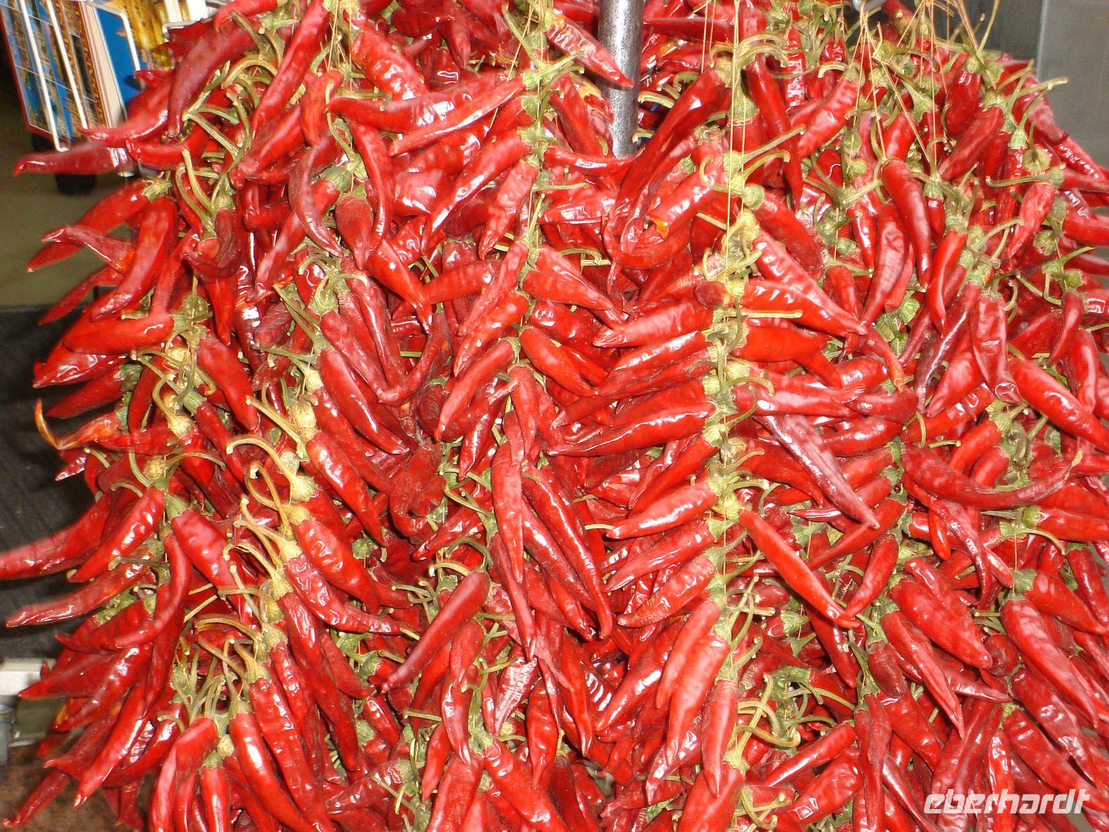 Heute ist die Paprika-Hauptstadt Ungarns, Kalosca, an der Reihe. Überall sehen wir zum Trocknen aufgehängte Paprikaschoten in Säcken und auch auch auf Schnüren. Berühmt ist Kalosca auch wegen der malenden Frauen, der Stickereien und Wandmalereien. Bei einem Rundgang besuchten wir den Dom und hörten dort ein schönes Orgelkonzert. Dann gab es noch einen Ausflug in die Puszta mit einem Csardasbesuch, wo wir mit Schmalzbrot und Wein begrüßt wurden. Auch den berühmten Aprikosen-Schnaps konnten wir verkosten. Es gab Reitervorführungen und eine Kutschfahrt. Wir konnten die Ställe besichtigen, Souvenirs kaufen oder einfach die Seele baumeln lassen. Zurück im Bus, setzte unsere Reiseleiterin ihre Ausführungen zu Land und Leuten fort. Wir lauschten ganz gespannt.
